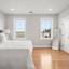 Penthouse featuring 3 beds, 2 baths, soaring 11 ft ceilings, and overflowing with natural light. The kitchen comprises quartz counters, Fisher and Paykel stainless steel appliances, ample cabinet space, an extended peninsula with seating for three comfortably, and a dry bar with a beverage fridge. The primary bedroom allows for a large king bed with a walk-in closet and en-suite bathroom featuring a stand-up rain shower. The second bedroom is large enough to fit a king bed with extra space for an office and excellent closet space. The third bedroom can fit a queen bed but is perfect for a nursery, a dedicated office with a Murphy bed, or a couch. This home is complete with central AC, Samsung washer/dryer in-unit, 2 parking spaces, a large private storage area, and access to a common workout room in basement and common patio. Close proximity to American Provisions, Tavolo, and less than .2 miles from the T.