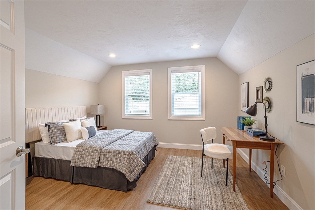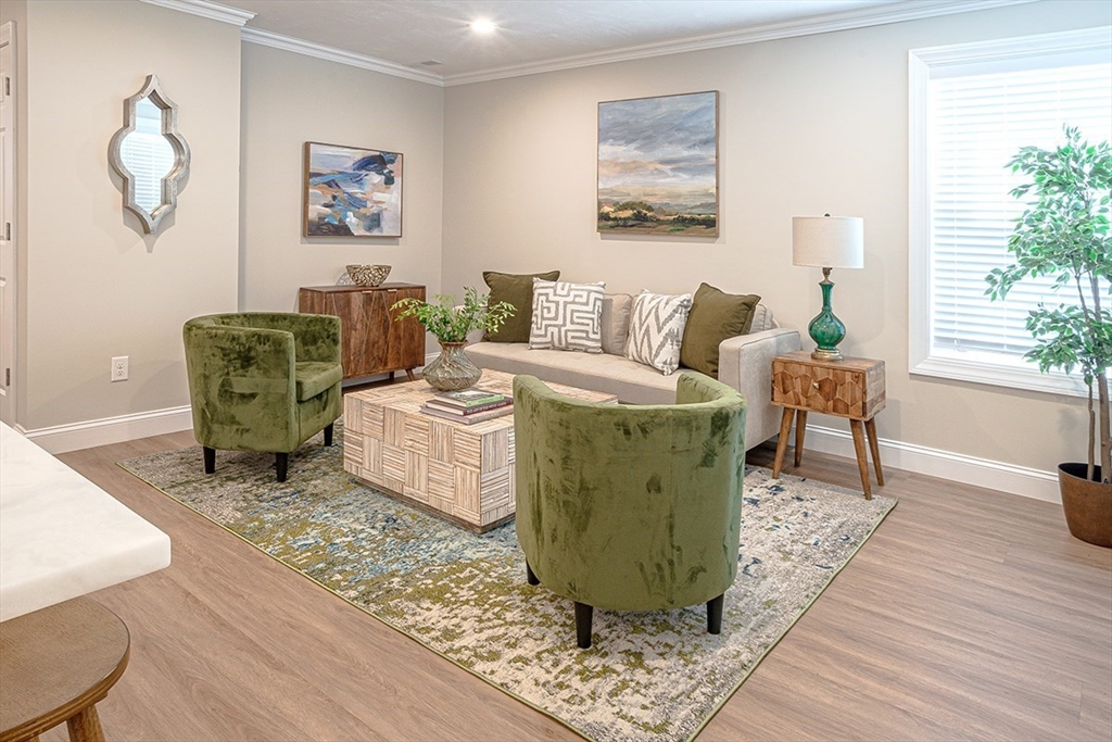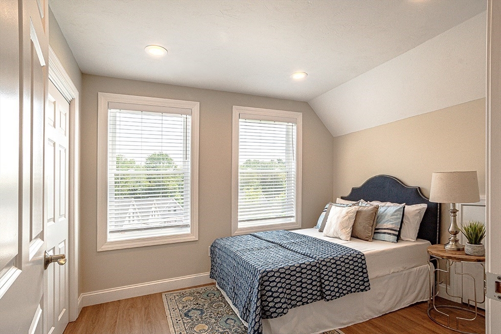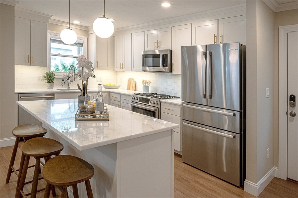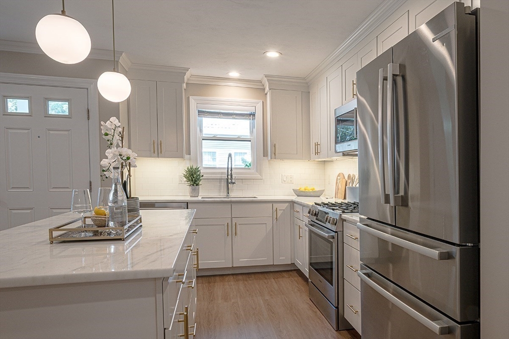Discover one of the finest units in Pine Hill Crossing, Bedford – a meticulously maintained 3 bedroom, 2.5 bathroom DETACHED TOWNHOUSE condo offering the perfect single-family alternative. This exceptionally well-designed home features beautiful engineered hardwood flooring throughout and elegant recessed lighting. The first floor showcases a stunning open floor plan where the well-appointed kitchen, dining area, and living room flow seamlessly together, creating an ideal space for entertaining. The kitchen features premium Bosch stainless steel appliances and striking quartzite countertop. The first-floor master suite includes a spacious walk-in closet, while the second floor offers two additional bedrooms and a full bathroom. Located in quiet neighborhood with playground within complex-- ideal for families seeking both comfort and community.
