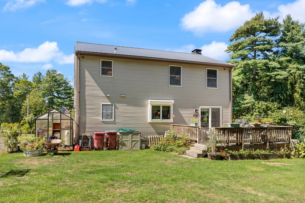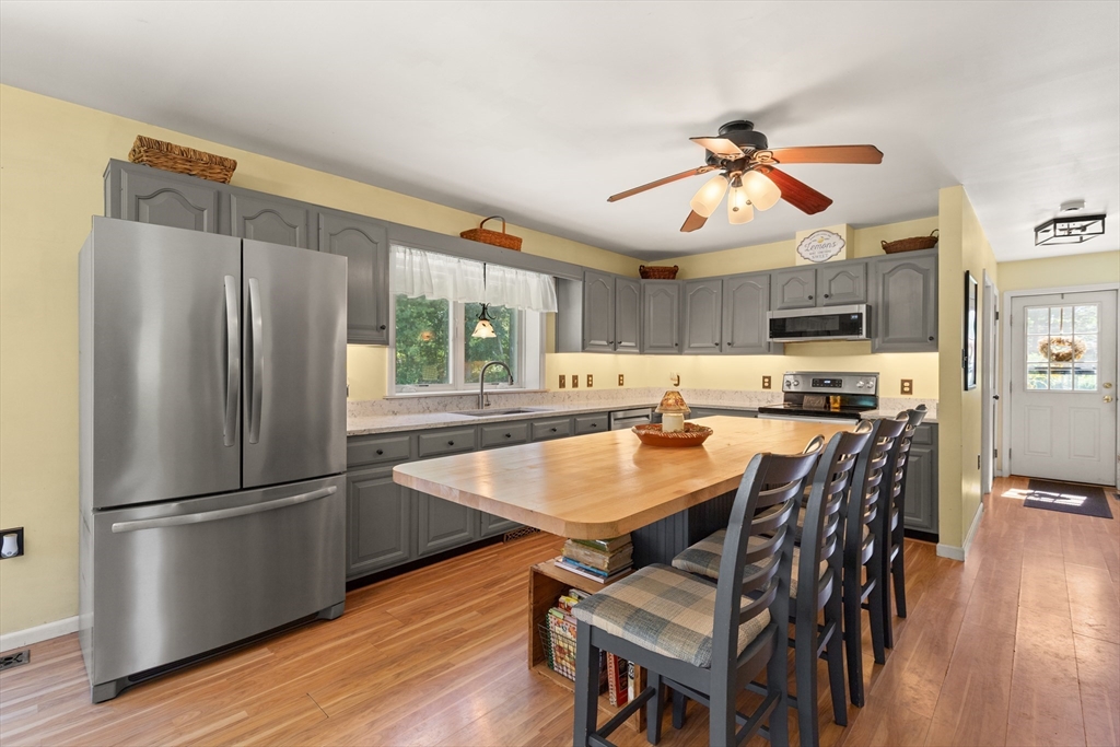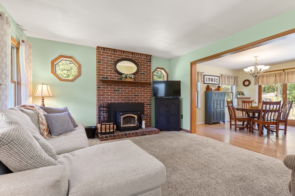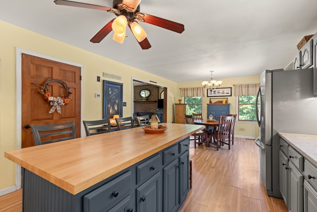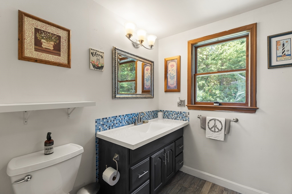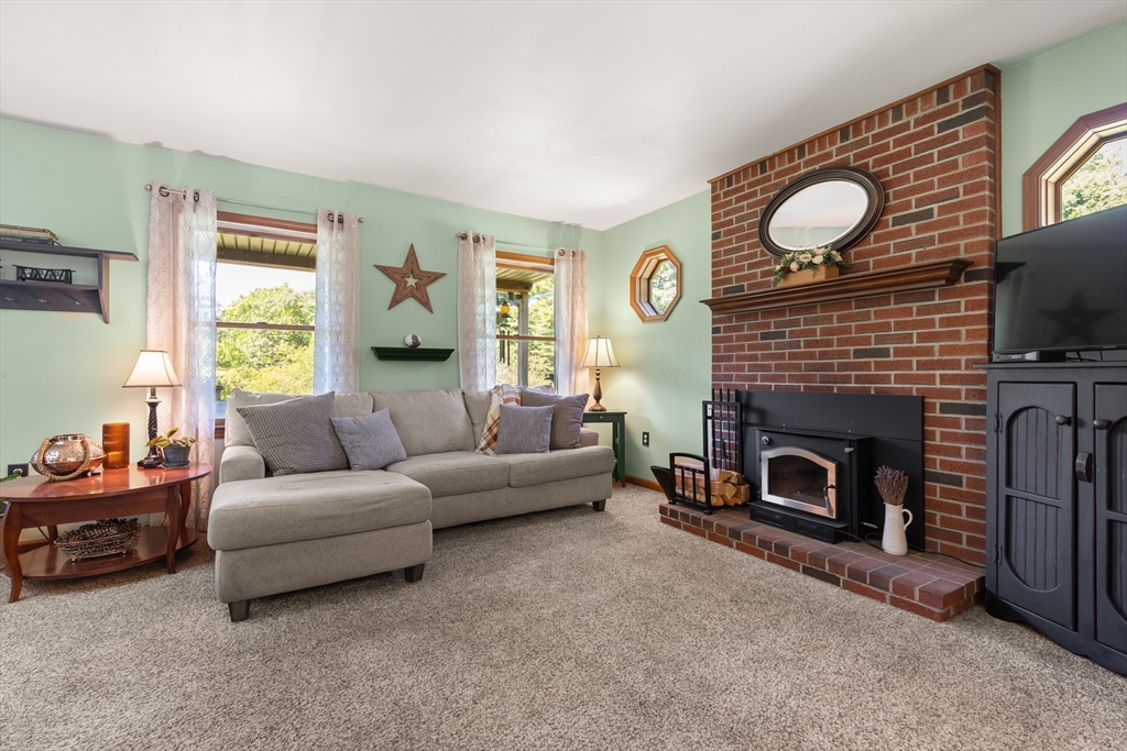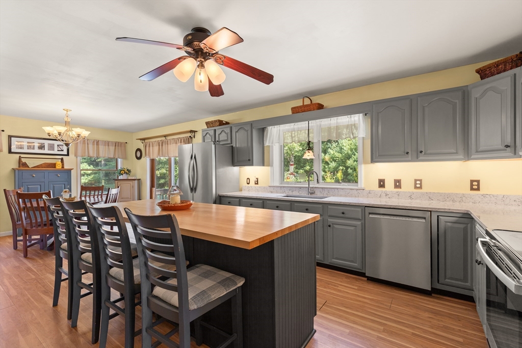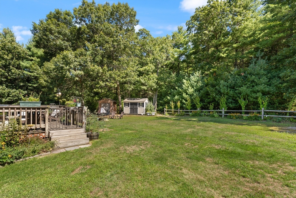 Charming and peaceful Cape-style retreat set on 6.15 acres of serene, nature-filled land in close proximity to Routes 3 & 44. This beautifully updated 4-bedroom, 2-bathroom home offers cozy comfort with modern touches throughout. Step onto the inviting farmer’s porch and into a warm, light-filled interior featuring skylights, a wood stove, and a thoughtful layout perfect for everyday living. The spacious kitchen is a dream with quartz countertops, a large center island, and stainless steel appliances. The primary suite offers a full master bathroom and walk-in closet. Outside, enjoy a fully fenced yard, dedicated garden space, and the tranquil beauty of the surrounding woods. A two-bay detached garage with a full second floor provides excellent storage or potential for expansion. Additional highlights include a durable metal roof, a propane-powered generator for peace of mind, and numerous recent updates.