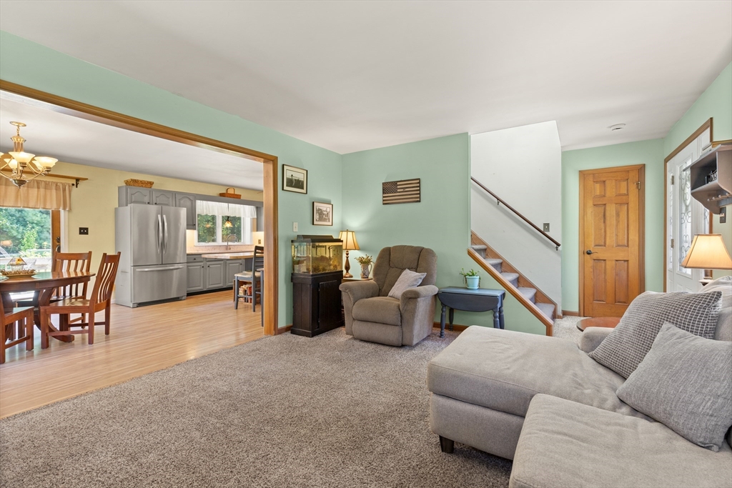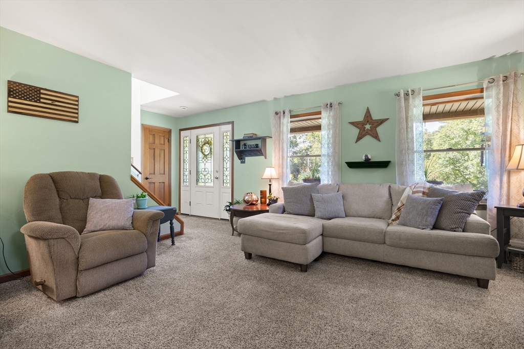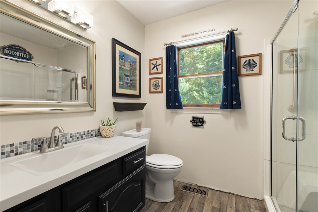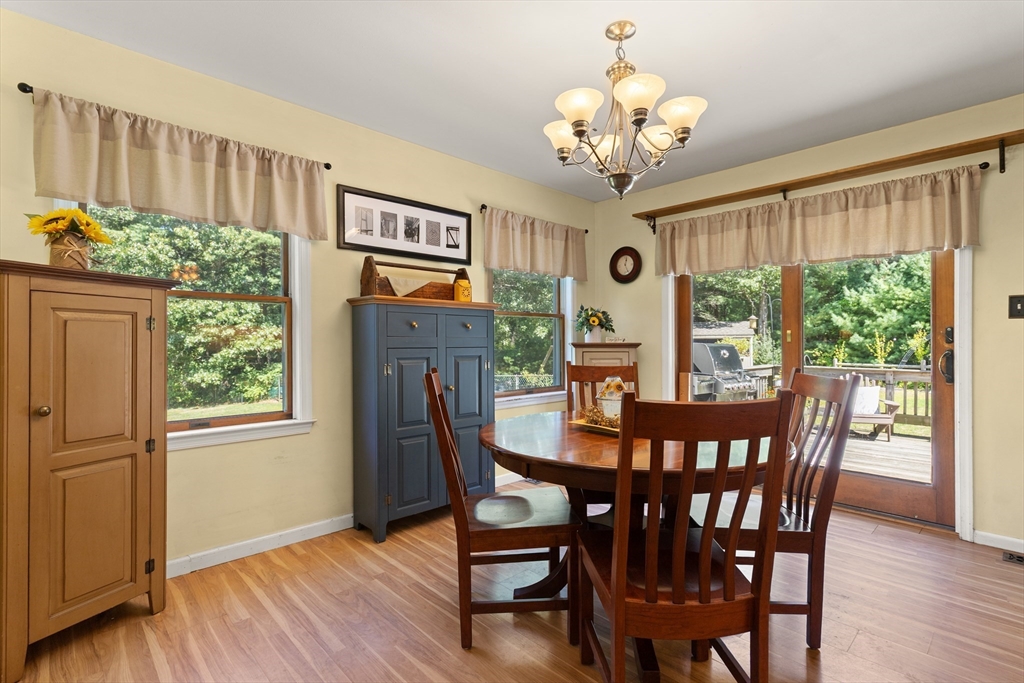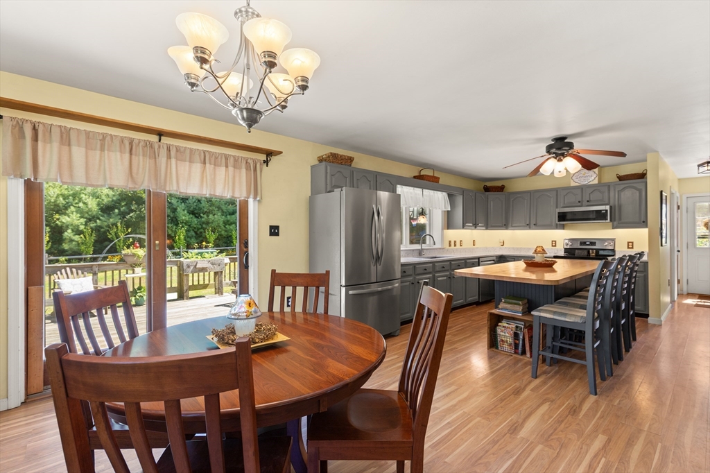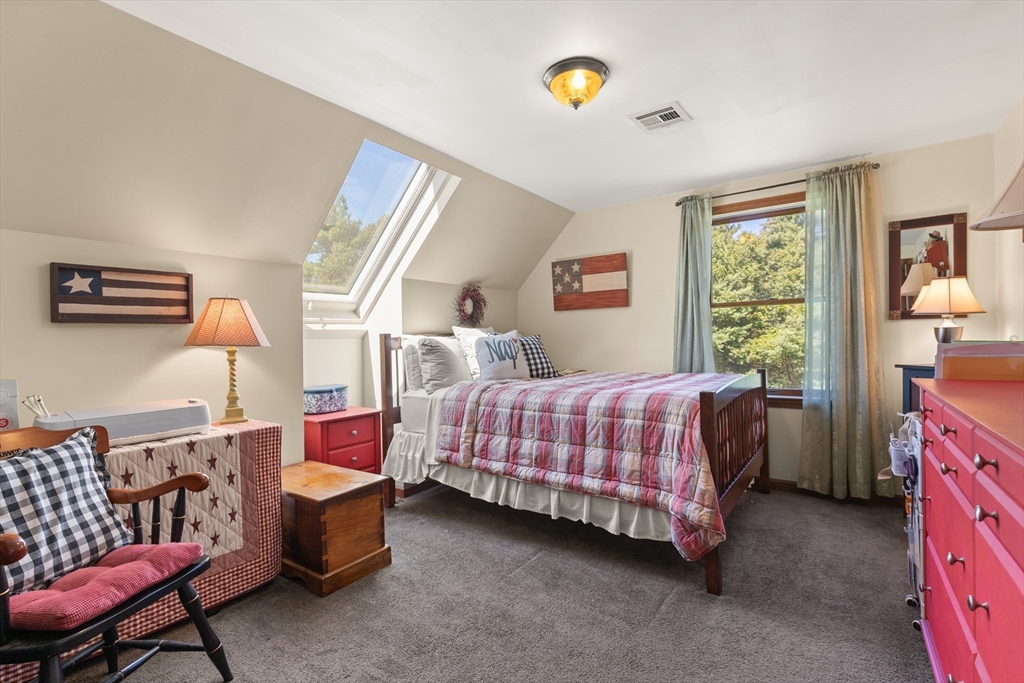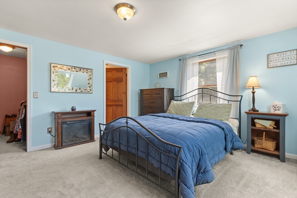 Charming and peaceful Cape-style retreat set on 6.15 acres of serene, nature-filled land in close proximity to Routes 3 & 44. This beautifully updated 4-bedroom, 2-bathroom home offers cozy comfort with modern touches throughout. Step onto the inviting farmer’s porch and into a warm, light-filled interior featuring skylights, a wood stove, and a thoughtful layout perfect for everyday living. The spacious kitchen is a dream with quartz countertops, a large center island, and stainless steel appliances. The primary suite offers a full master bathroom and walk-in closet. Outside, enjoy a fully fenced yard, dedicated garden space, and the tranquil beauty of the surrounding woods. A two-bay detached garage with a full second floor provides excellent storage or potential for expansion. Additional highlights include a durable metal roof, a propane-powered generator for peace of mind, and numerous recent updates.