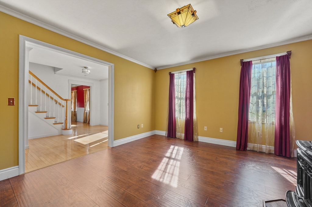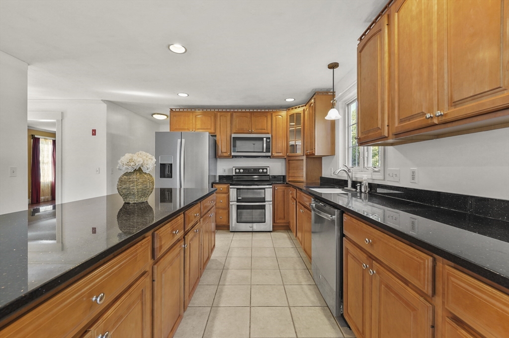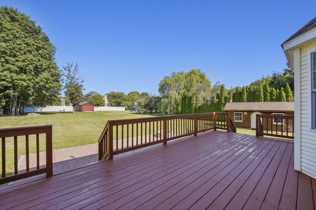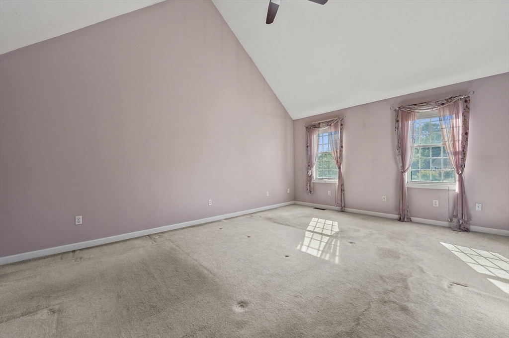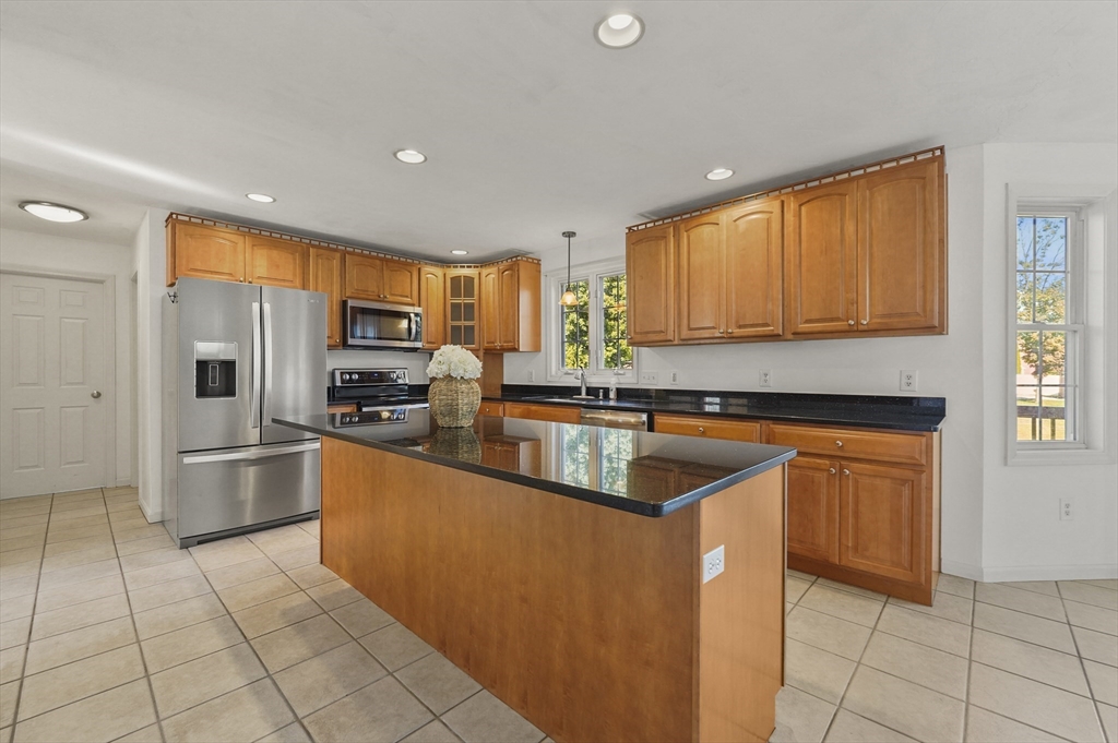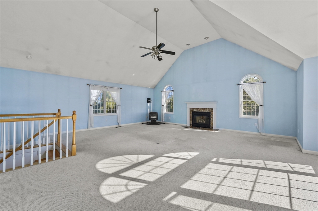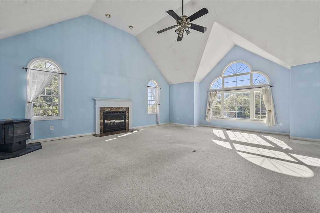 Stunning oversized Colonial in desirable Orchard Estates! This house sits proud on a beautiful corner lot, and includes an oversized driveway, two car garage, and two large sheds. The first floor showcases a living room with a pellet stove, dining room with hardwood floors, an eat in kitchen with a large center island, stone counters, and stainless appliances. Hallway off the kitchen leads to a half bath and a separate laundry room. Sliders off the kitchen to a 10x20 deck and a custom brick patio with built in fire pit, all looking over the fantastic and expansive level back lawn. Just a few steps up from the kitchen is the cathedral ceiling great room with both a wood fireplace and a pellet stove. The second floor has a primary suite with cathedral ceilings, a stunning cedar walk in closet, and a full bath. Three guest bedrooms and an additional full bath complete this level. The basement has a large finished bonus room with a 3/4 bath. You have been waiting for this home!