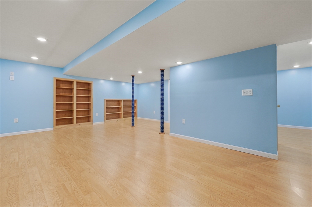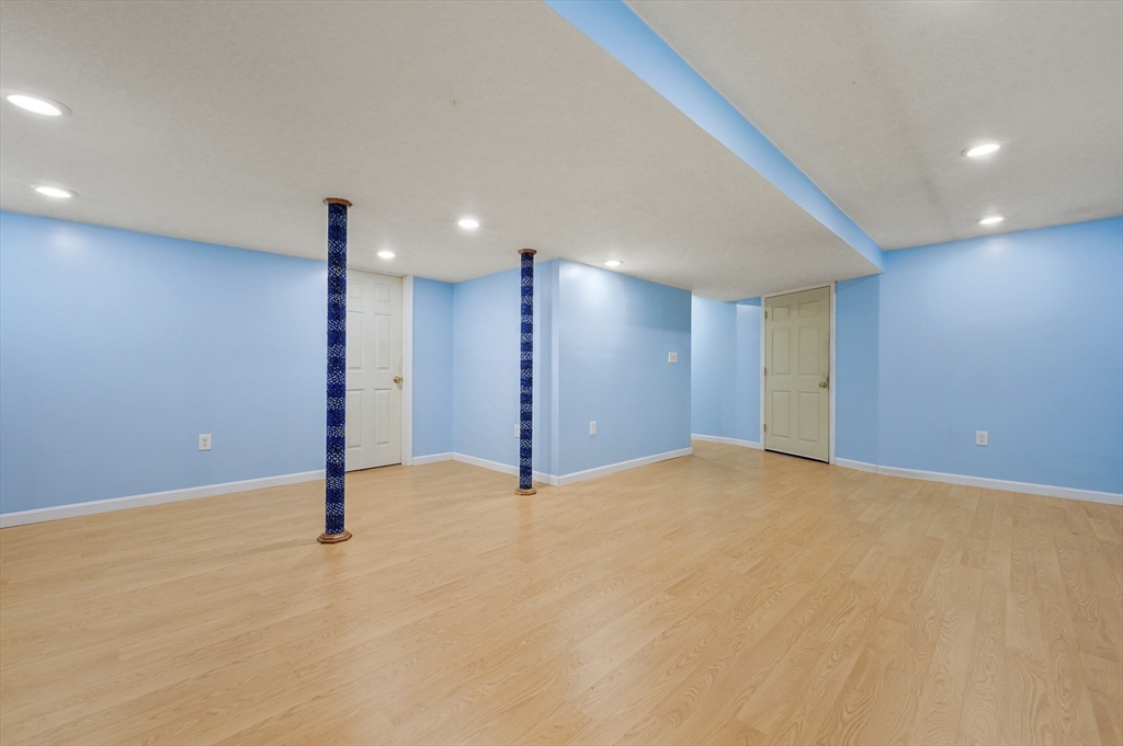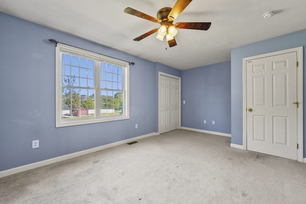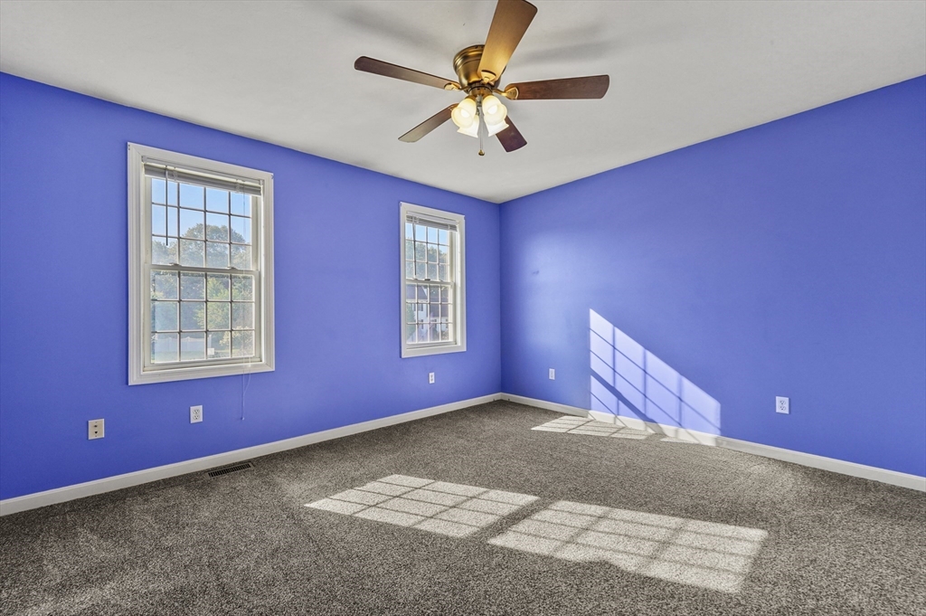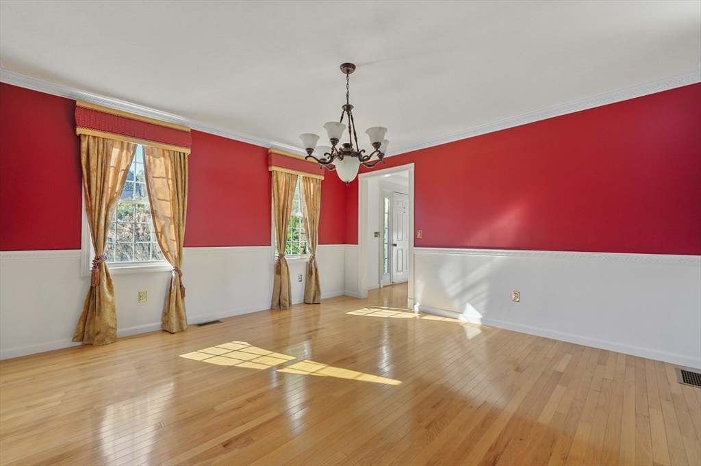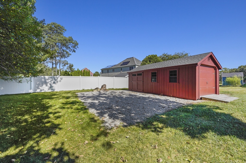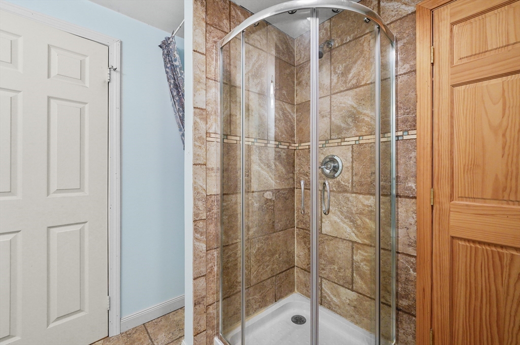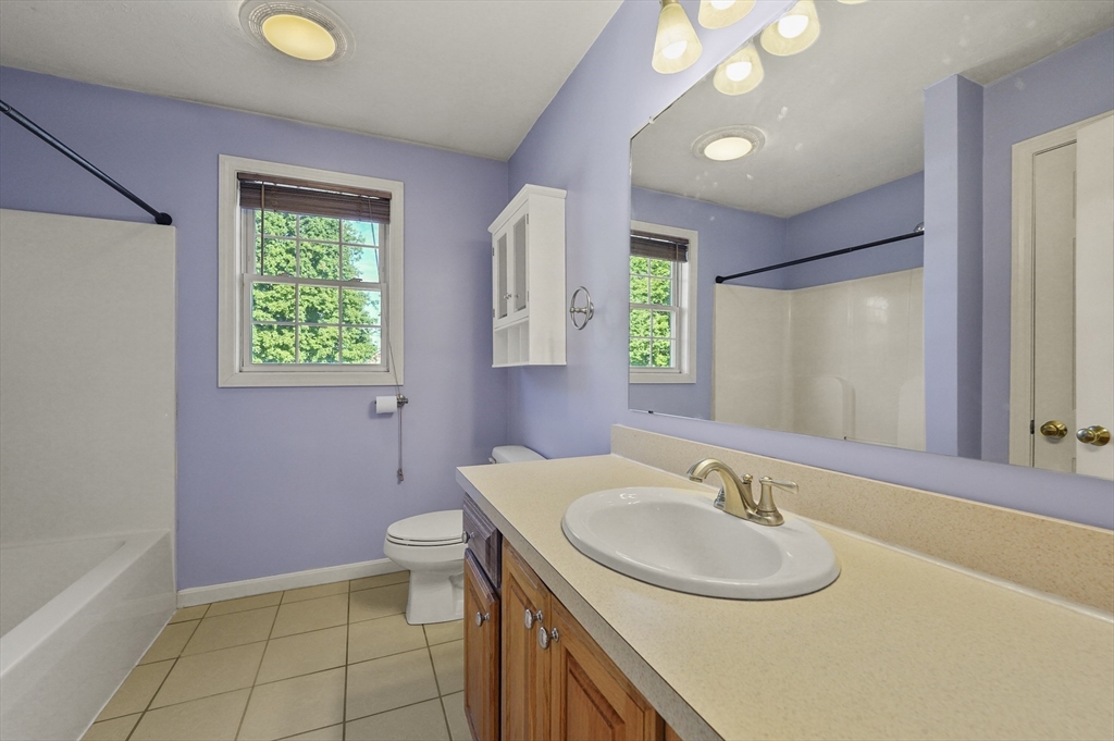 Stunning oversized Colonial in desirable Orchard Estates! This house sits proud on a beautiful corner lot, and includes an oversized driveway, two car garage, and two large sheds. The first floor showcases a living room with a pellet stove, dining room with hardwood floors, an eat in kitchen with a large center island, stone counters, and stainless appliances. Hallway off the kitchen leads to a half bath and a separate laundry room. Sliders off the kitchen to a 10x20 deck and a custom brick patio with built in fire pit, all looking over the fantastic and expansive level back lawn. Just a few steps up from the kitchen is the cathedral ceiling great room with both a wood fireplace and a pellet stove. The second floor has a primary suite with cathedral ceilings, a stunning cedar walk in closet, and a full bath. Three guest bedrooms and an additional full bath complete this level. The basement has a large finished bonus room with a 3/4 bath. You have been waiting for this home!