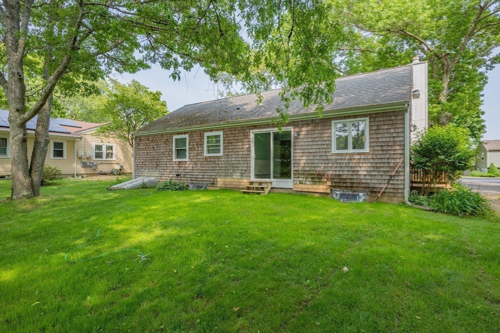 NEW PRICE AND UPDATES! Set in a quiet established neighborhood, this 3 bedroom 1 bath home offers the easy flow of one floor living. The large living room opens to the spacious and bright eat-in kitchen, and the sliding glass door accommodates easy access to the large level backyard for outside fun…..family gatherings, outside games, gardening or just relaxing. Privacy is assured by many mature trees and shrubs. The newly carpeted and freshly painted bedrooms are all ample in size, and the updated bath has been freshly painted. The full basement is partially finished which lends itself to overflow living…office, movie room, kids’ playroom? The unfinished portion of the basement contains the laundry area with ample space and built-in storage. Also, there is a four-bedroom septic design for possible expansion. Enjoy the best of Cape Cod living just minutes away, with Falmouth’s beautiful beaches, vibrant village, and endless opportunities for boating, biking, and exploring nearby tra