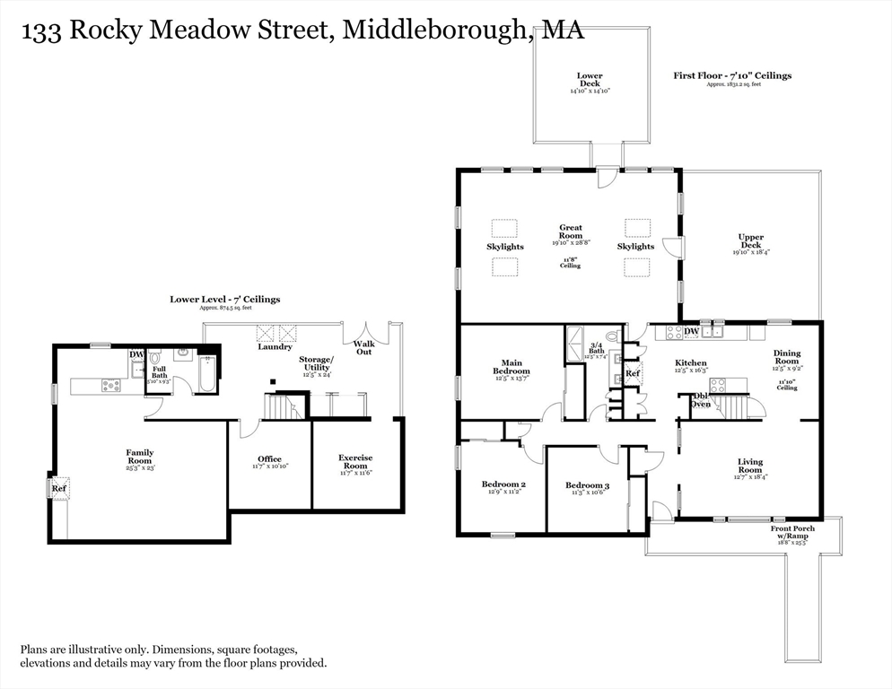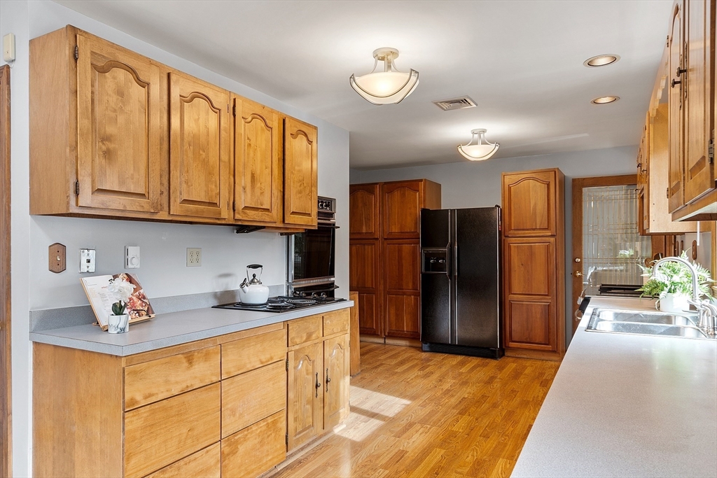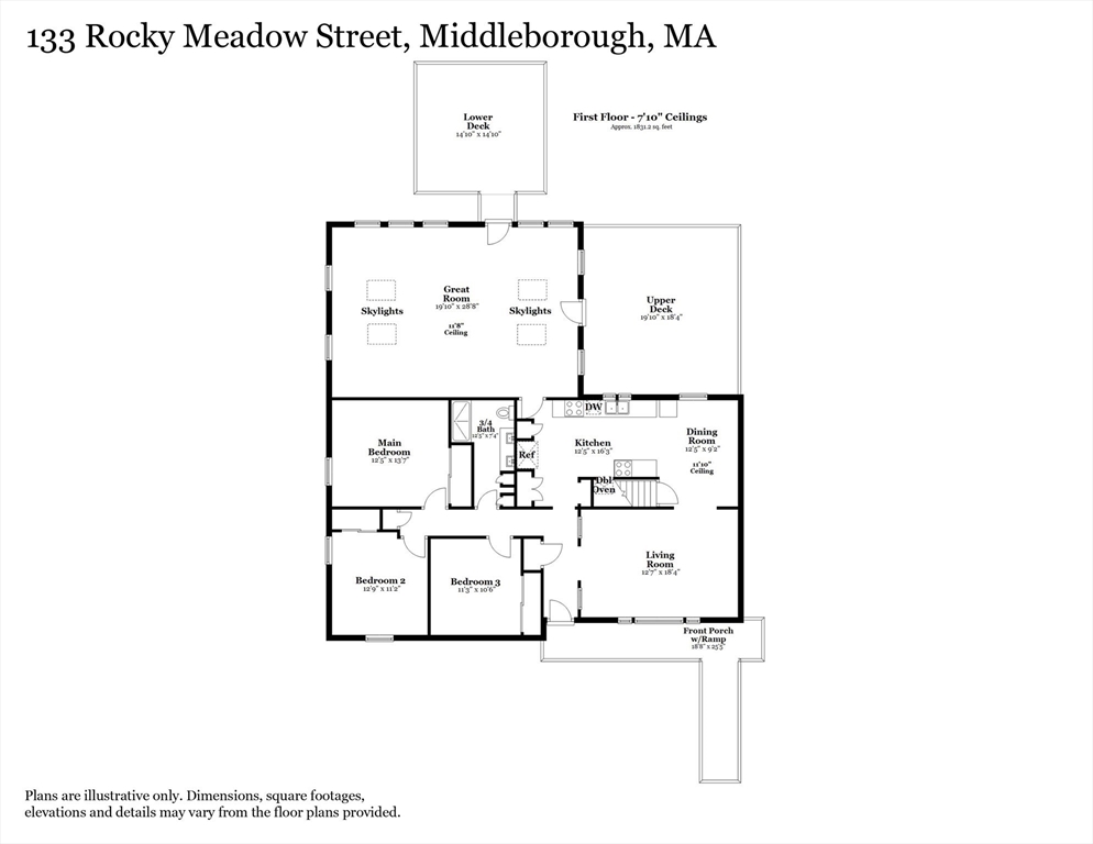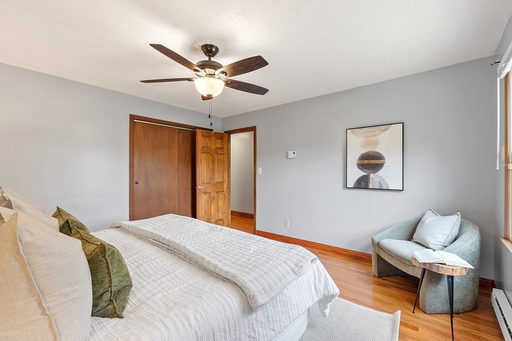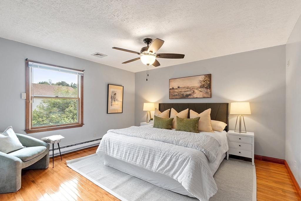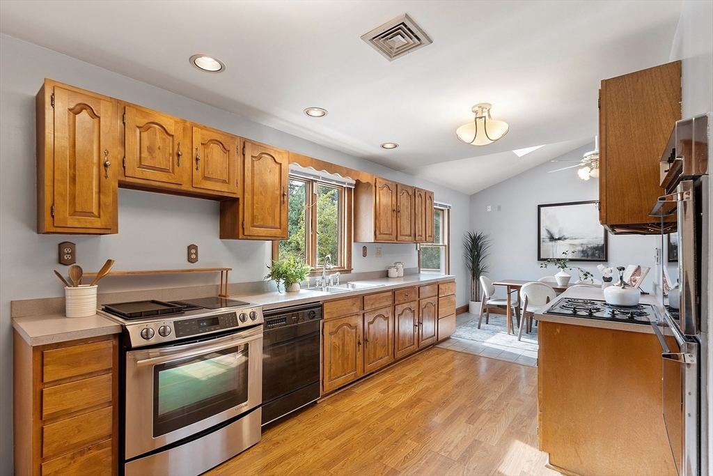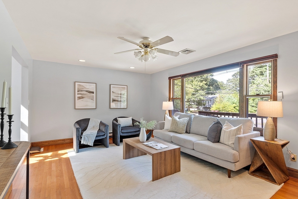 Sunlight streams through this home creating an ever-changing dance of natural light. The expansive Great Room serves as the heart of the home, walls of windows frame serene views. This versatile space flows seamlessly into the kitchen featuring its own skylight-lit dining area. Single-level living offers effortless convenience on the main floor, while the lower level doubles the entertainment possibilities. This finished area includes a dedicated office work out room, plus a versatile family room complete w/wet bar, built-in mini fridge & cooktop. Each bedroom showcases rich HW flooring, creating a harmonious flow throughout. The living room presents exciting possibilities, easily transformable into a formal dining room. The private backyard, with 2 decks, opens to pastoral views of distant cranberry bogs, offering a uniquely peaceful New England backdrop. Additional features: maintenance free exterior, generator, roof 2020, hot H20 heater 2023. Offers due Tuesday, Sept 9th at noon.