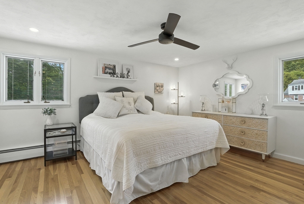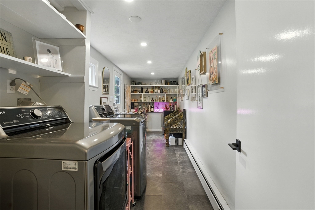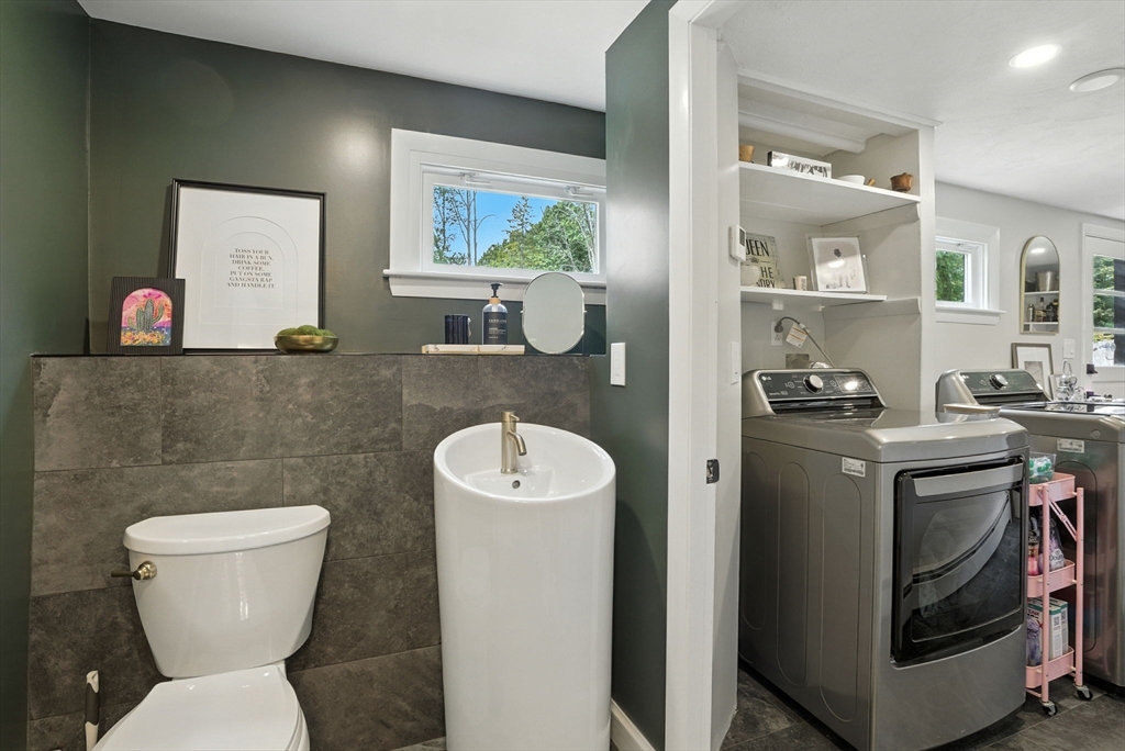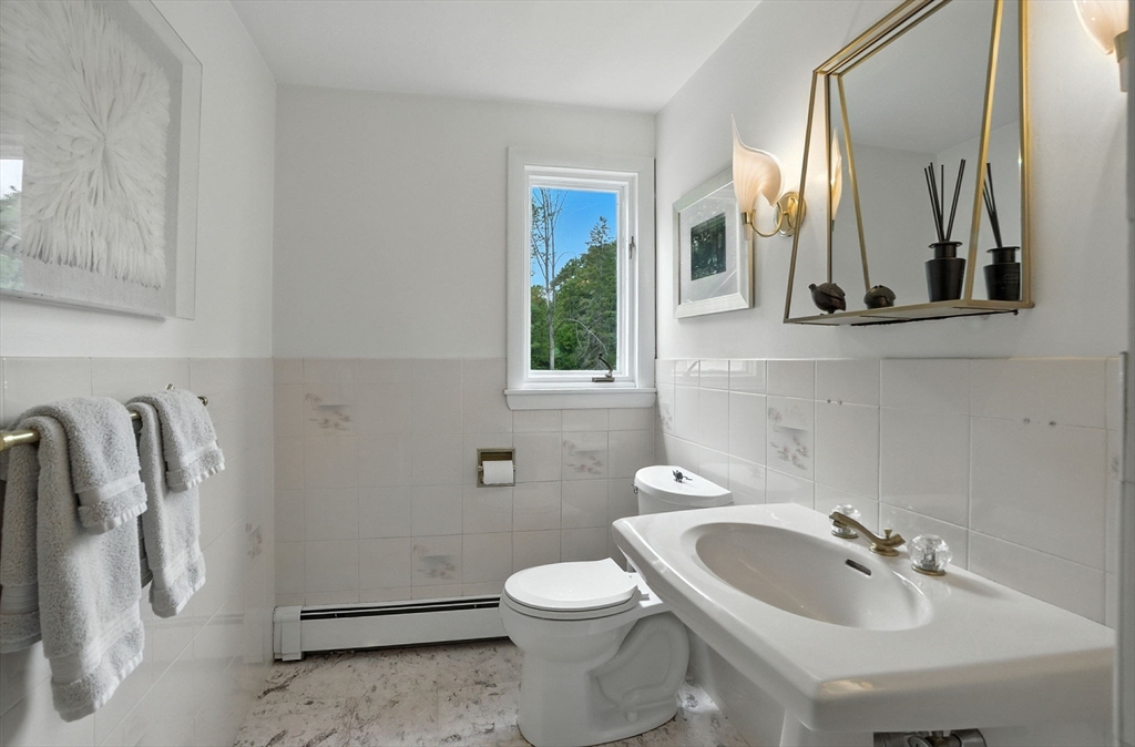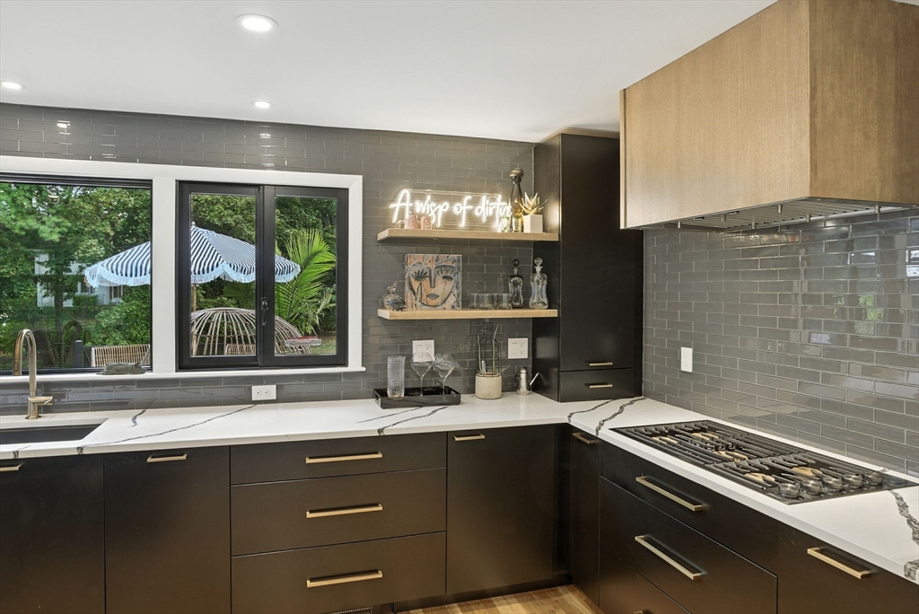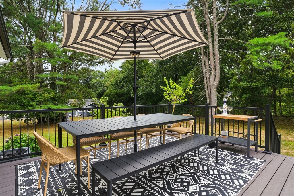 Unicorn: something rare, highly desirable, and nearly impossible to find. 30 Linda Road fit this definition perfectly. From the curb, its bold black-and-white exterior and glass-panel garage door make a striking statement with hints of Art Deco flair. The main level balances open sightlines with defined spaces that make entertaining effortless. The chef’s kitchen dazzles with sleek black cabinetry, a waterfall-edge island, and professional grade appliances, while an oversized slider floods the dining area with light and opens to a 24’ x 14’ composite deck—perfect for gatherings overlooking the expansive, landscaped yard with room for a pool. A wood-burning fireplace brings warmth to the living room, while the sunroom offers a serene retreat. Upstairs, three spacious bedrooms feature hardwood floors and recessed lighting. A semi-finished lower level with wood burning fireplace provides endless flexibility for a media lounge or gym. Rare in design and lifestyle, this home is pure magic.