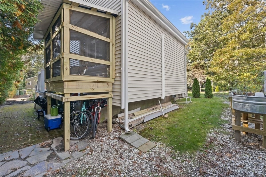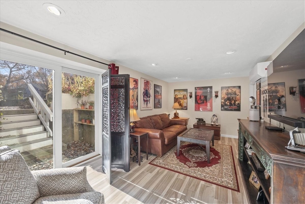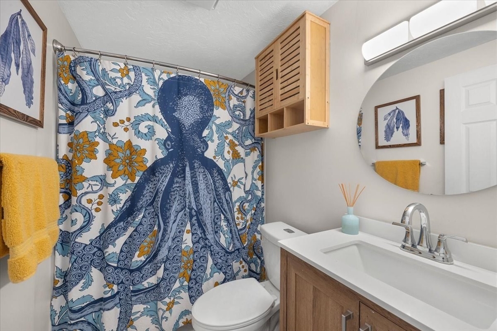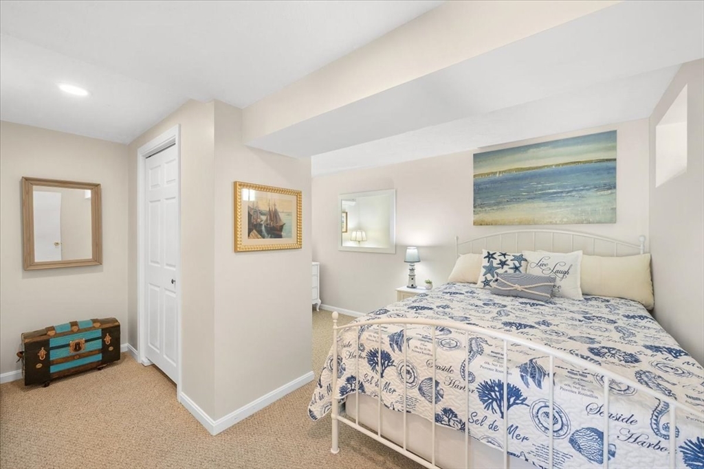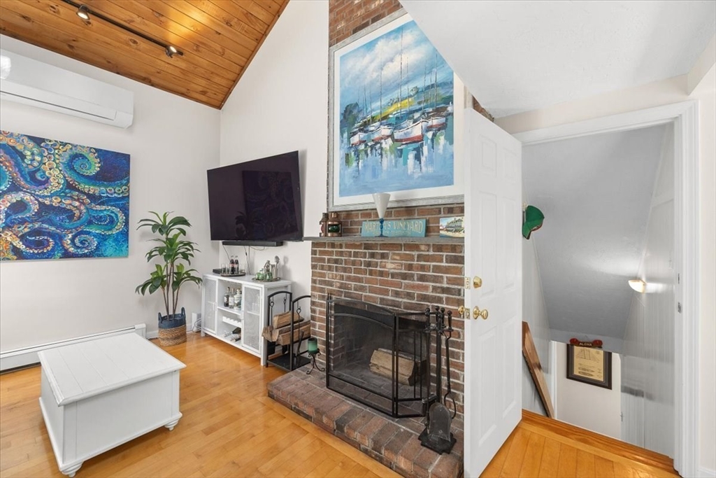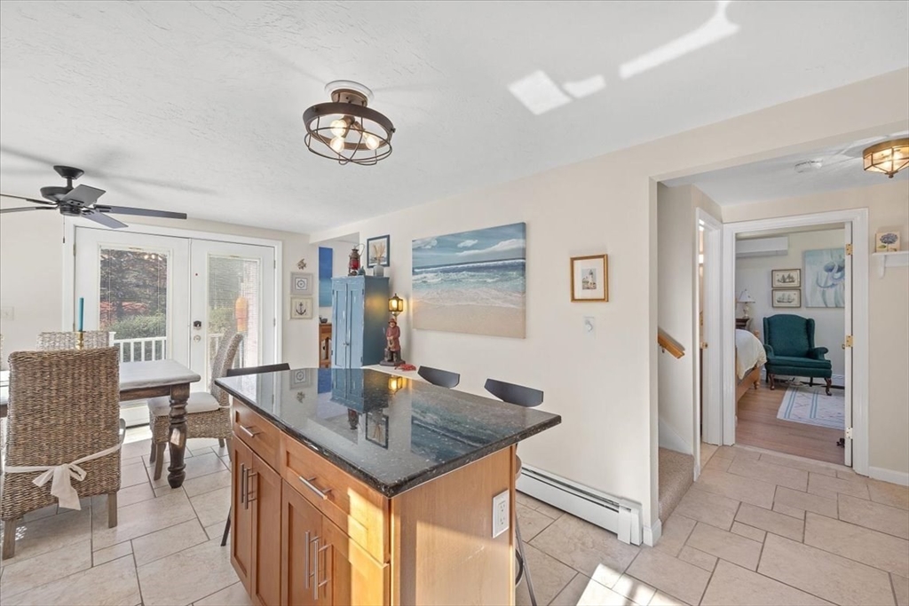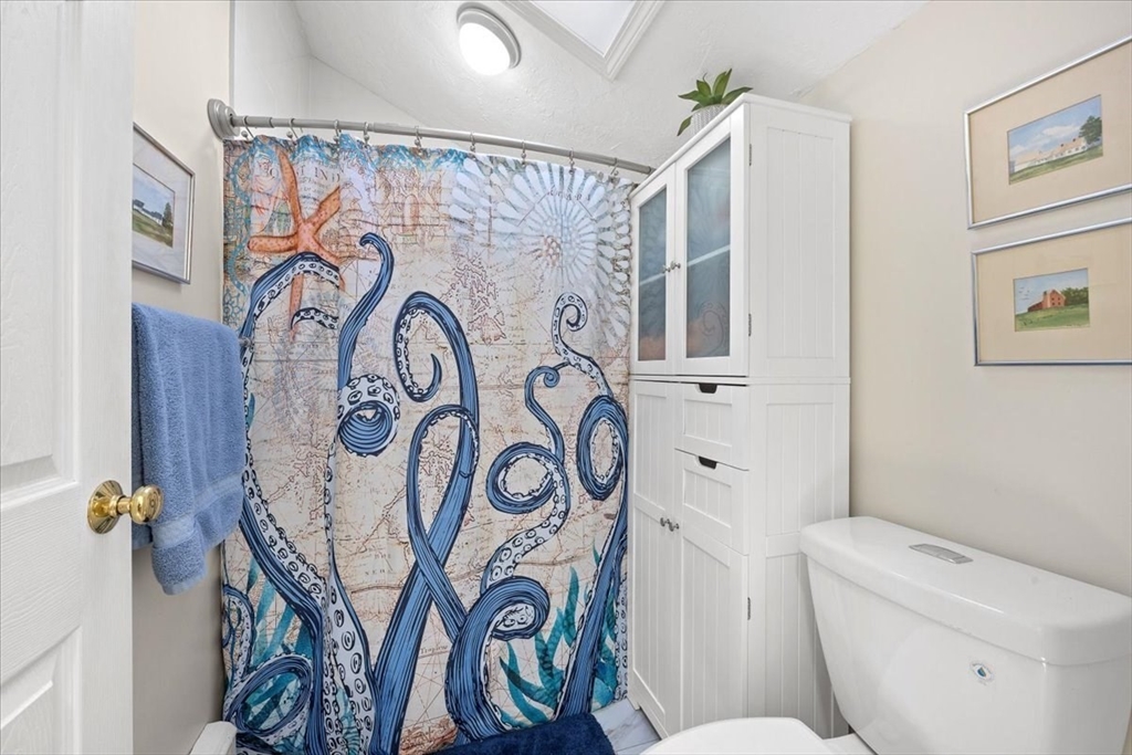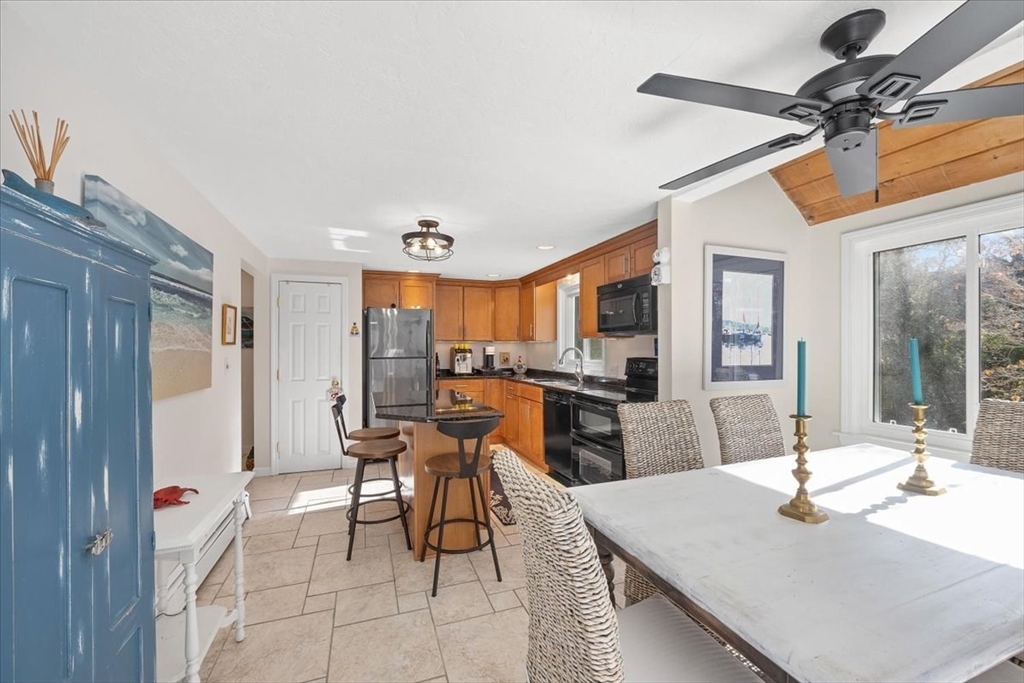 Nothing beats living near the beach! Welcome to Ocean Aire Estates! Feel like you are on vacation year round in this updated contemporary style home that has a cool vibe and is one block from the beach access. The main level is open and bright with cathedral ceilings, skylights and tons of natural light. The living room has a beautiful wood planked ceiling and a floor to ceiling brick fireplace. The kitchen is updated and has a spacious dining area with large sliding windows. A bedroom and full bathroom complete the first floor. The primary bedroom is on the second floor and has it's own bathroom and walk-in closet. The third bedroom is in the finished lower level which has a walk-out through a sliding glass door and added recessed lighting making the space perfect for a family room, media room, game room or office space. Recent updates include flooring, mini-splits for AC, both bathrooms, composite decks, and the house has been vinyl sided. This move-in ready home is a must see!