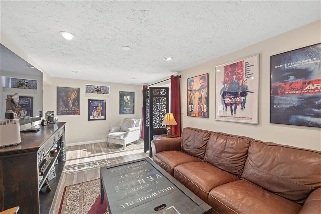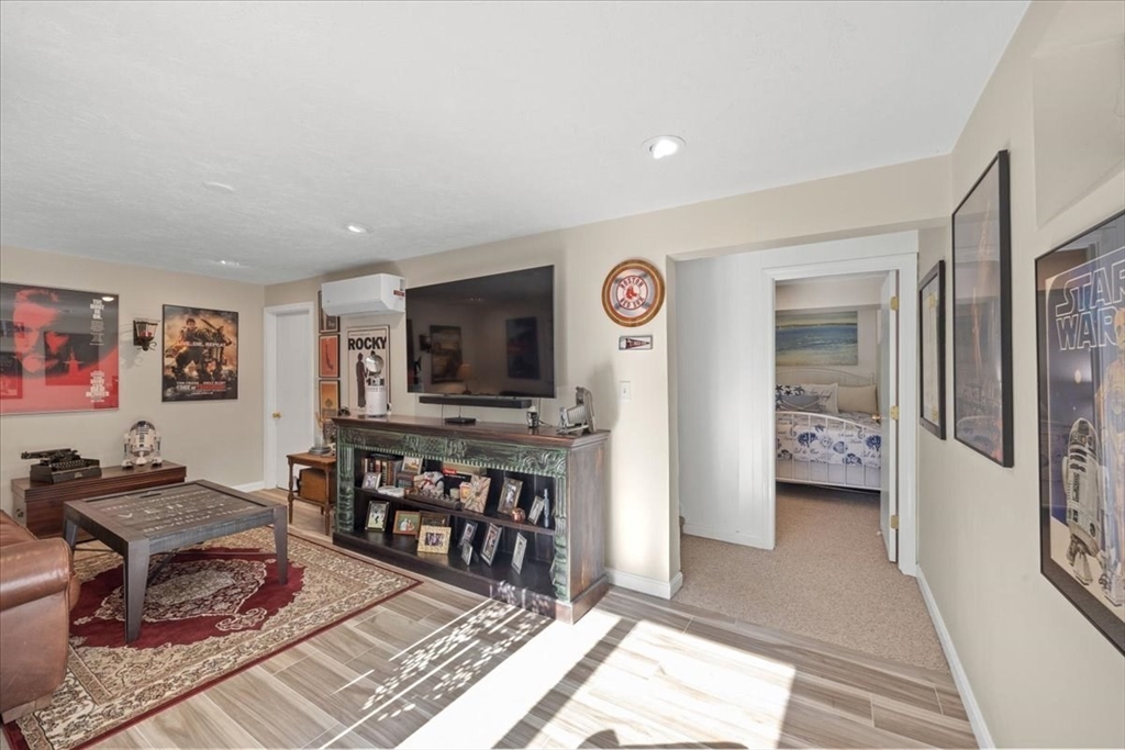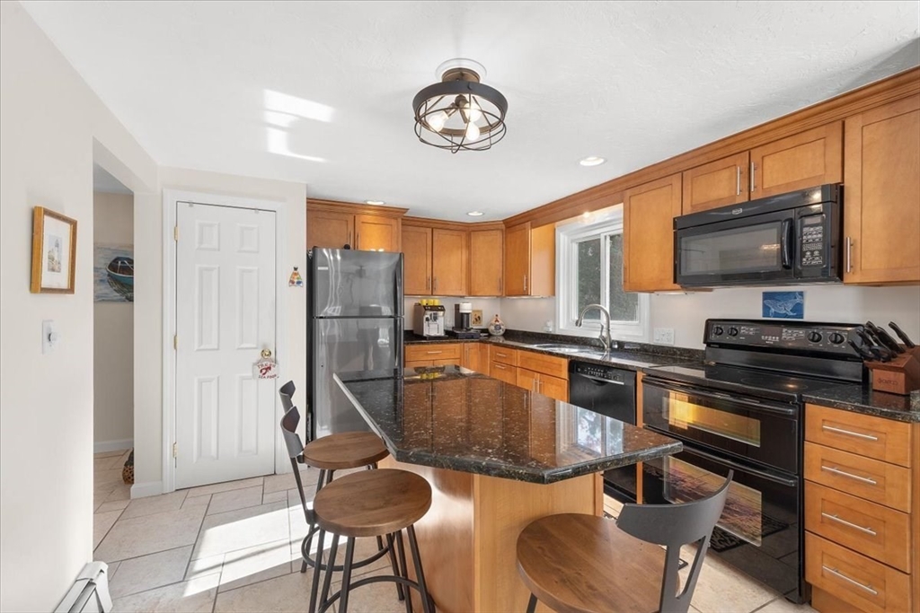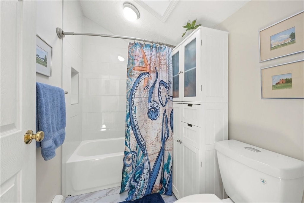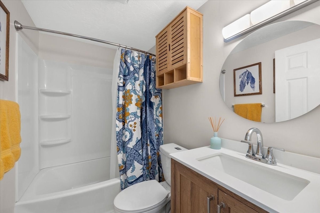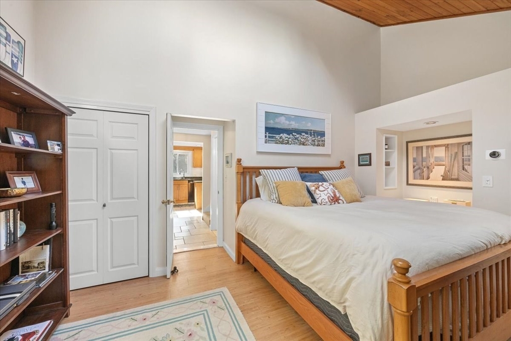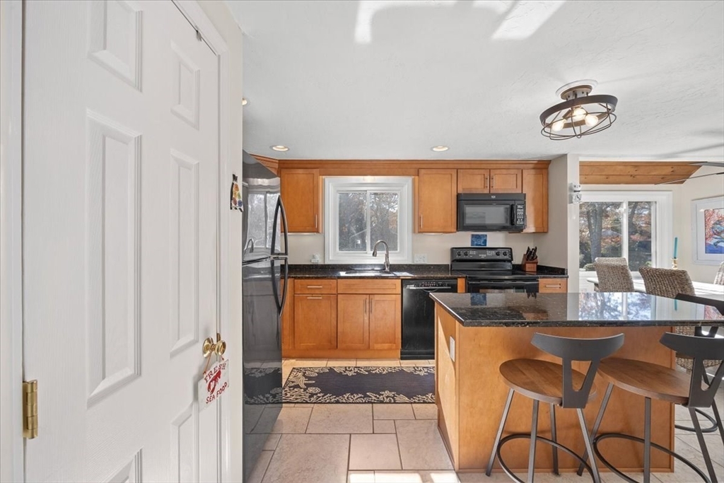Nothing beats living near the beach! Welcome to Ocean Aire Estates! Feel like you are on vacation year round in this updated contemporary style home that has a cool vibe and is one block from the beach access. The main level is open and bright with cathedral ceilings, skylights and tons of natural light. The living room has a beautiful wood planked ceiling and a floor to ceiling brick fireplace. The kitchen is updated and has a spacious dining area with large sliding windows. A bedroom and full bathroom complete the first floor. The primary bedroom is on the second floor and has it's own bathroom and walk-in closet. The third bedroom is in the finished lower level which has a walk-out through a sliding glass door and added recessed lighting making the space perfect for a family room, media room, game room or office space. Recent updates include flooring, mini-splits for AC, both bathrooms, composite decks, and the house has been vinyl sided. This move-in ready home is a must see!