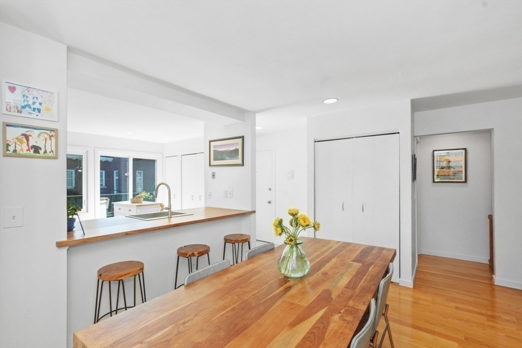 This spacious and private two bedroom condo is conveniently located in a professionally management 6-unit association near Huron Village and Harvard and Porter Squares. Enjoy two floors of living space in this corner townhouse style property. Walk into the open concept first floor, featuring hardwood floors, a living room, dining room and an updated kitchen with stainless steel appliances, pantry storage and counter seating. A half bathroom and two private balconies complete this level. Upstairs you’ll find two bedrooms, including an oversized primary bedroom, updated bathroom, brand new hot water heater, and in unit washer and dryer. Ideally located close to Route 2 and the T, this property also includes a private parking space.