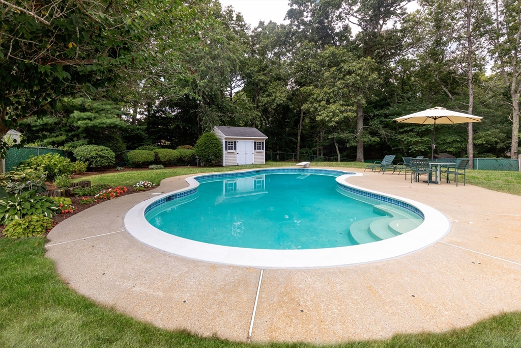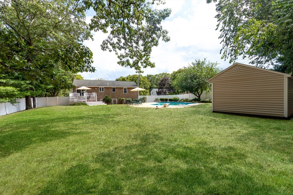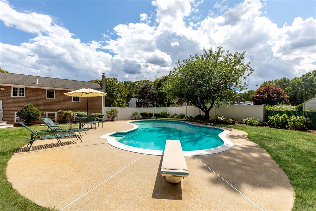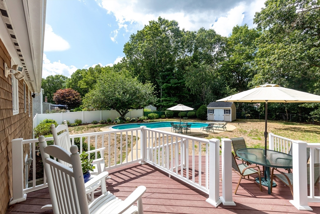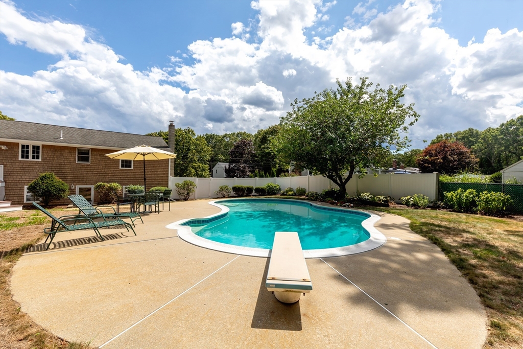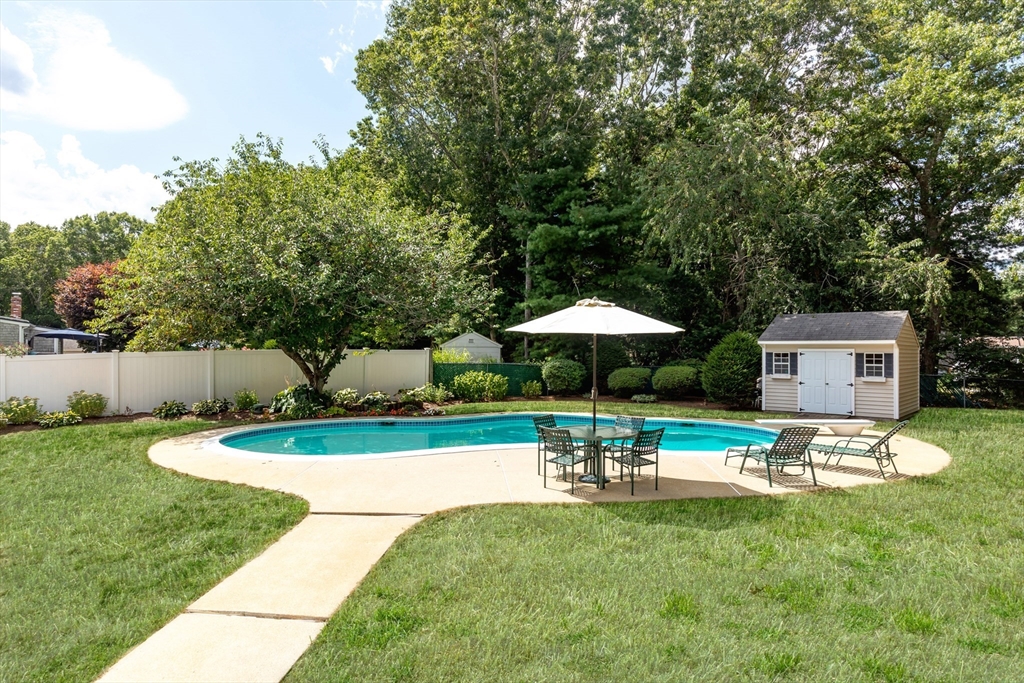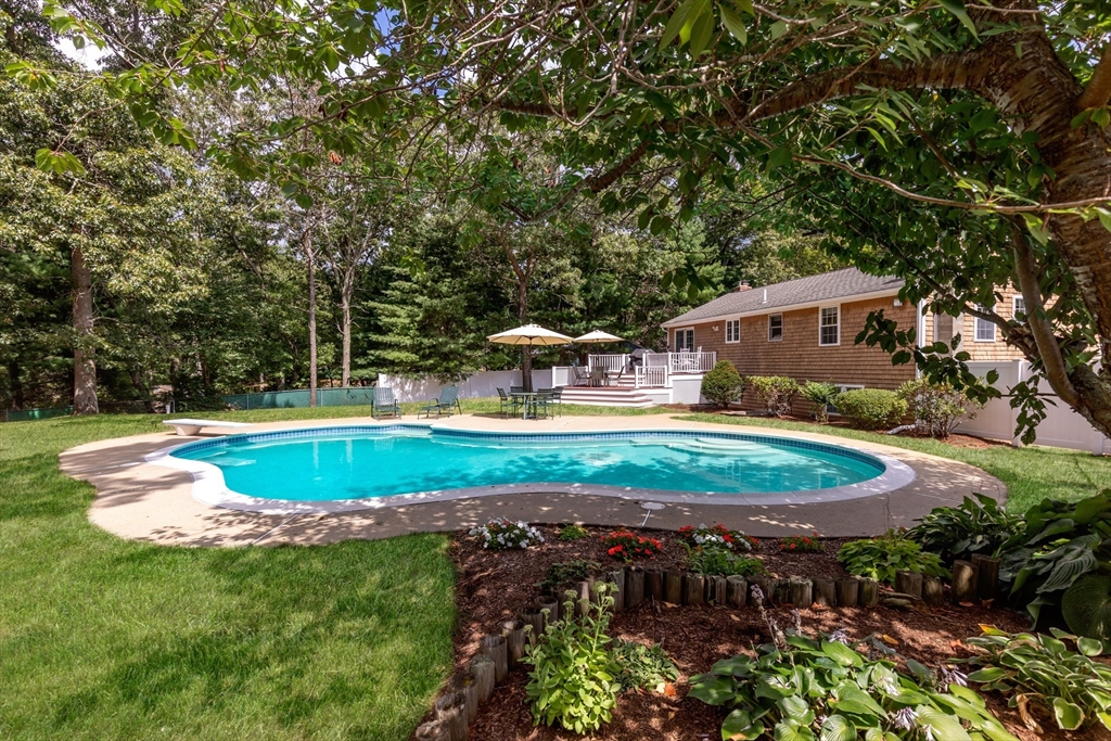 Desirable 3 bedroom 1.5 bath home set on .46 ac lot with charismatic in ground concrete pool and lovely garden. The character of the home speaks for itself with the attractive roofline, the stone walkway & exterior condition. The main floor hosts a brite layout enhanced by a fpl living room w/picture window, open to the dining rm with a slider looking out onto the tiered deck and splendid pool area. An updated kitchen with stone counters is fully applianced by a wall oven, micro, dw & fridge. The pleasing hardwd runs thruout the LRM, DRM & Bedrooms on the main floor along with a spacious tile full Bath with tub. The lower level boasts an oversized family rm, half bath & laundry area/storage. A walkout basement is perfect for accessing the pool area (fenced backyard). Great for entertaining! Located just before the cul de sac, enhancing the private location. Home has been lovingly maintained and comes equipped with brand new heating & air conditioning system! Open House Sunday 12-2pm.