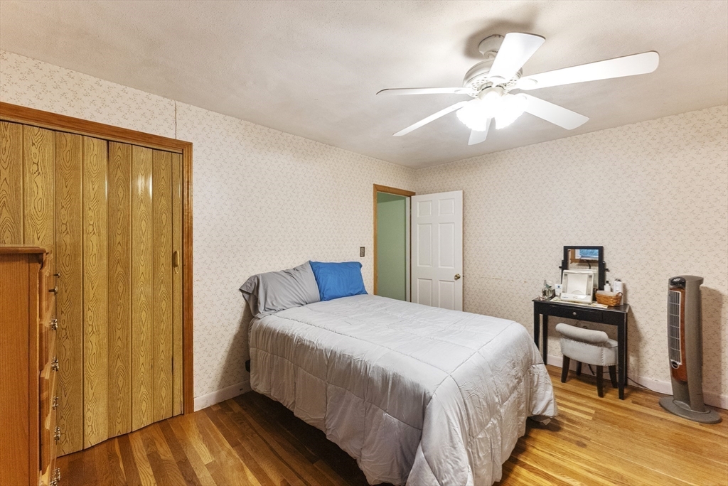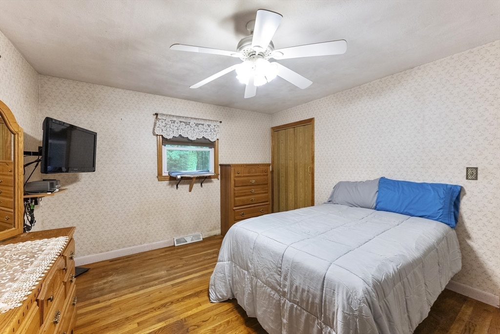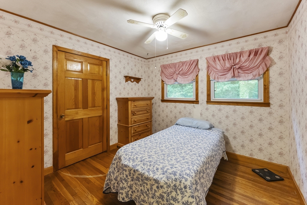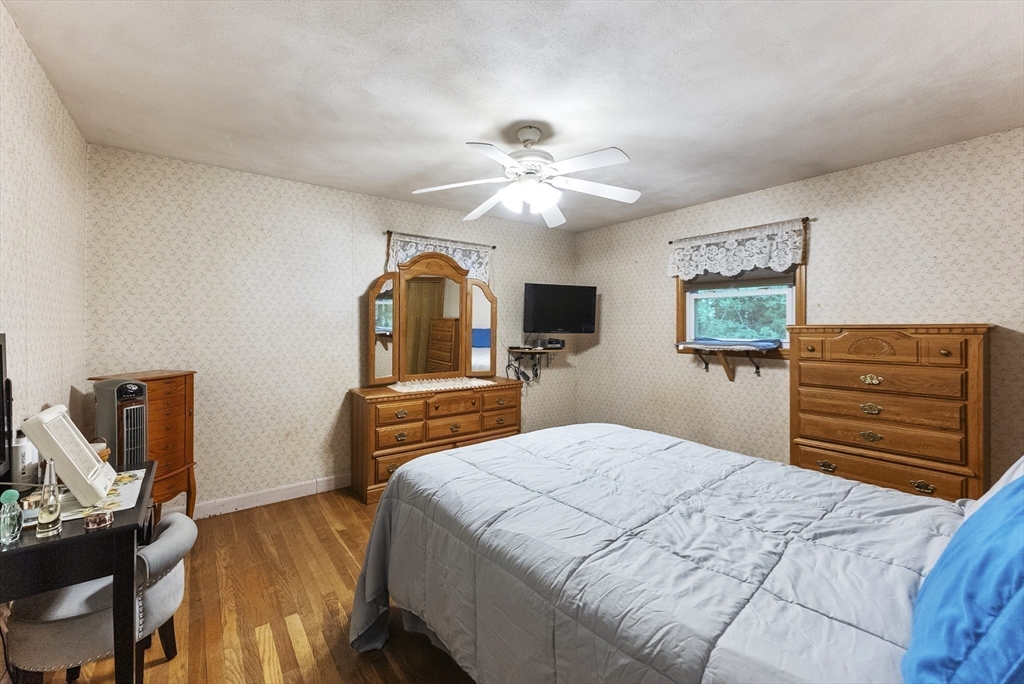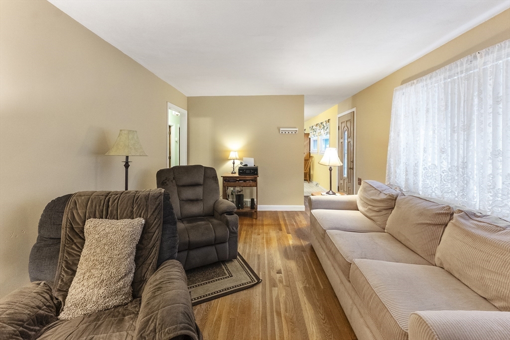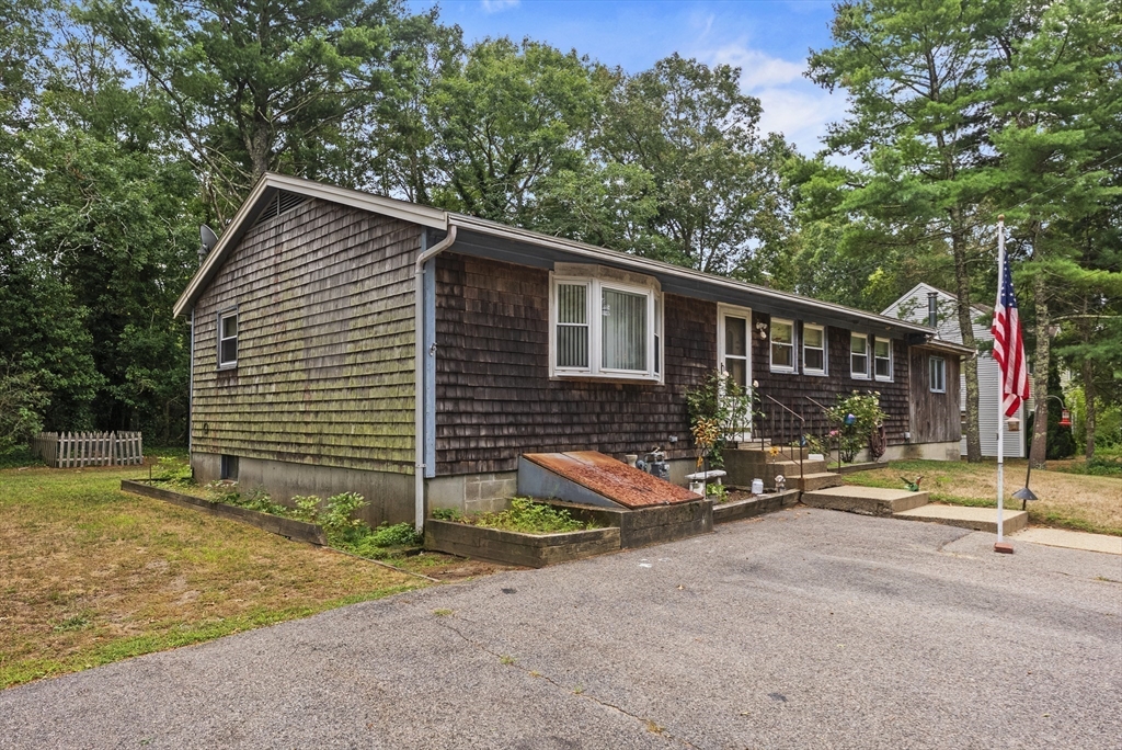 This well-appointed house features approximately 1,380 square feet of living space with three bedrooms and one bathroom. The home boasts a spacious layout with vaulted ceilings, creating an airy and open feel throughout the interior. The hardwood floors in the main living areas lend a warm and inviting ambiance, while the exposed beams add a touch of rustic charm. The generous windows allow for ample natural light to fill the spaces, enhancing the overall brightness and sense of openness. The home sits on a spacious lot, providing a peaceful setting for residents. The hardwood flooring extends throughout the main living areas, contributing to the cohesive aesthetic and durable, low-maintenance lifestyle.