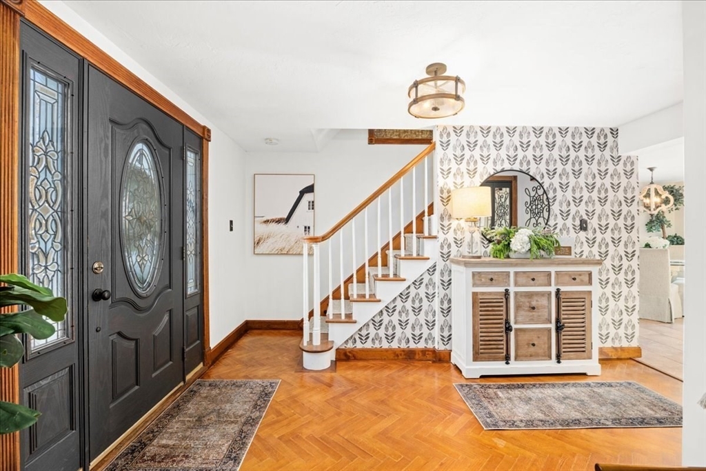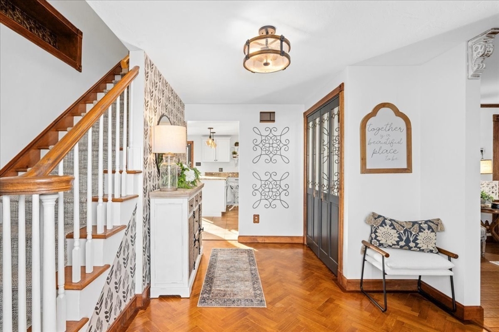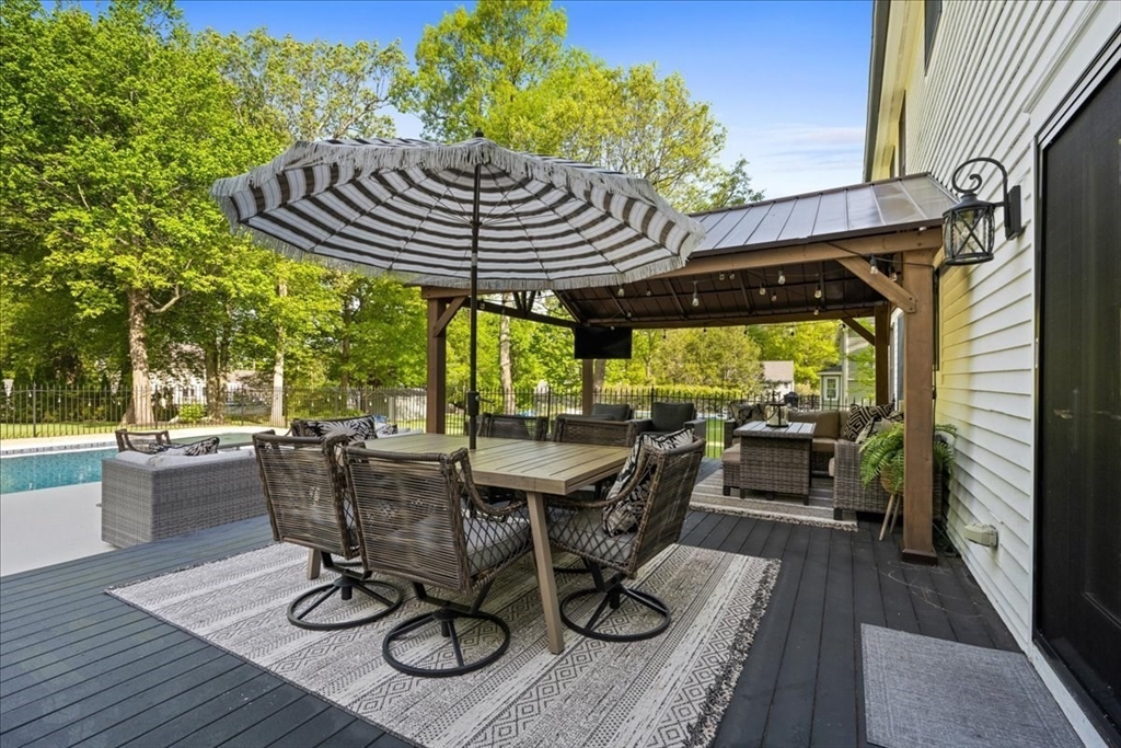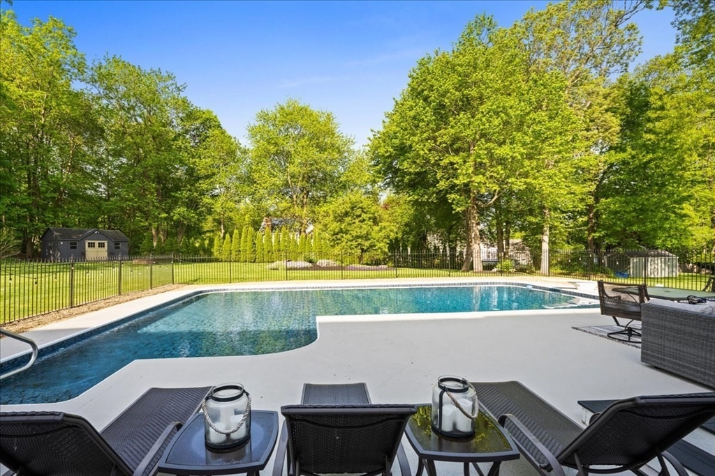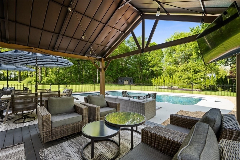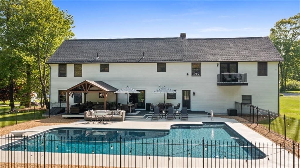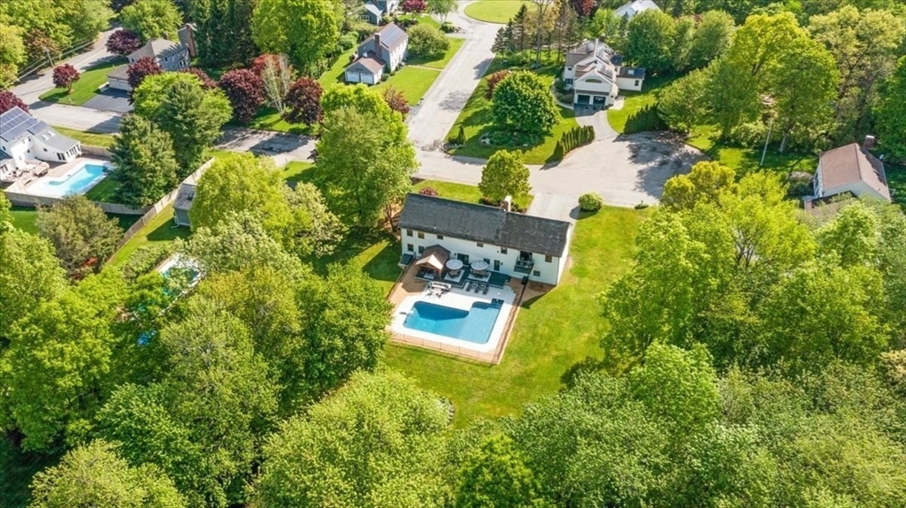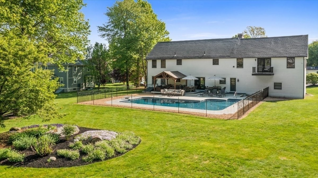 ~ Set on over an acre in one of Auburns' most desirable neighborhoods, this stunning 4-bedroom Colonial has been thoughtfully updated & designed for everyday comfort & exceptional entertaining ~ Step into the renovated kitchen, where French doors open to a private oasis, featuring an inground pool, expansive deck, patio & gazebo w/ outdoor TV - perfect for 3-season gatherings ~ Inside, enjoy a fireplaced living room, spacious dining room, & a dedicated home office - all with gleaming hardwood floors & custom woodwork ~ Convenient laundry area, half bath, & oversized mud room with an elevator for 2nd floor accessibility complete the main level ~ Upstairs offers a beautiful primary suite w/ walk-in closet & updated bath ~ Three additional large bedrooms & another renovated bath provide plenty of space for family & guests ~ The bonus room offers beamed cathedral ceiling, dramatic brick fireplace & balcony overlooking the picturesque backyard ~ Come fall in love w/ this one-of-a-kind home!
