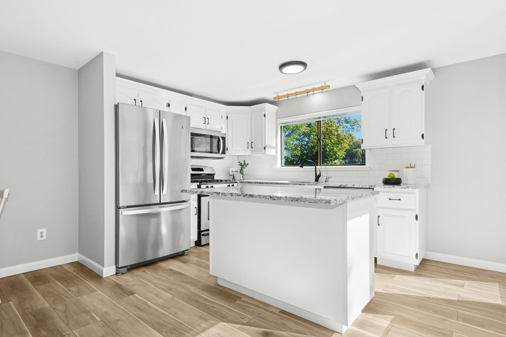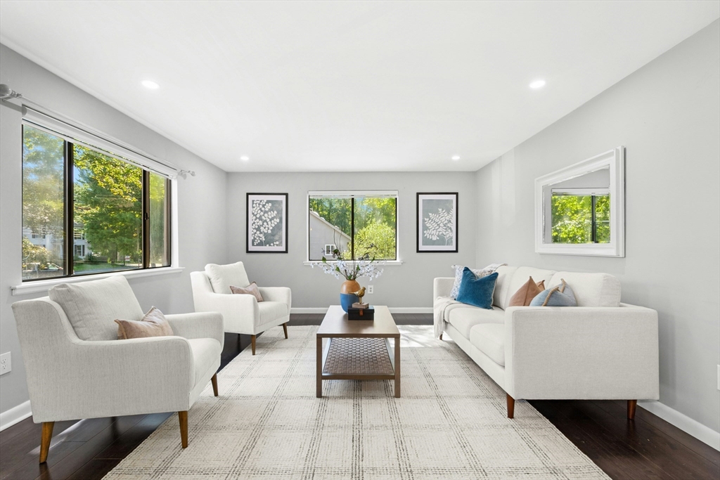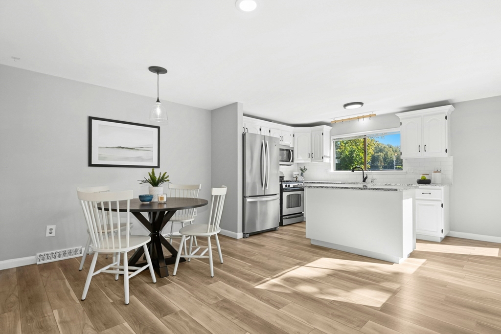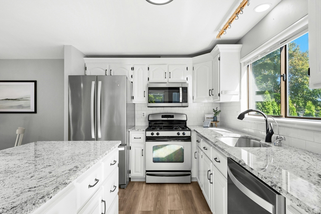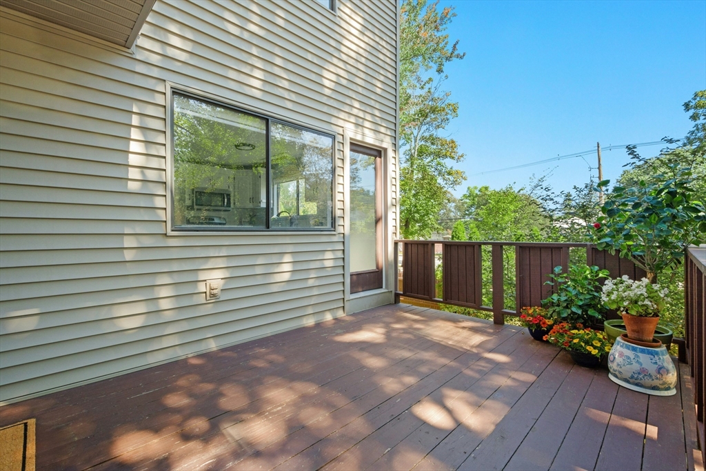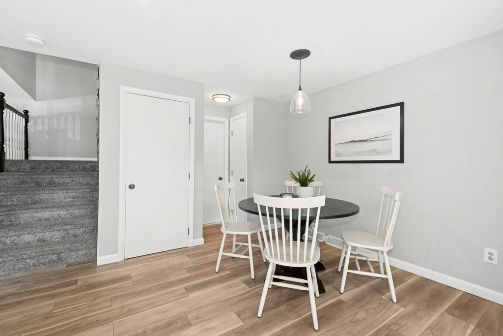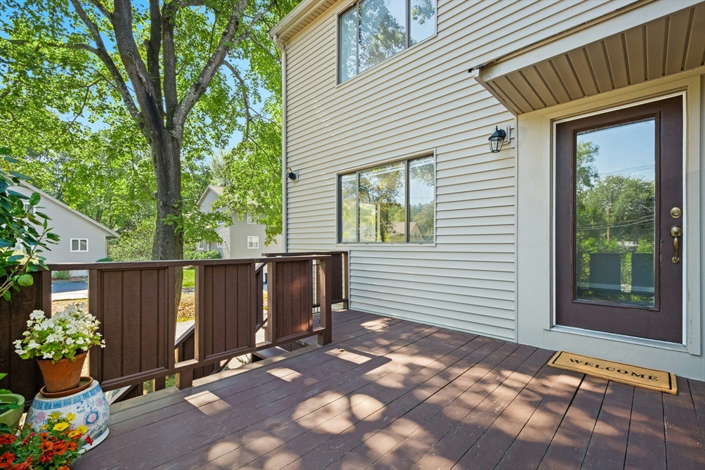 Welcome home! This beautiful three-level townhome features an open floor plan that leads you into a bright kitchen equipped with a granite center island, stainless steel appliances, and access to your private deck. The first level also includes a sunlit eat-in kitchen area, a spacious living room, and a half bath. Hardwood floors flow throughout the living room, hallway, and both bedrooms. On the second floor, you'll find two oversized bedrooms and a full bathroom. The lower level hosts a finished bonus room with durable vinyl plank flooring, a separate laundry area, and direct access to the garage. An added perk is the private side yard! Positioned directly across from Hudson High School and close to numerous shopping and restaurant options, this townhome is in an ideal commuter location, with easy access to Routes 290 and 495. A quick closing is possible, come see this special space today!