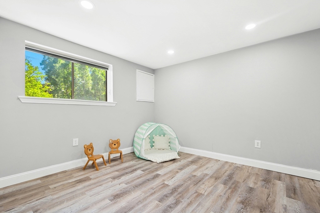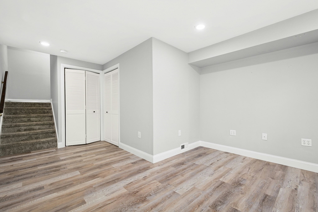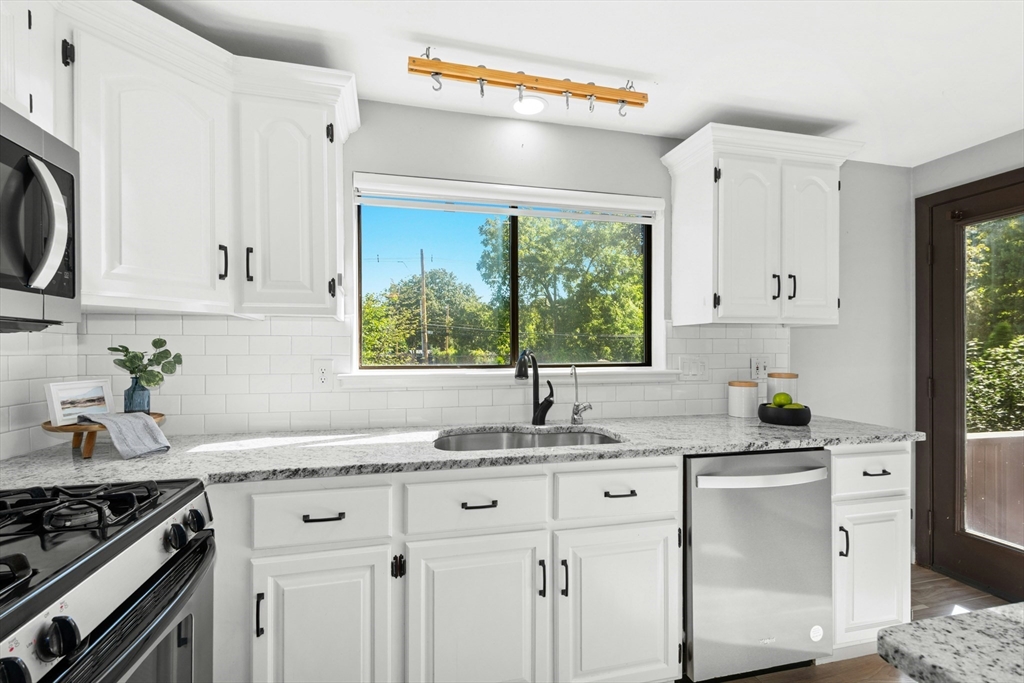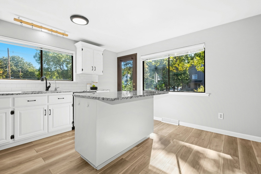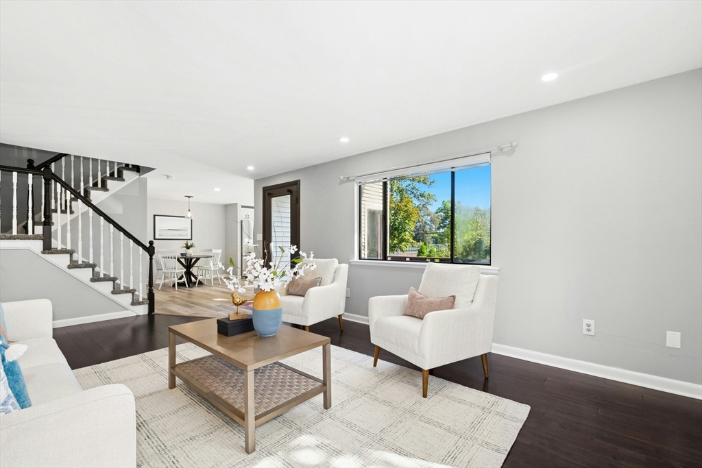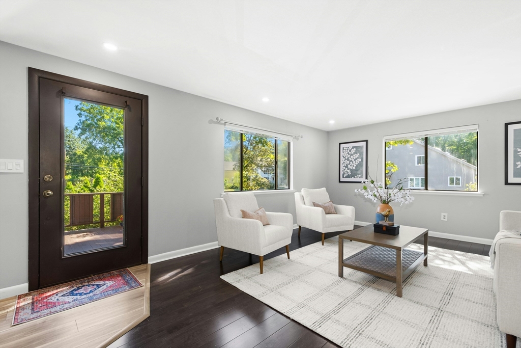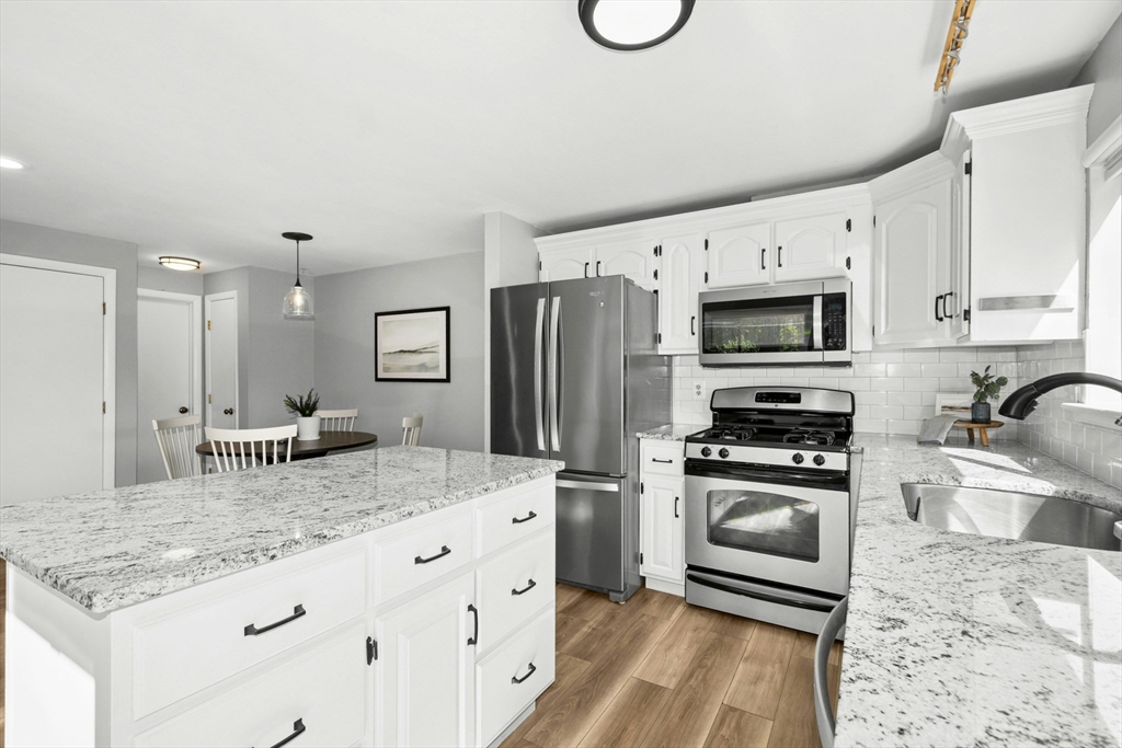 Welcome home! This beautiful three-level townhome features an open floor plan that leads you into a bright kitchen equipped with a granite center island, stainless steel appliances, and access to your private deck. The first level also includes a sunlit eat-in kitchen area, a spacious living room, and a half bath. Hardwood floors flow throughout the living room, hallway, and both bedrooms. On the second floor, you'll find two oversized bedrooms and a full bathroom. The lower level hosts a finished bonus room with durable vinyl plank flooring, a separate laundry area, and direct access to the garage. An added perk is the private side yard! Positioned directly across from Hudson High School and close to numerous shopping and restaurant options, this townhome is in an ideal commuter location, with easy access to Routes 290 and 495. A quick closing is possible, come see this special space today!