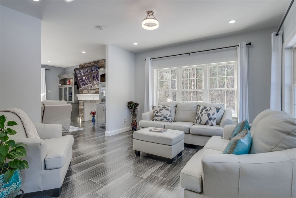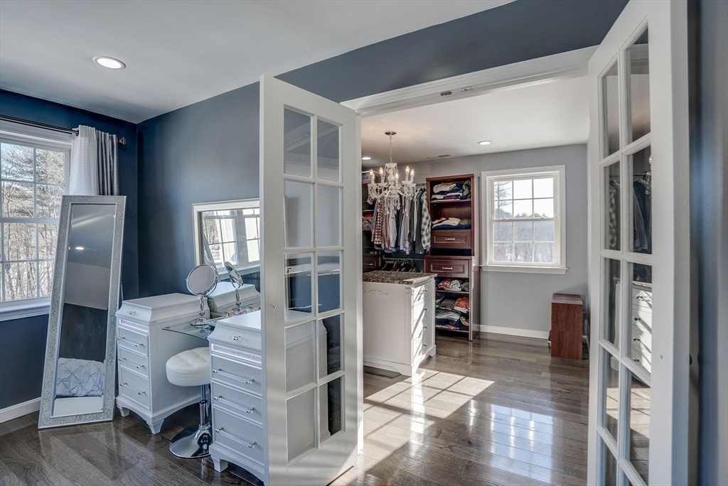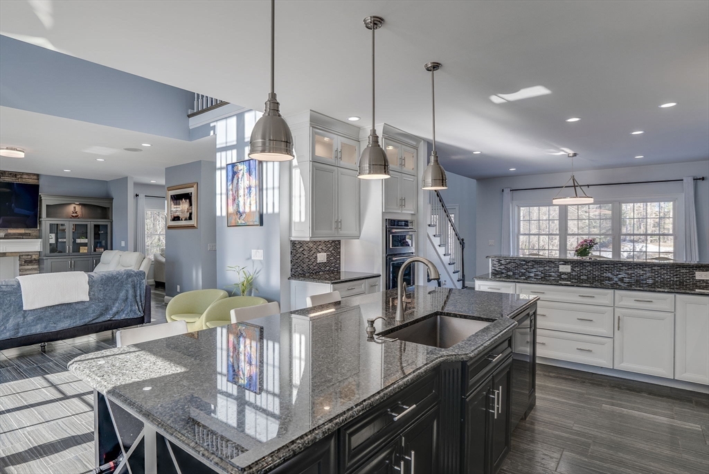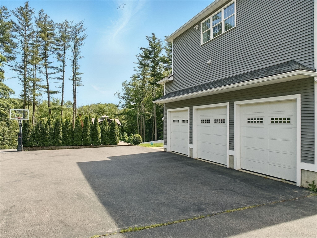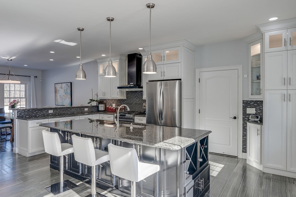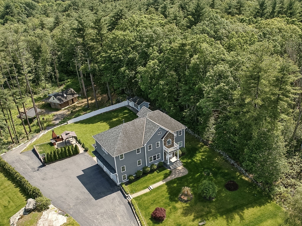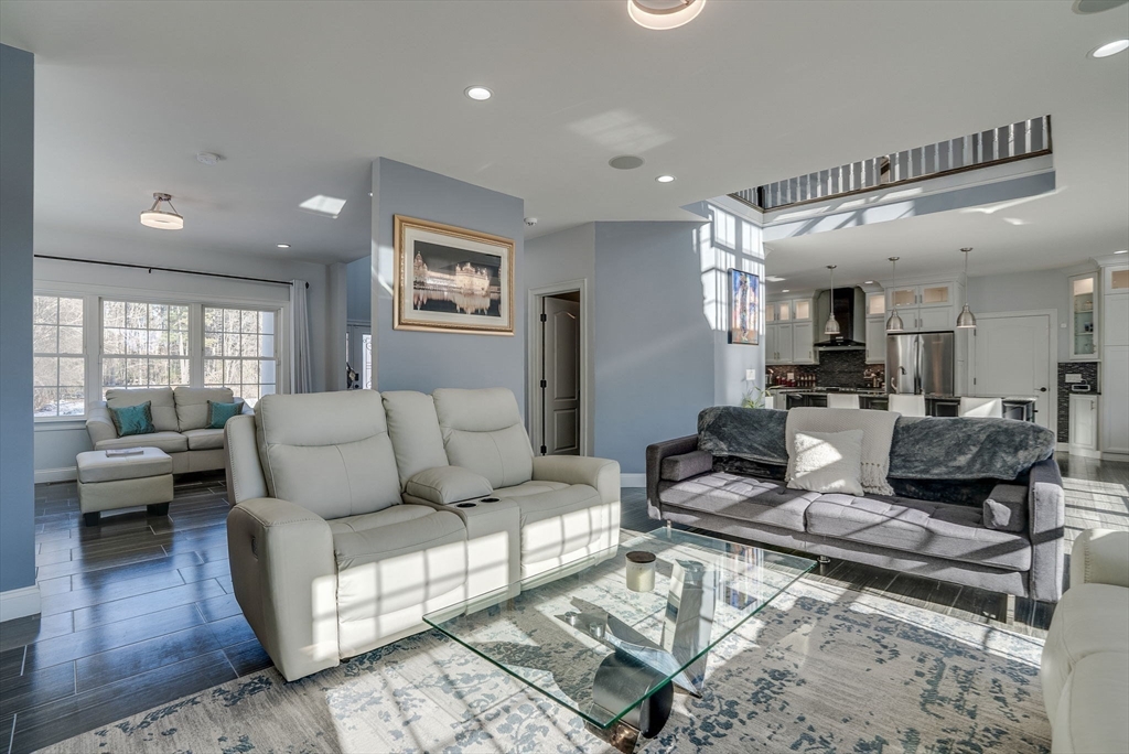 Elegantly designed & energy-efficient 12 room, 4 bedroom, 3.5 bath Contemporary Colonial offers 4,966 SF of thoughtfully crafted living space. Perched on 3+ acres w/ sweeping panoramic views, this home is a true masterpiece of quality & design. The gourmet chef's kitchen is a culinary dream, featuring granite countertop, a spacious entertaining island, & abundant cabinetry seamlessly opening into a bright expansive floor plan w/ access to large deck. The luxurious 23x18 primary suite boasts a tray ceiling, spa like ensuite bath, & 12x10 dressing area. There is a 3rd floor walk-up attic. The w/out finished LL offers a full in-law suite w/ sep entrance. Fully equipped outdoor kitchen w/ brick oven. Car enthusiasts will like the 3 car gar w/ 17+ foot ceilings (room for a lift), & EV charging station. Multiple outbuildings for horses/chickens & or can be used for additional storage. Superior location near Rt 495/290/117/62, Wegman's, Market Basket, Cabella's, & loads of conservation land.