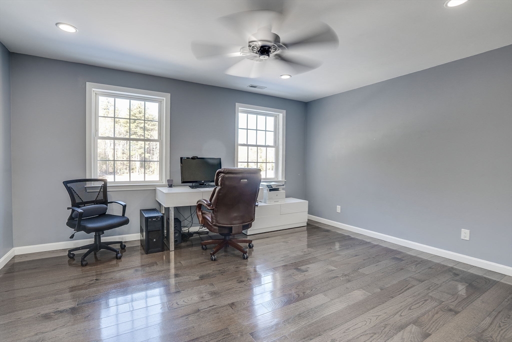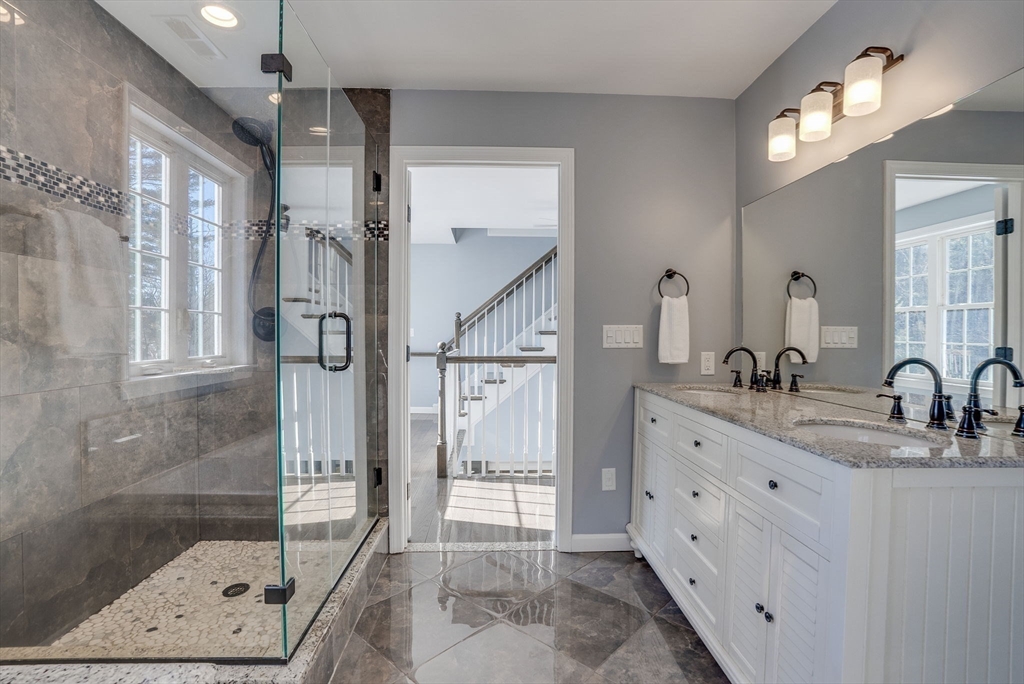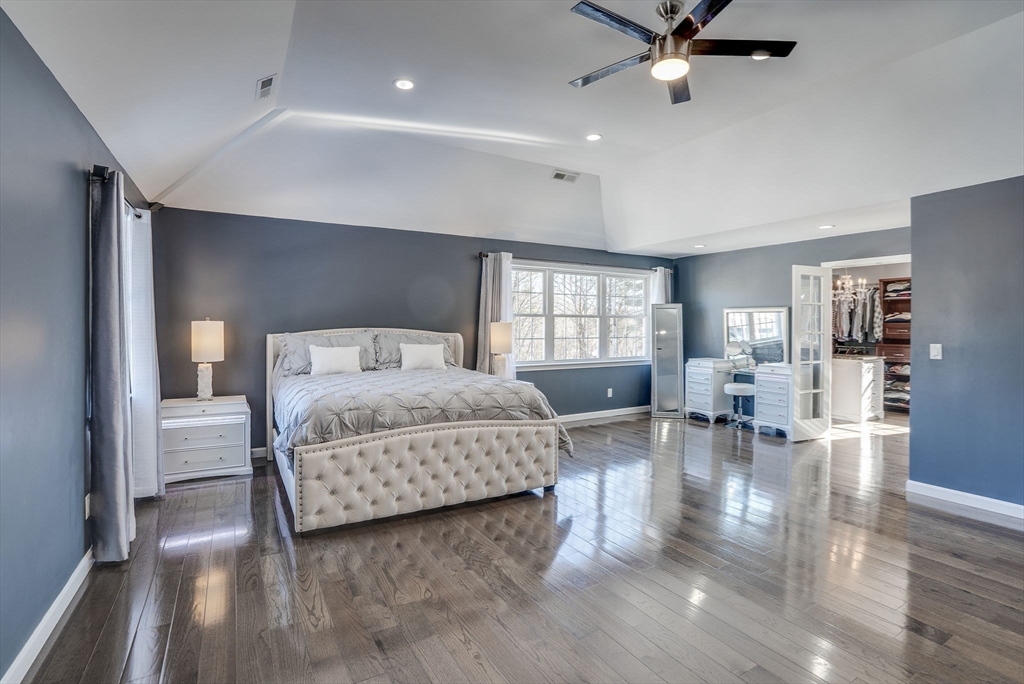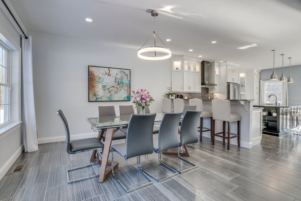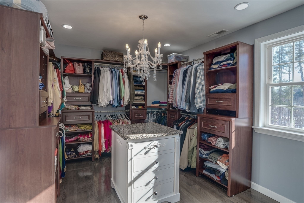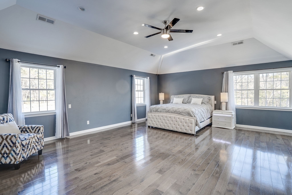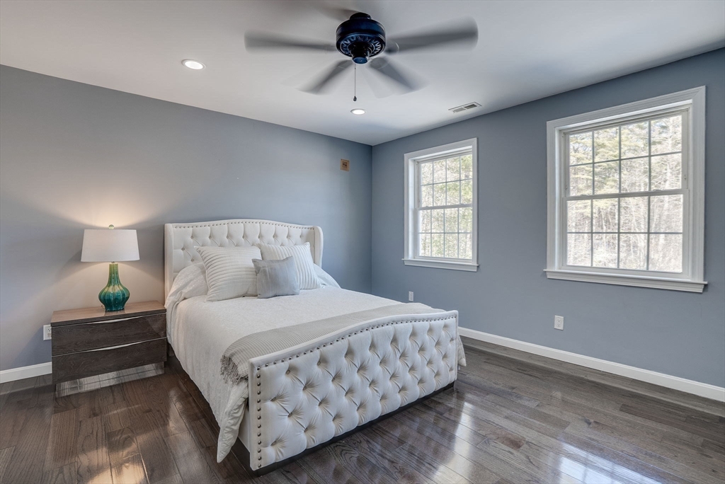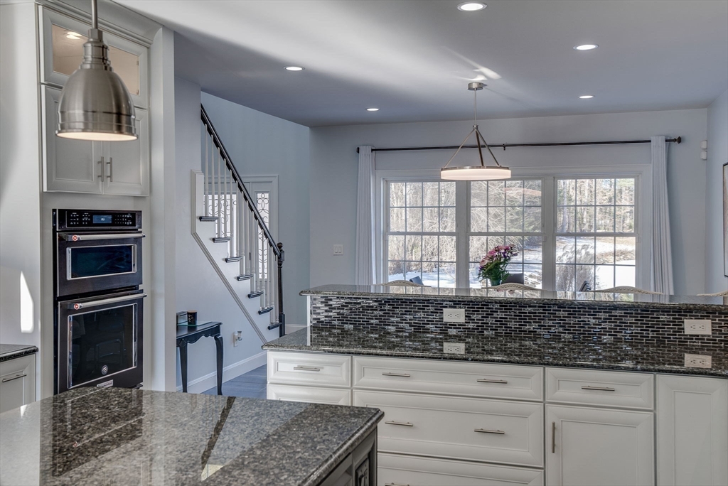 Elegantly designed & energy-efficient 12 room, 4 bedroom, 3.5 bath Contemporary Colonial offers 4,966 SF of thoughtfully crafted living space. Perched on 3+ acres w/ sweeping panoramic views, this home is a true masterpiece of quality & design. The gourmet chef's kitchen is a culinary dream, featuring granite countertop, a spacious entertaining island, & abundant cabinetry seamlessly opening into a bright expansive floor plan w/ access to large deck. The luxurious 23x18 primary suite boasts a tray ceiling, spa like ensuite bath, & 12x10 dressing area. There is a 3rd floor walk-up attic. The w/out finished LL offers a full in-law suite w/ sep entrance. Fully equipped outdoor kitchen w/ brick oven. Car enthusiasts will like the 3 car gar w/ 17+ foot ceilings (room for a lift), & EV charging station. Multiple outbuildings for horses/chickens & or can be used for additional storage. Superior location near Rt 495/290/117/62, Wegman's, Market Basket, Cabella's, & loads of conservation land.