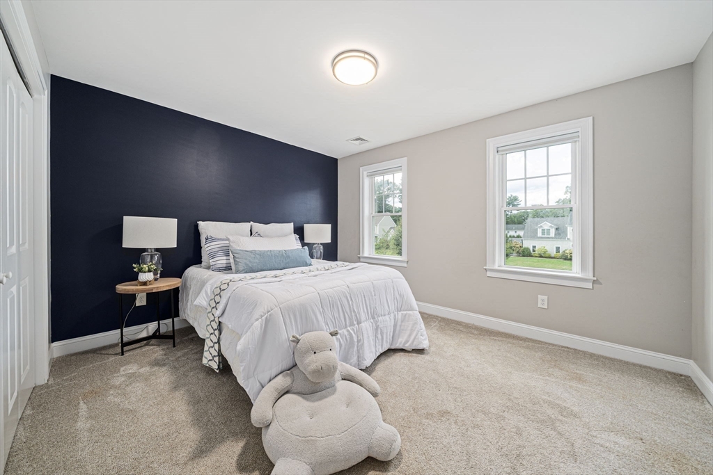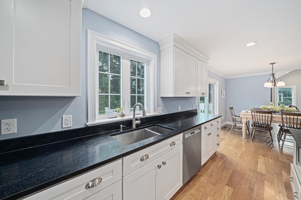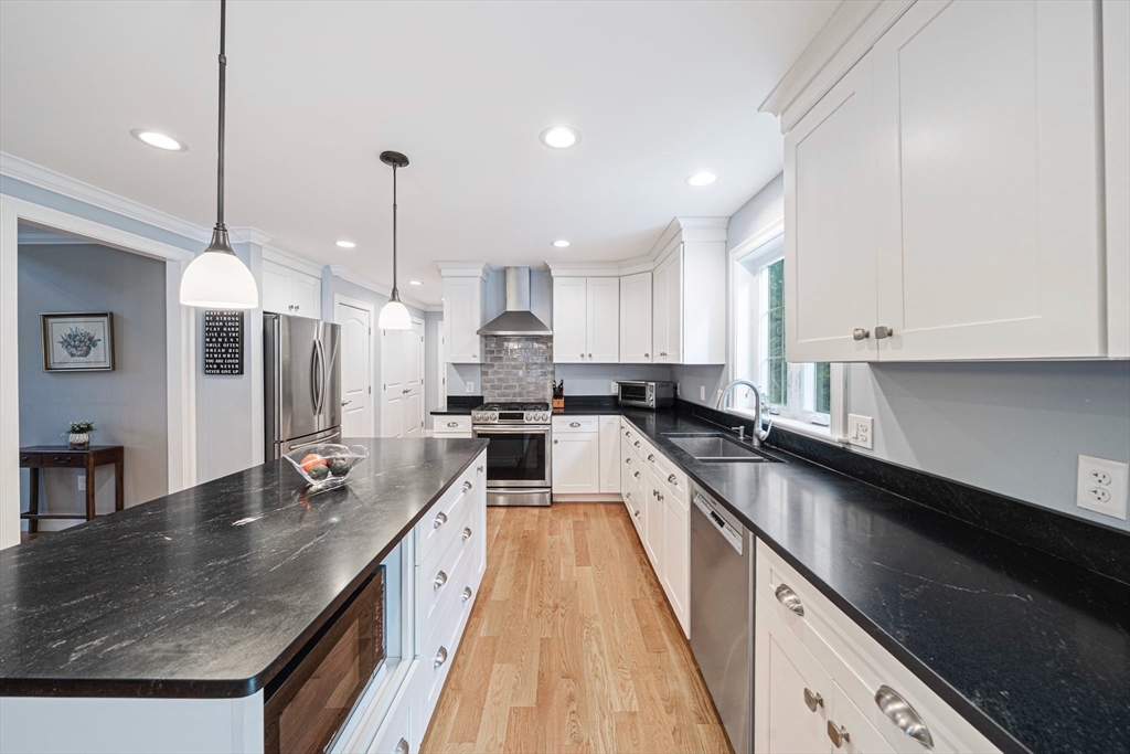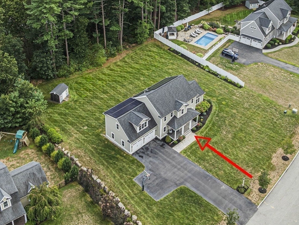Welcome to 10 Wood Hollow Way, a stunning young colonial built in 2018 on a quiet Hanover cul-de-sac of newer homes. This 9-room, 4-bed, 2.5-bath home offers an ideal floor plan for live / work /play! The 1st flr is filled w sun & a large open kitchen w/ an island, gas cooking, & a dining area overlooking the huge backyard. The family room with/ gas fireplace is perfect for gathering everyone together. Additionally, dining, home office, & laundry. Upstairs, the primary has his & hers closets & an ensuite w/ tiled shower & double vanity. 3 additional spacious bedrooms & a full bath w/ double vanity complete the 2nd floor. The basement is finished w/ the Owens Corning system and offers an amazing, flexible living space w/ pool table included. Seller-owned solar panels mean almost no electric bills! Natural gas heat, modern design, and a prime cul-de-sac location make this move-in-ready home a rare find in Hanover. Bonus: Generac generator, irrigation, paid solar, Hardi siding, composite.