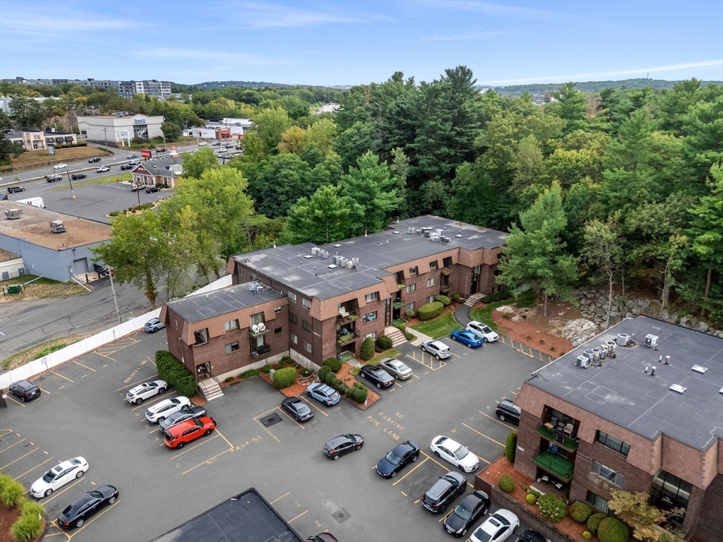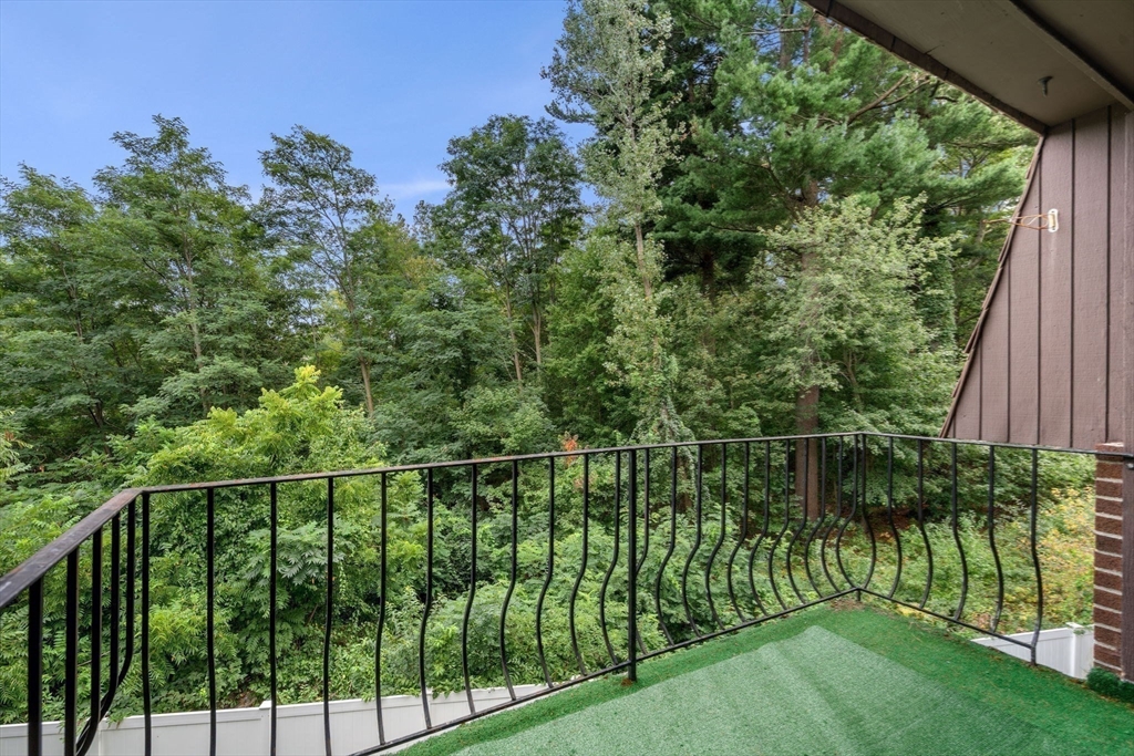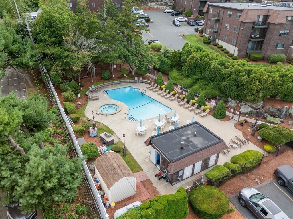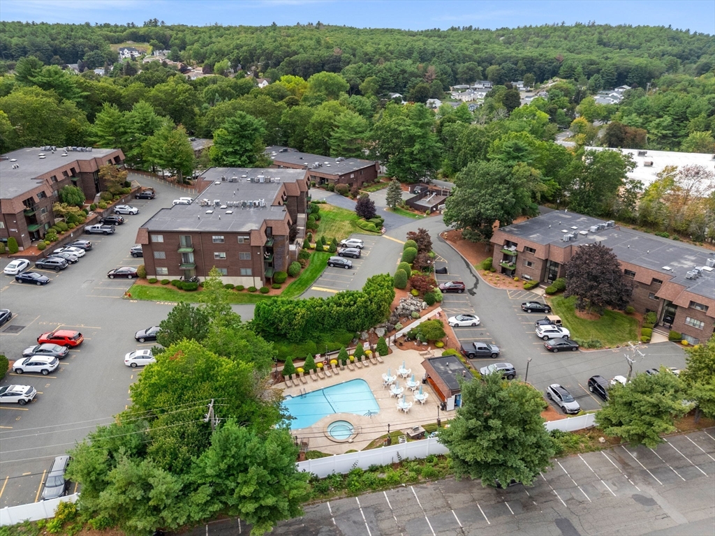 Welcome To The Hillview West Community! This top floor corner unit is immaculate, spacious and move in ready. Open concept Living/Dining Room w/decorative fireplace perfect for an electric insert. French door leads to a private balcony overlooking the common area with woods beyond. Skylight illuminates the eat-in kitchen with plenty of cabinets w/updated stove and dishwasher. Two generous bedrooms w/double closets, 2 full baths (primary recently updated). Convenient in-unit laundry with newer washer/dryer. Additional storage space available. One deeded parking space in addition to guest parking. Community ammenities include an outdoor pool and Jacuzzi. Convenient location for commuting with shopping and dining minutes away. Breakheart Reservation is right around the corner offering 600+ acres of trails, biking, and summer swimming. Showings begin at the Commuter Open House on Friday, 9/5 from 4:30 to 6:00 p.m. Open House Saturday 9/6 and Sunday 9/7 from 11:00 a.m. to 12:30 p.m.