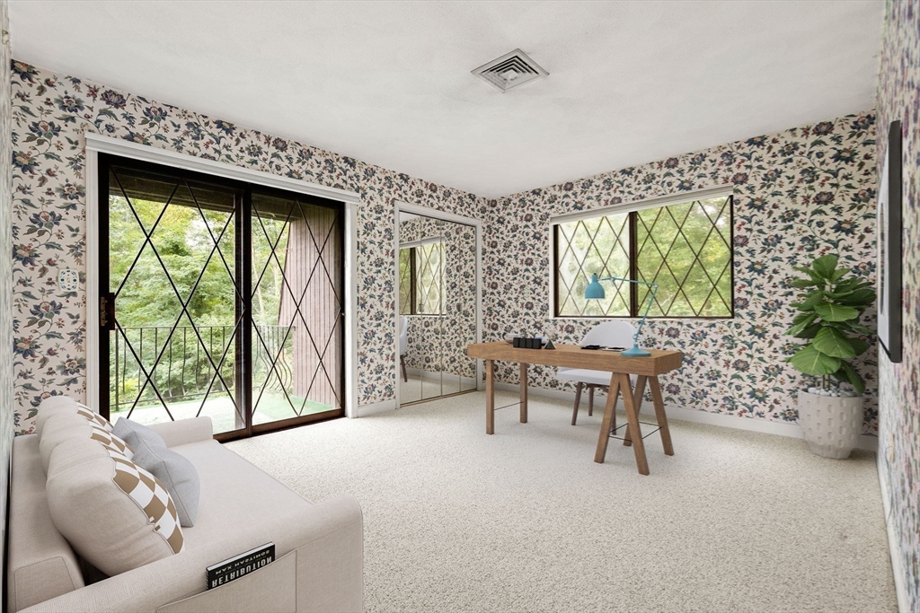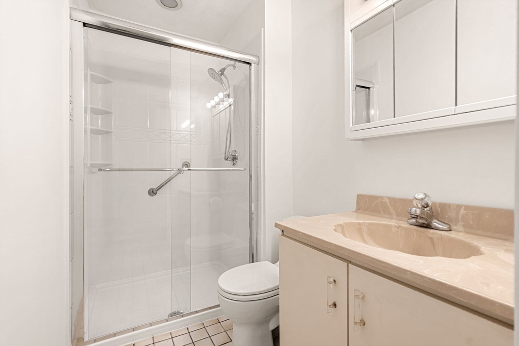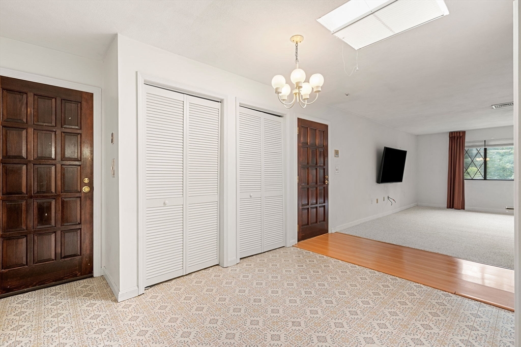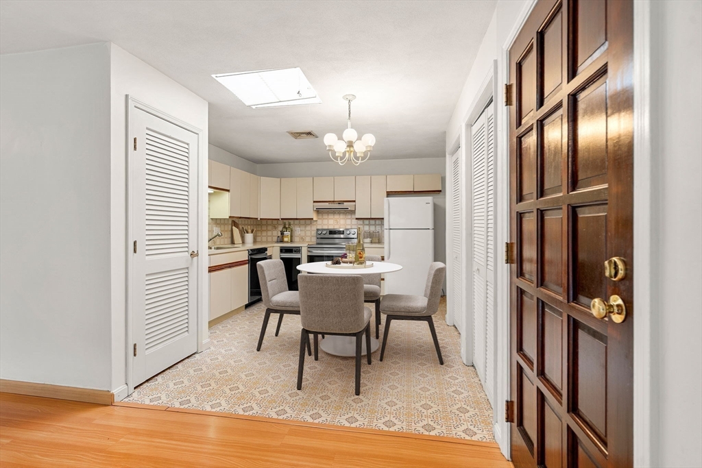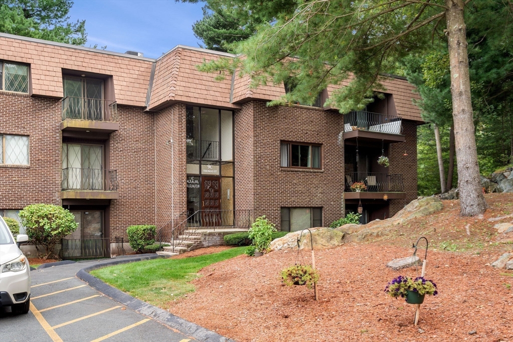 Welcome To The Hillview West Community! This top floor corner unit is immaculate, spacious and move in ready. Open concept Living/Dining Room w/decorative fireplace perfect for an electric insert. French door leads to a private balcony overlooking the common area with woods beyond. Skylight illuminates the eat-in kitchen with plenty of cabinets w/updated stove and dishwasher. Two generous bedrooms w/double closets, 2 full baths (primary recently updated). Convenient in-unit laundry with newer washer/dryer. Additional storage space available. One deeded parking space in addition to guest parking. Community ammenities include an outdoor pool and Jacuzzi. Convenient location for commuting with shopping and dining minutes away. Breakheart Reservation is right around the corner offering 600+ acres of trails, biking, and summer swimming. Showings begin at the Commuter Open House on Friday, 9/5 from 4:30 to 6:00 p.m. Open House Saturday 9/6 and Sunday 9/7 from 11:00 a.m. to 12:30 p.m.