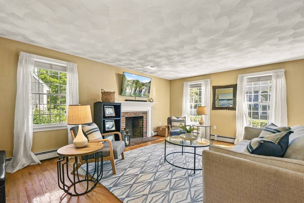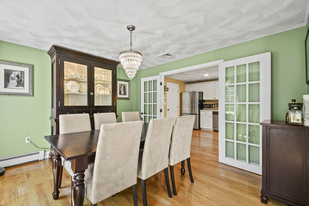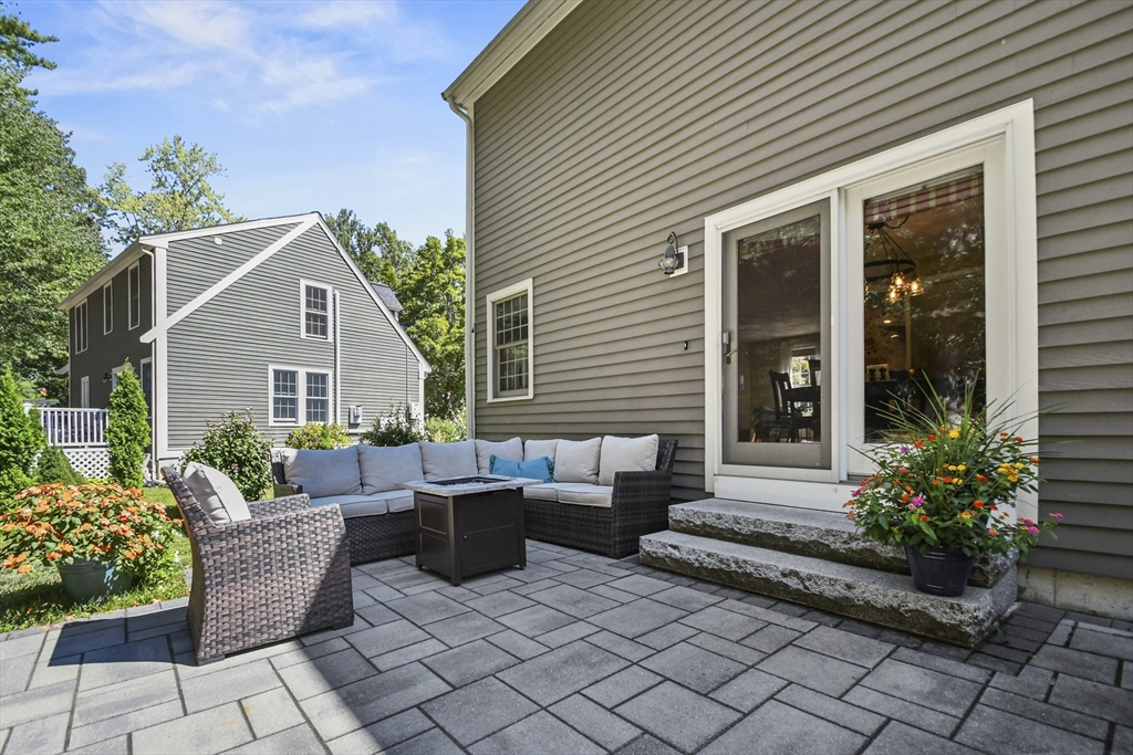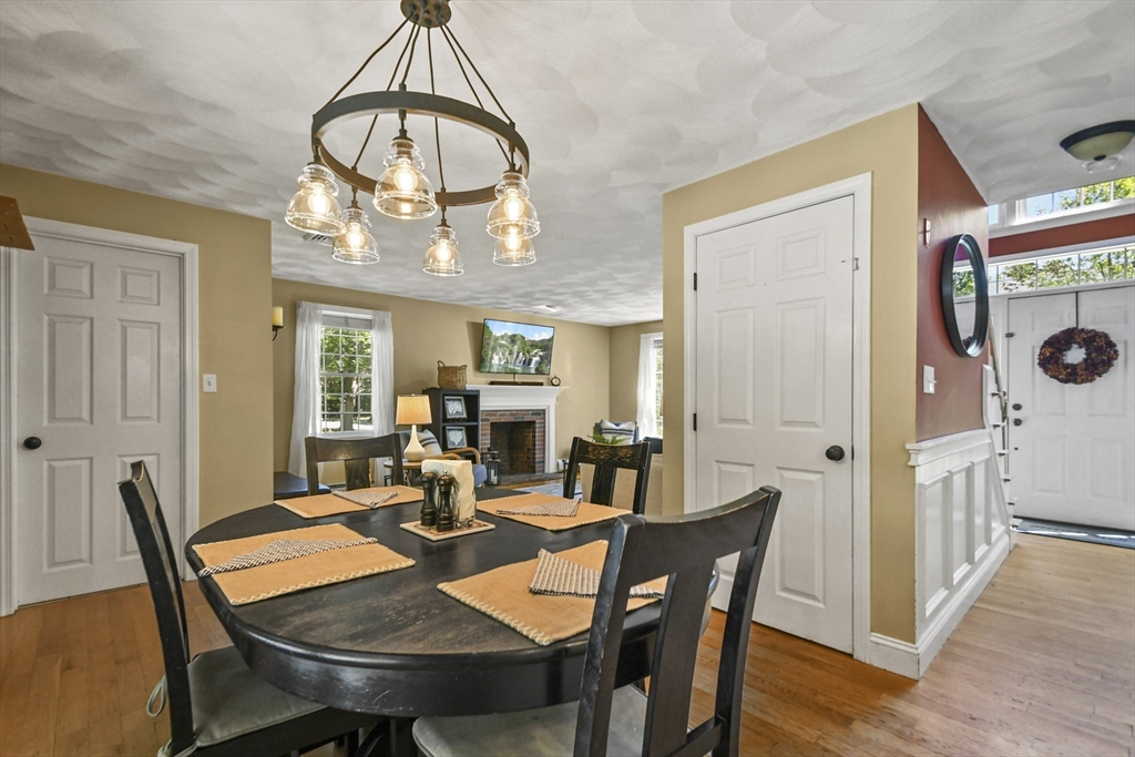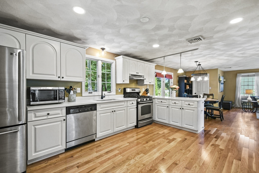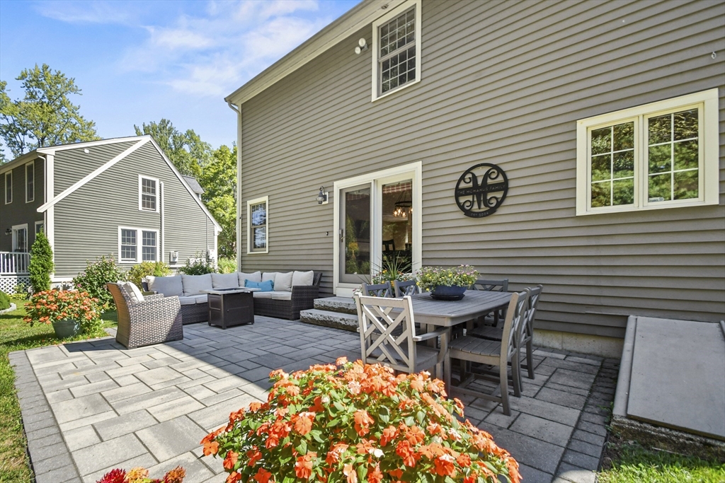 Tucked away on a cul-de-sac, this commuter friendly Amesbury colonial offers a wonderful blend of comfort and style. The fireplaced living room with gleaming hardwoods sets a warm tone, while the updated eat-in kitchen boasts new hardwood floors, stainless steel appliances, white cabinetry, quartz counters, and direct access to the patio. French doors lead to the formal dining room, perfect for gatherings. Upstairs you’ll find three bedrooms, including a main with walk-in closet and a convenient laundry room. The partially finished lower level adds versatility with a spacious family room and an additional bath. Outside, enjoy a private yard with a newer patio ideal for entertaining, plus an attached garage and plenty of off-street parking. Welcome Home!