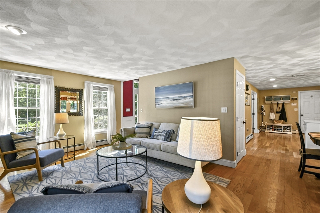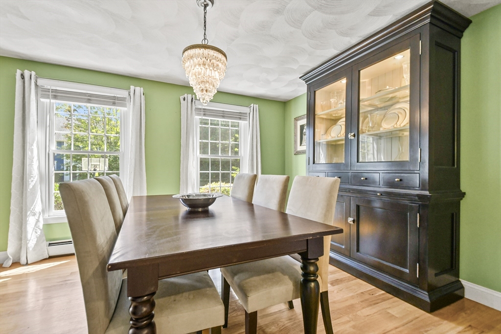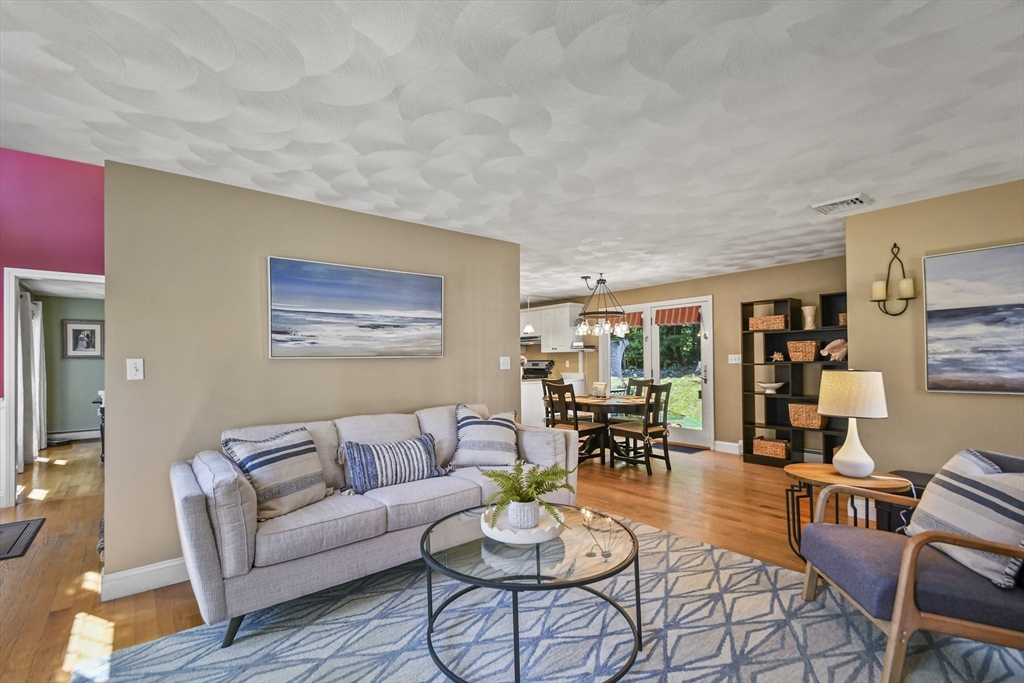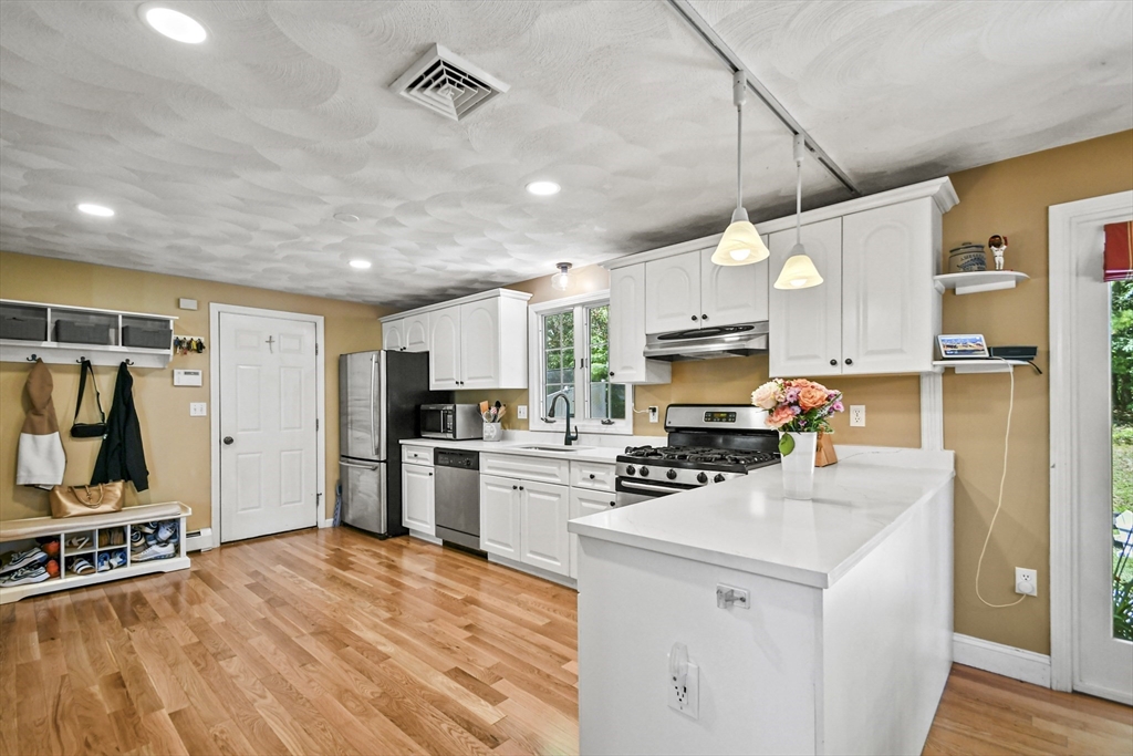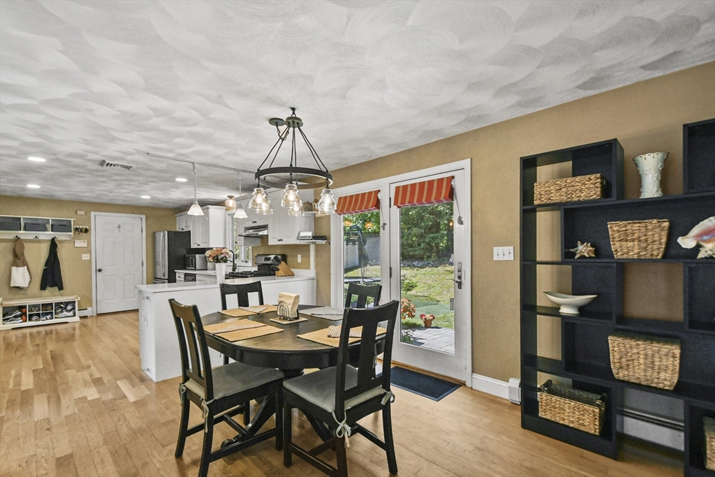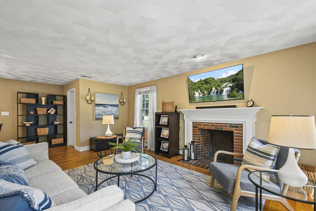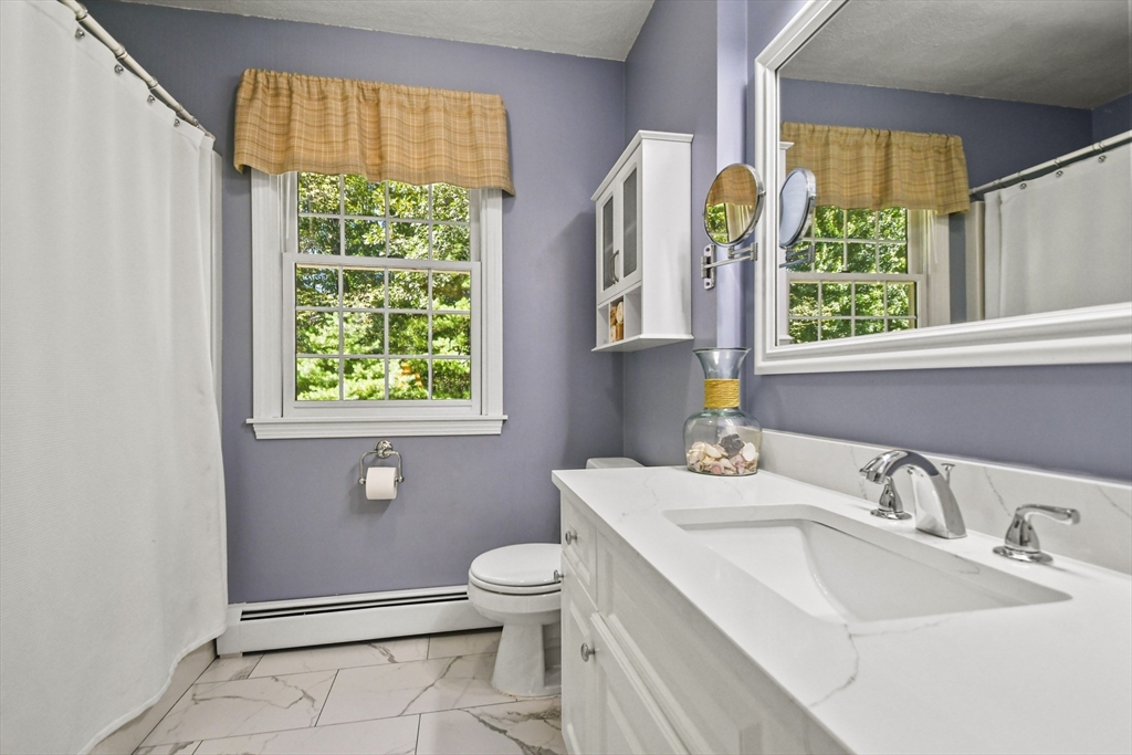 Tucked away on a cul-de-sac, this commuter friendly Amesbury colonial offers a wonderful blend of comfort and style. The fireplaced living room with gleaming hardwoods sets a warm tone, while the updated eat-in kitchen boasts new hardwood floors, stainless steel appliances, white cabinetry, quartz counters, and direct access to the patio. French doors lead to the formal dining room, perfect for gatherings. Upstairs you’ll find three bedrooms, including a main with walk-in closet and a convenient laundry room. The partially finished lower level adds versatility with a spacious family room and an additional bath. Outside, enjoy a private yard with a newer patio ideal for entertaining, plus an attached garage and plenty of off-street parking. Welcome Home!