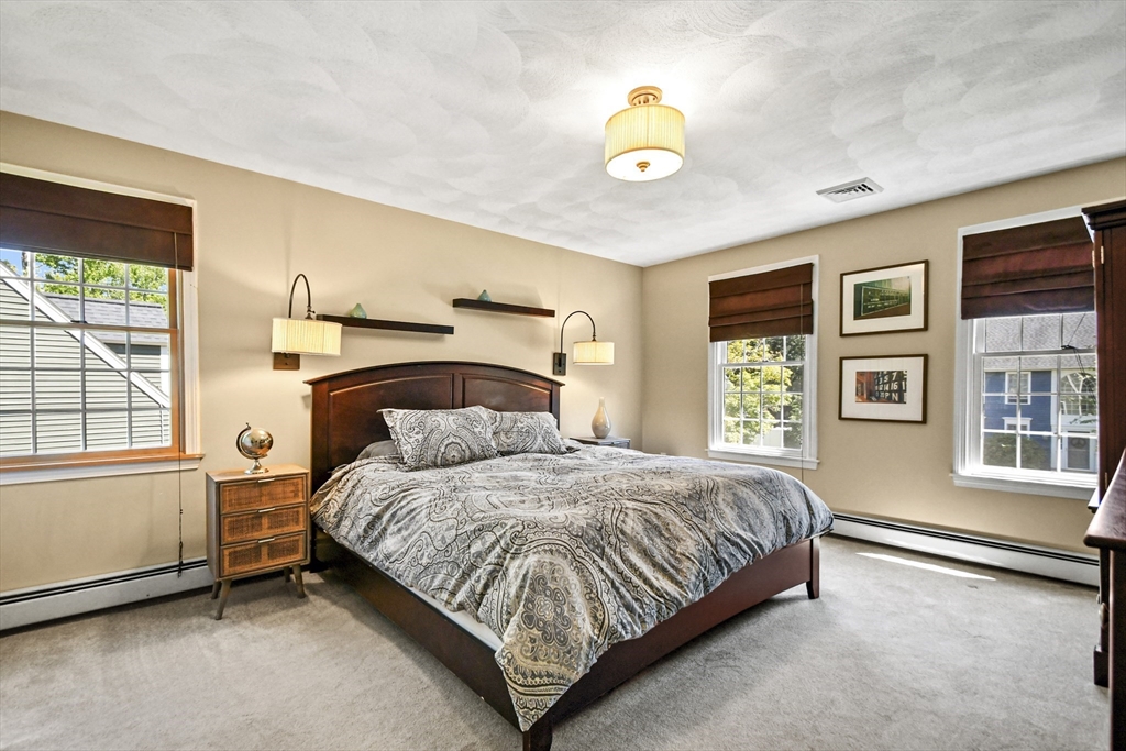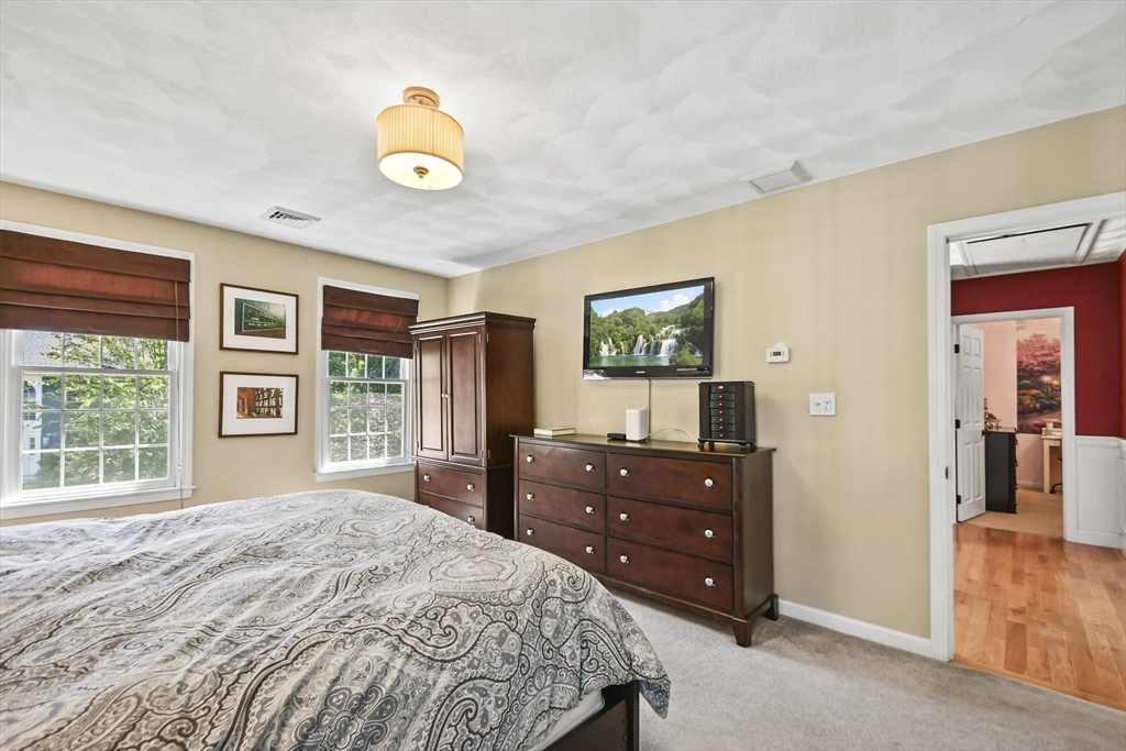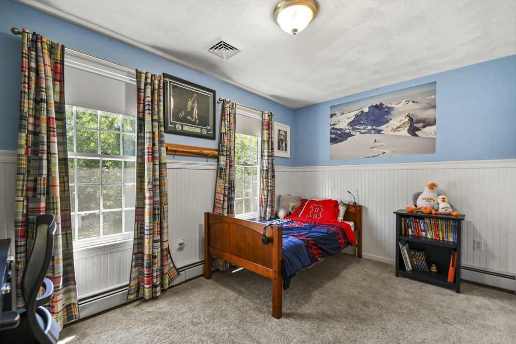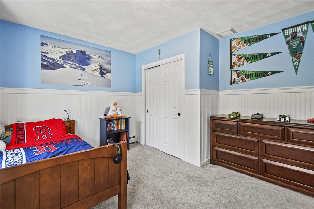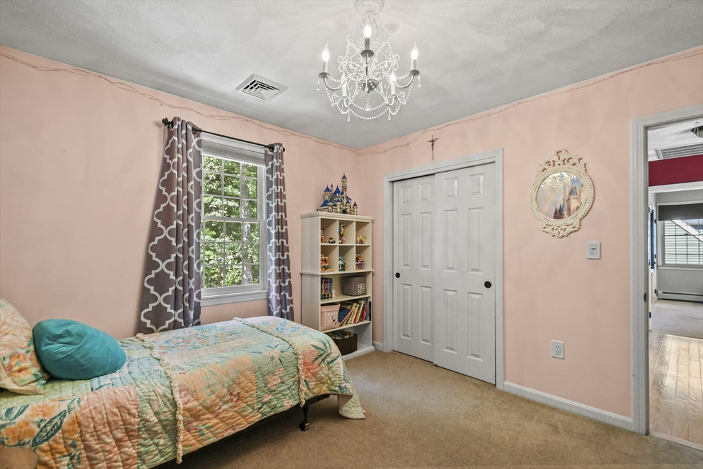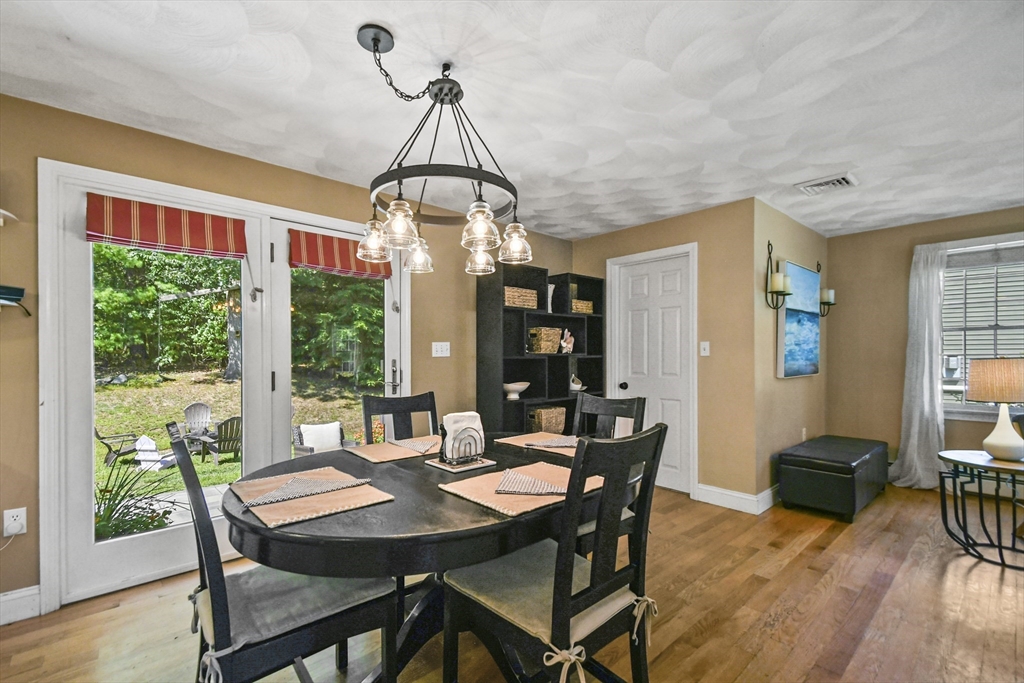Tucked away on a cul-de-sac, this commuter friendly Amesbury colonial offers a wonderful blend of comfort and style. The fireplaced living room with gleaming hardwoods sets a warm tone, while the updated eat-in kitchen boasts new hardwood floors, stainless steel appliances, white cabinetry, quartz counters, and direct access to the patio. French doors lead to the formal dining room, perfect for gatherings. Upstairs you’ll find three bedrooms, including a main with walk-in closet and a convenient laundry room. The partially finished lower level adds versatility with a spacious family room and an additional bath. Outside, enjoy a private yard with a newer patio ideal for entertaining, plus an attached garage and plenty of off-street parking. Welcome Home!