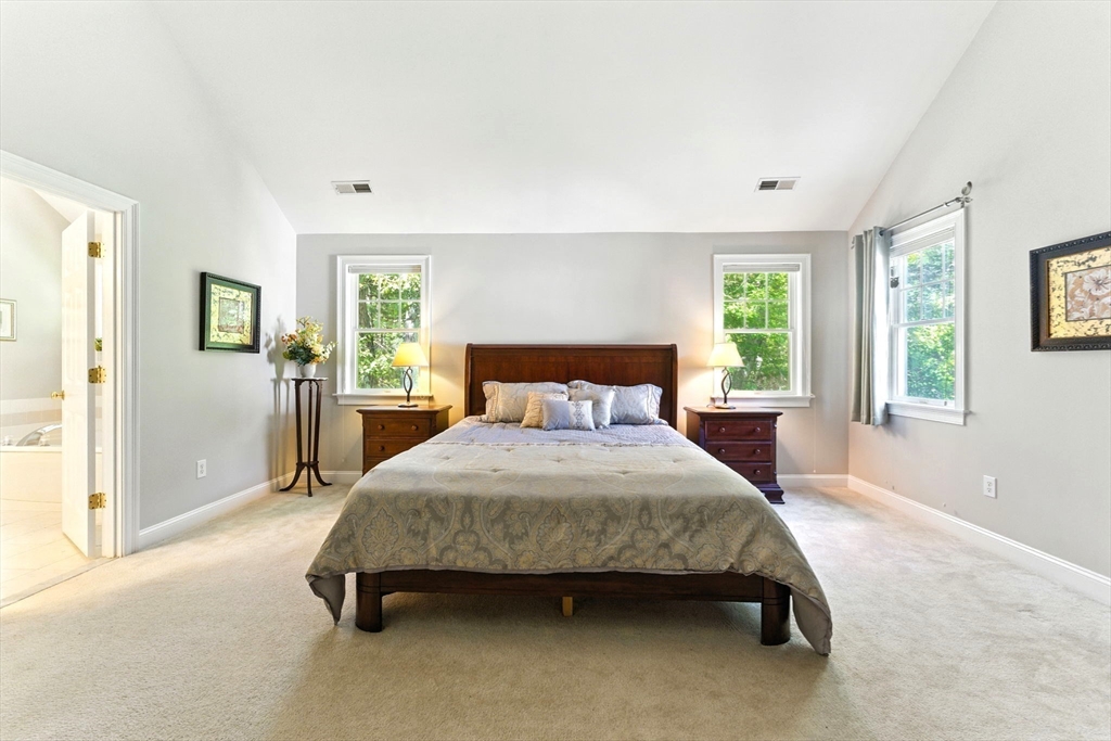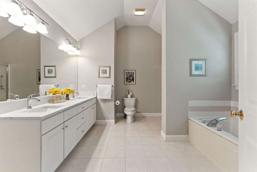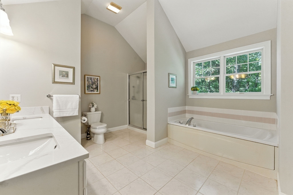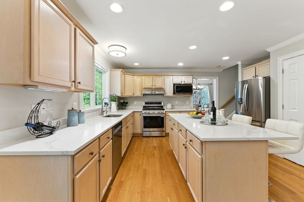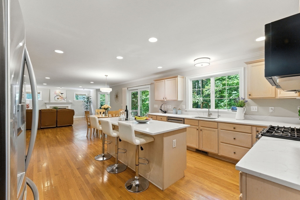 Welcome to 2 Bramble Way in Bellows Farm, Acton’s most sought-after subdivision! This stunning Colonial on a premium lot greets you with a charming farmer’s porch and a dramatic two-story foyer. The main level boasts an open design with gleaming hardwood floors, a chef’s kitchen with brand-new quartz counters, oversized center island, and new stainless appliances, flowing seamlessly into a spacious family room with gas fireplace and a sunlit breakfast area that opens to the back deck overlooking a serene backyard. A formal living and dining room with cathedral ceilings add elegance. Upstairs, the cathedral-ceiling master suite offers a walk-in closet and an updated quartz bath, plus three additional spacious bedrooms. The finished 1,000+ sq ft lower level provides versatile space for media, games, and recreation. Freshly painted throughout! Enjoy resort-style amenities including a heated pool, tennis courts, clubhouse, and trails, plus Acton’s award-winning schools. Welcome home!!!