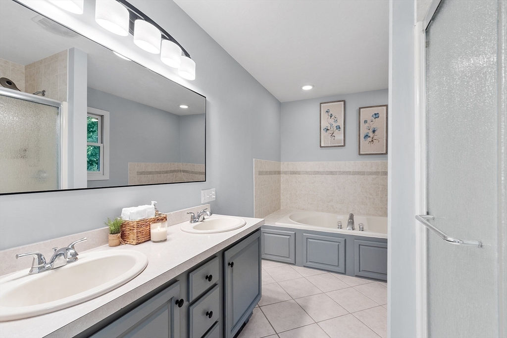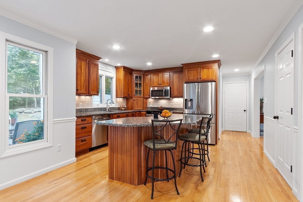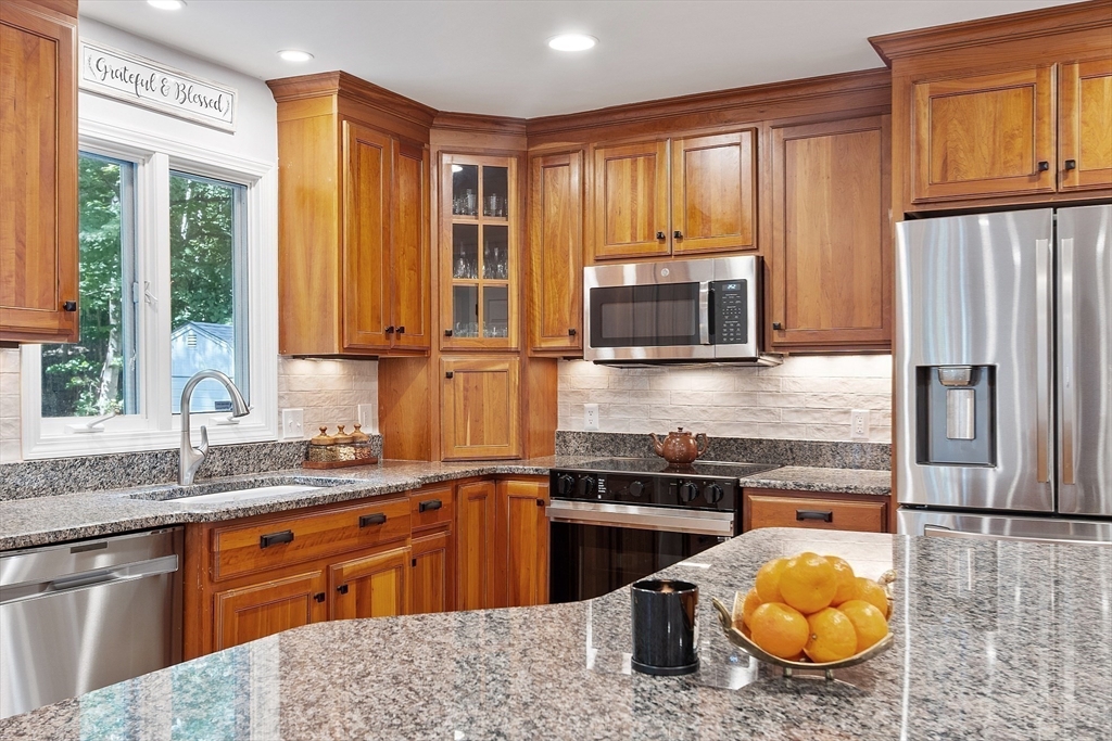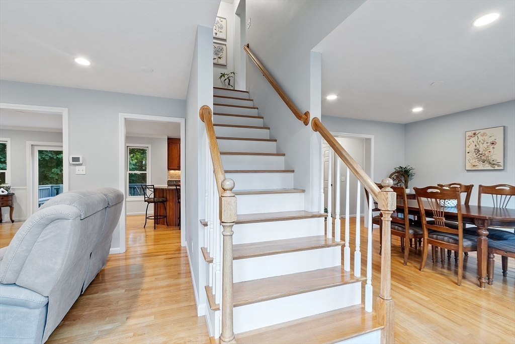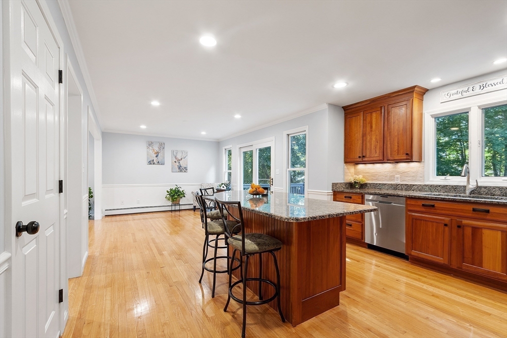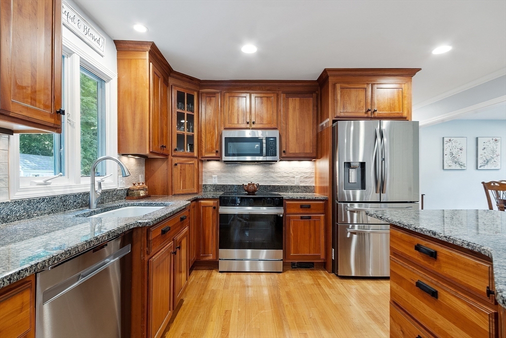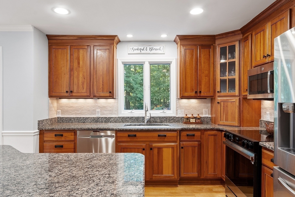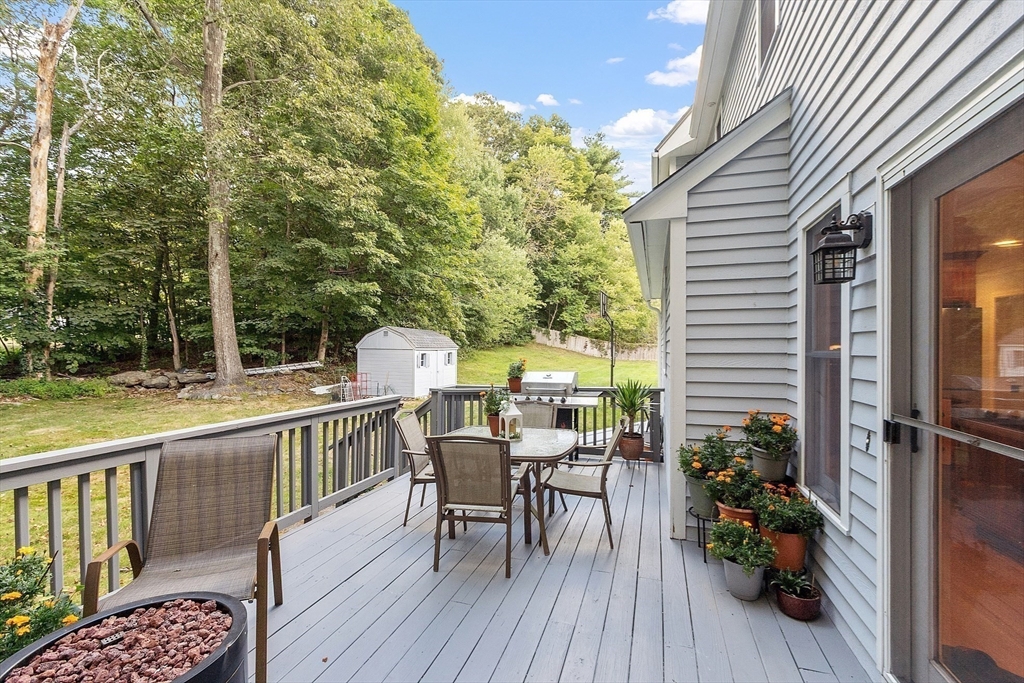 Beautiful colonial in a very popular Stoney Hill neighborhood, a fabulous opportunity to grab. Well maintained~open floor plan~with inviting living room~formal dinning~spacious family room/breakfast area~Kitchen with sparkling granite countertop & backsplash~oversized center Island~custom kitchen cabinets~pantry~hardwood floor throughout~freshly painted tasteful neutral color tones~dinning area overlooking enormous deck, leveled backyard, shed & private woods. Oversized 2 door garage has plenty of additional storage. A dream come true master suite with skylight, vaulted ceiling, sitting area. Spa like MasterBath with double vanity & Jacuzzi~spacious master closet has custom cabinets. Second floor is finished with 3 more generously spacious bedrooms, full bath, including 2 additional linen closets. Finished basement with rec room, storage cabinet & gym area. Location w/sidewalk & pond w/walking path~Minutes to Grafton MBTA commuter station~Easy access to Route 9, 20 shops & restaurants
