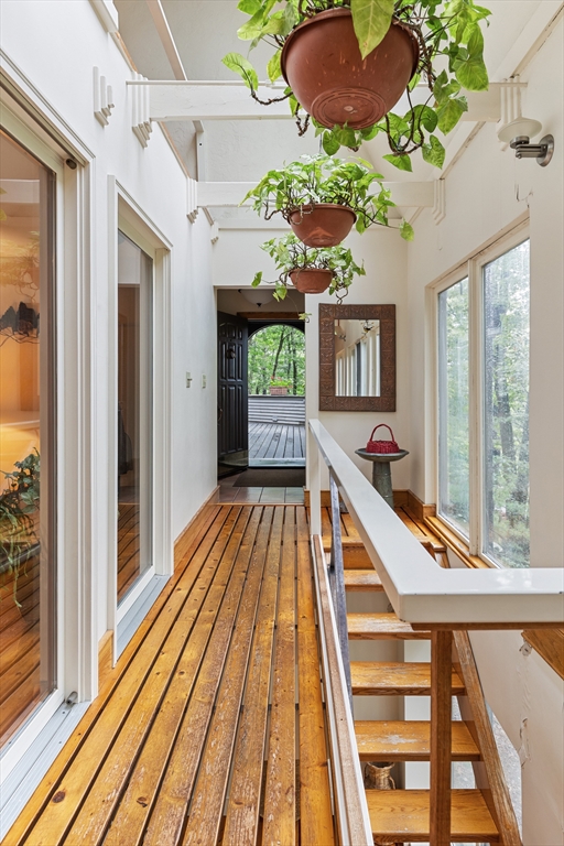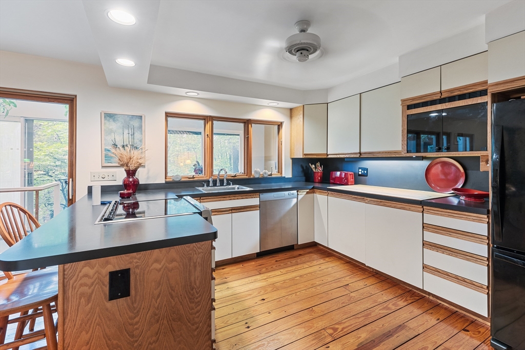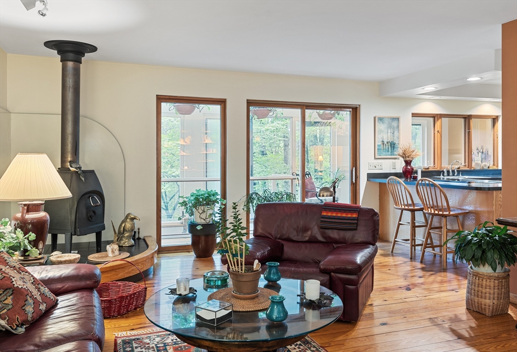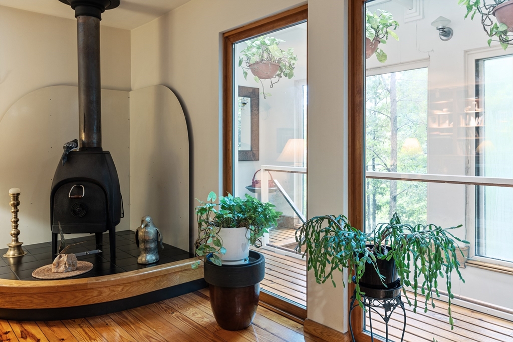 Discover an energy-efficient three-story custom home on 1.55 acres of woodland retreat. This envelope-style home uses a double-wall design creating an insulated airspace, reducing heat loss in winter and heat gain in summer for consistent indoor comfort and lower energy costs. Large custom windows fill the open-concept living area with natural light highlighting a cozy wood stove. The kitchen features custom built-ins, pantry, dining area, and generous storage. Lower-level master suite offers his & hers sinks, soaking tub, separate shower, and in-suite laundry. Upper level provides additional bedroom, family room, office, and full bath. Dedicated custom home office is perfect for remote work. Exterior includes built-in outdoor storage, garage, nearby trails and conservation. 3-bedroom septic allows future expansion. Mini splits in a few rooms. Ideally located near Upton Center, I-495 & Mass Pike—schedule a showing today!
