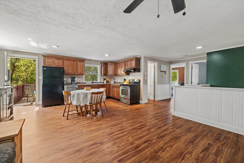Tucked away as the last house on a quiet dead-end street, this split-level home offers exceptional privacy, a spacious yard and OWNED solar panels giving you big savings year after year. Inside, you’ll find 2 bedrooms on the main level and 2 more on the lower level, providing flexibility for family, guests or a home office. The entire home has brand-new flooring throughout, fresh paint and an updated kitchen with new appliances that opens to the dining area and living room for easy entertaining. Just off the kitchen, a large deck overlooks the peaceful yard, perfect for summer gatherings. The bathroom has been tastefully updated, the roof is newer, and a large storage shed offers plenty of extra space. Completely move-in ready, this home combines comfort, efficiency, and style. All of this is tucked into a private setting at the end of the street while still being just minutes from local amenities and convenient highway access. This completely move-in ready gem won't last long!