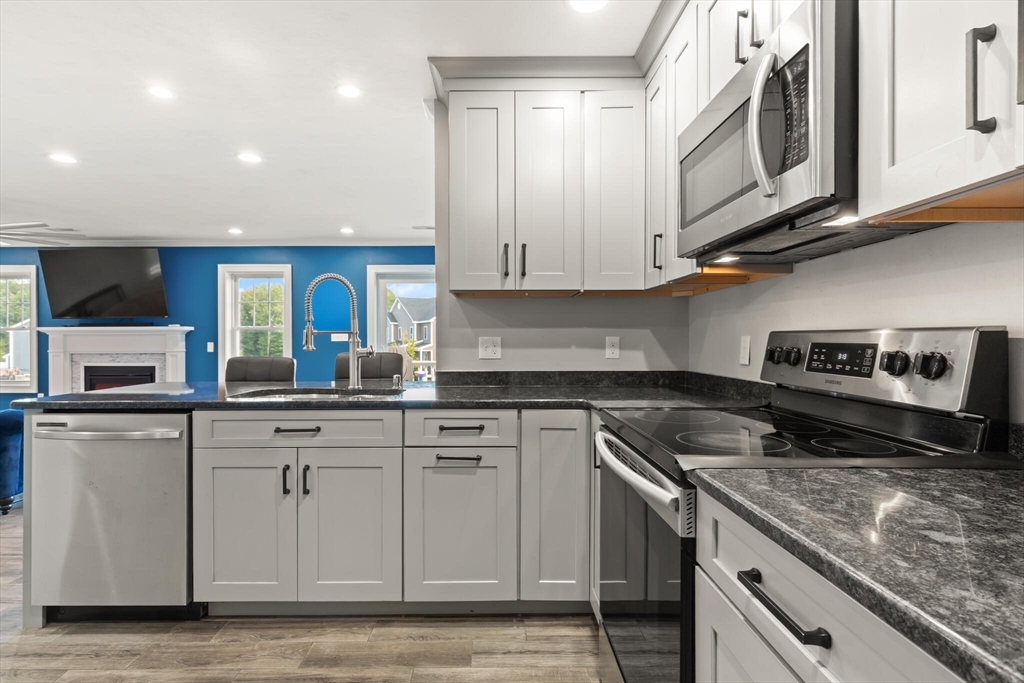 This move in ready townhouse offers an exceptional living experience. The 1st floor, true open concept, promises a contemporary lifestyle with all the conveniences one could desire like SS appliances, gas fireplace, slider to deck, large pantry,1/2 bath and access from 2 car garage. The heart of this condominium lies in its thoughtful design, featuring Primary Bedroom with full bath, walk in shower and walk in closet. 2 additional bedrooms, laundry hookups and full bath on second floor. Be surprised and overwhelmed with the outstanding custom family room basement with walk out to grassy yard, sound system built in, 1/2 bath, plenty of storage closets and laundry room. It is a must see to be truly appreciated. Lakeville is known for the Cranberry Bogs, golfing, hiking, bird watching, occasional Bald Eagle sitings. Fishing, kayaking and canoeing on Lake Assawonpset Pond.