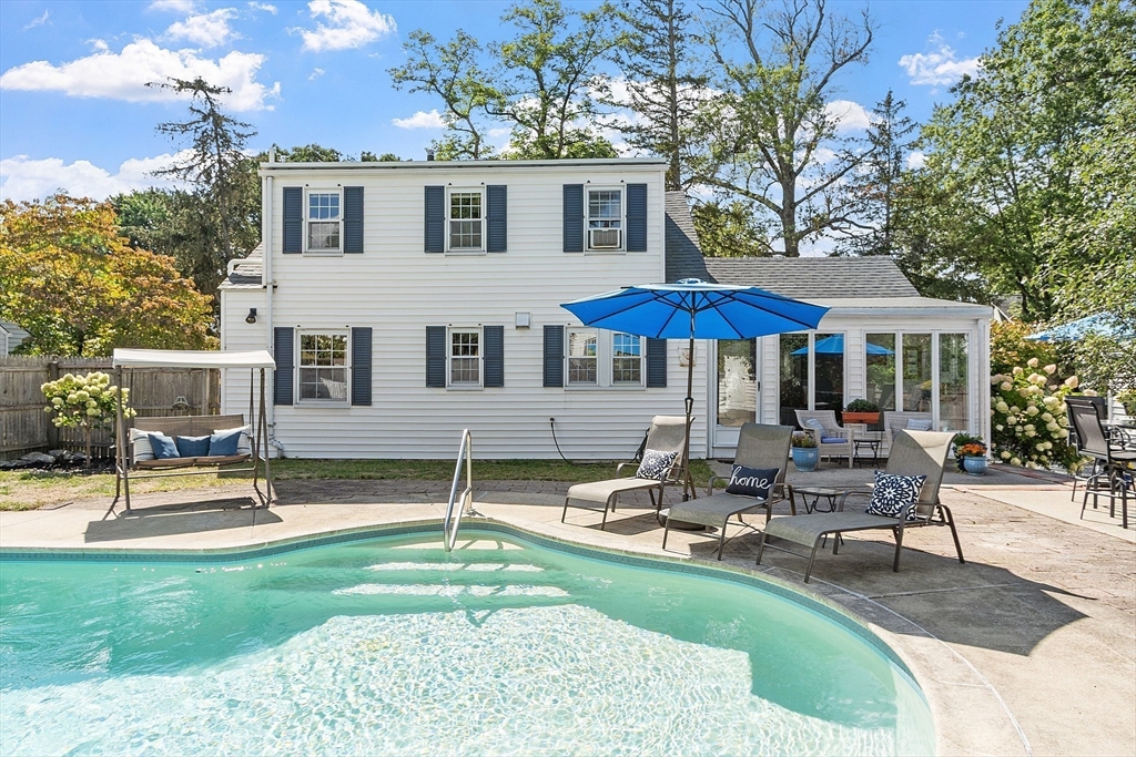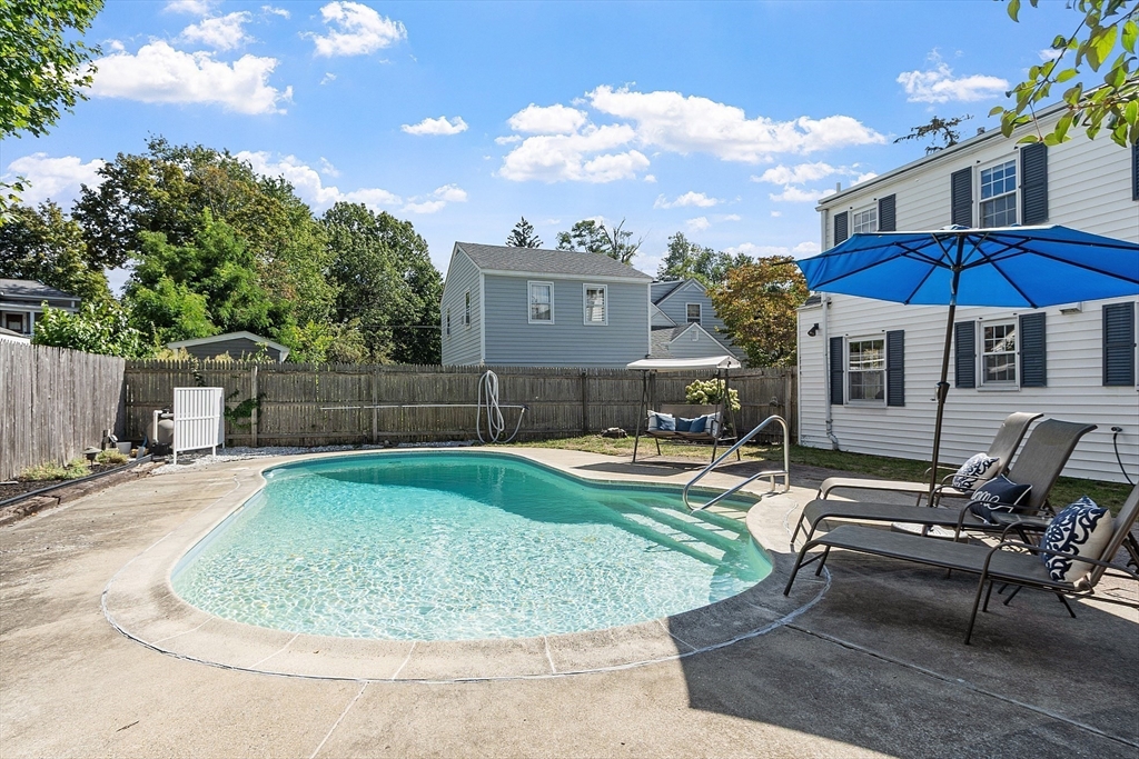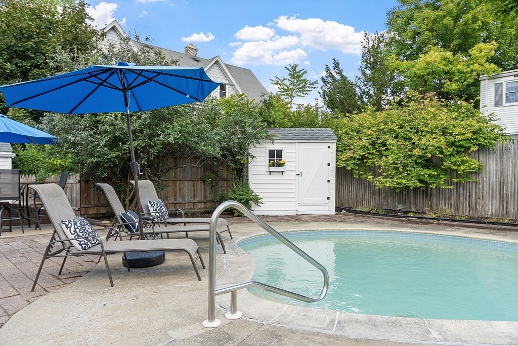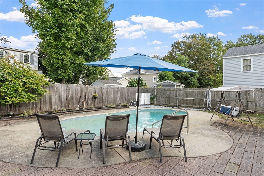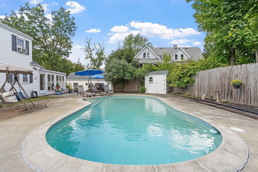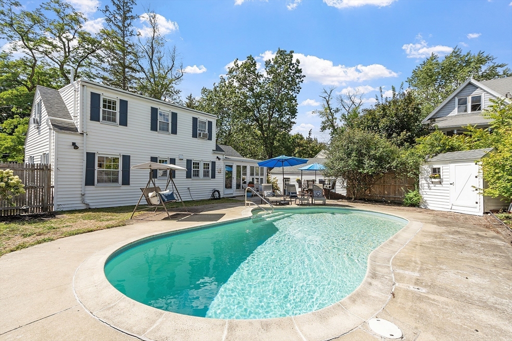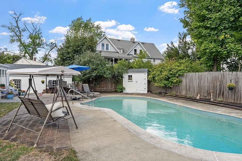 Charm, versatility, & endless summer fun await you in this delightful Cape that is anything but cookie cutter! Swoon over arches, bask in the sunlight pouring in through every window, filling each room with warmth & energy. Begin your mornings with coffee by French doors that overlook a private backyard oasis, complete with sparkling in-ground pool, large patio, & plenty of seating - perfect for relaxing or entertaining. The spacious front-to-back kitchen has been tastefully updated to inspire every cook, offering ample room for gatherings. Upstairs, two large dormered bedrooms & a full bath create a restful retreat. Keep your car protected through the blustery winter in your one car garage, while the cozy living room fireplace makes chilly evenings a joy from inside. Blending style, function, and lifestyle, this home is ready to be the backdrop of your best memories - just minutes from shopping, dining, commuter routes, and local parks. Showings begin at the Open House Saturday.