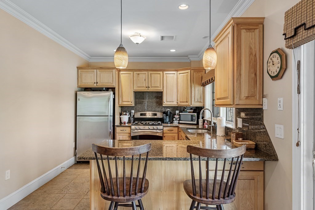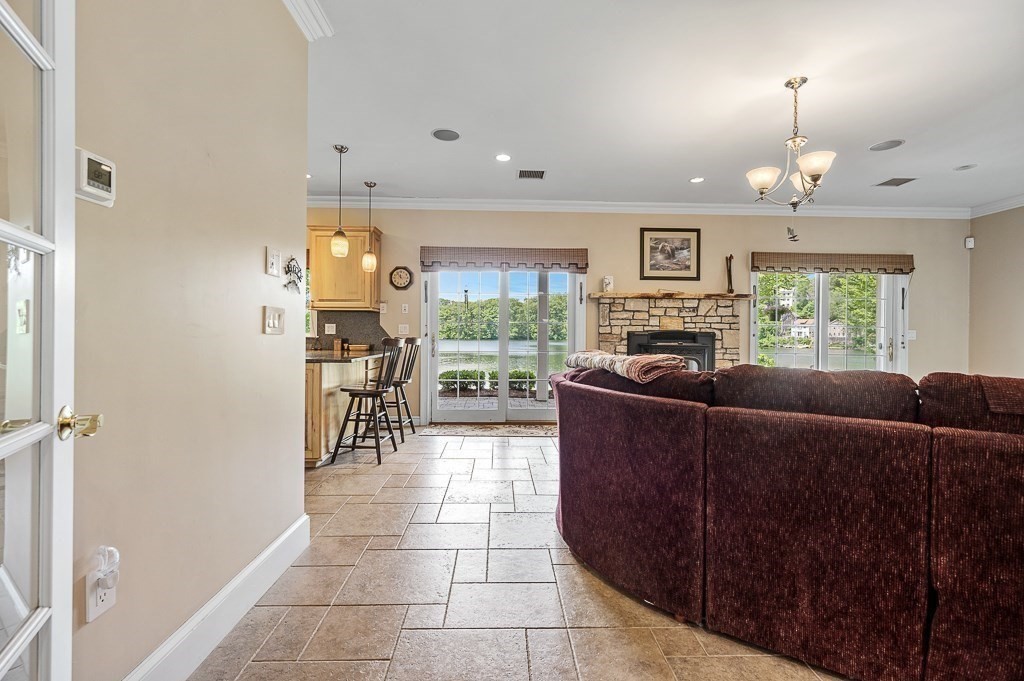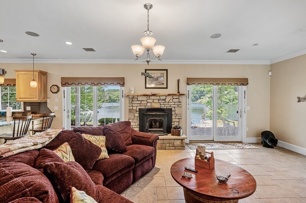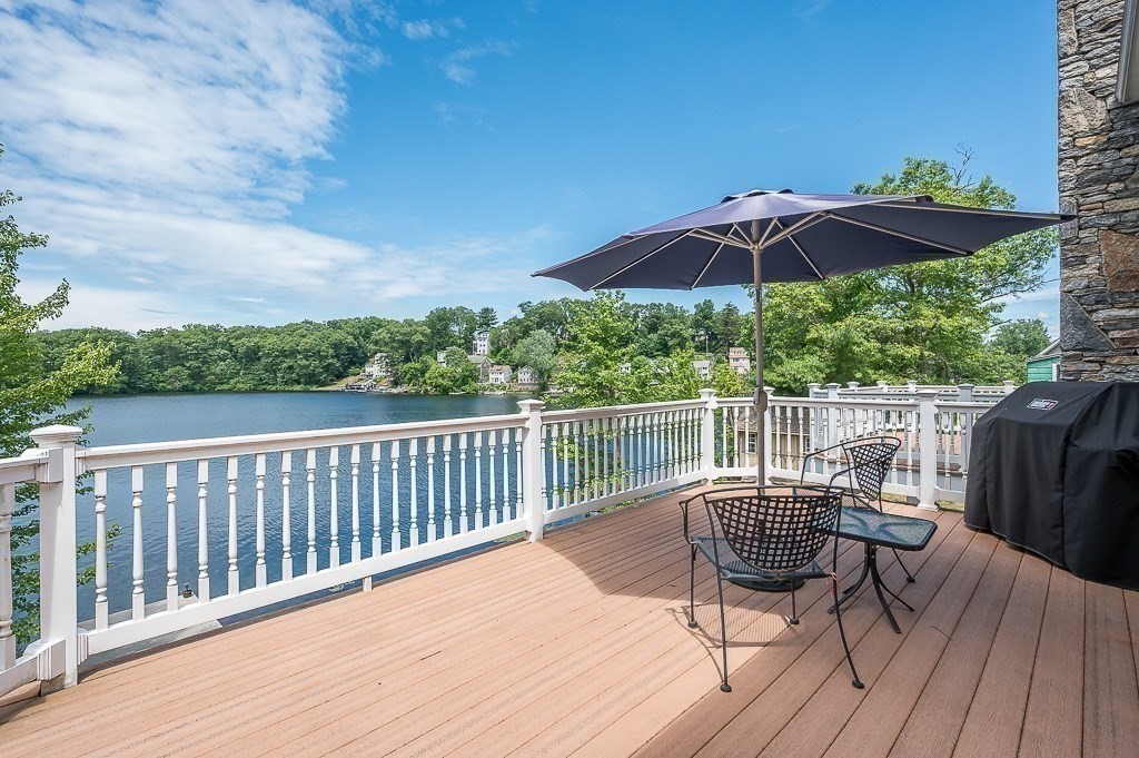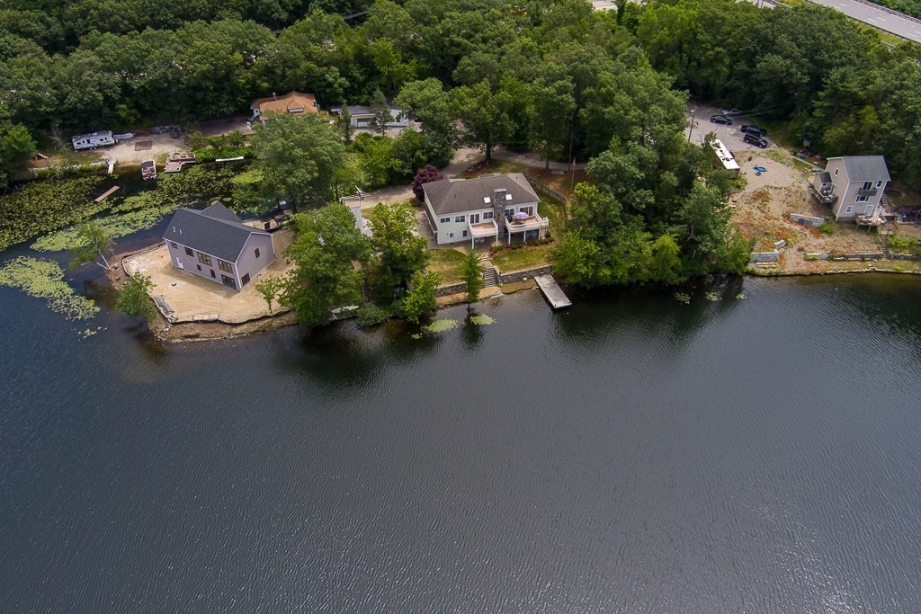 Stunning waterfront custom home on Lake Quinsigamond w/ gorgeous rock walls. Enjoy expansive views from several sprawling decks & the many windows facing the water. 3-car garage. Outdoor shed. Thoughtfully designed w/ 2 kitchens, bedrooms, & full bathrooms, both levels. The main level boasts a large master bedroom, bathroom suite, attached office, and a walkout deck. The large kitchen, opens to a dining area with continued views and a walkout deck. Custom built cabinets w/ high quality features, Tiffany lights, crown molding. Brand new washing machine, heating and AC units. The lower level is an invitation to a large mud room. Entertain w/ kitchen attached to the living area, and another walkout to the covered patio that faces the water. With a beautiful backyard, and private water access, includes a stationary dock. Imagine kids swimming in the summer, having a boat right in your backyard, fishing off of the dock, this elegant estate epitomizes Lake Life! Seller related to agent.