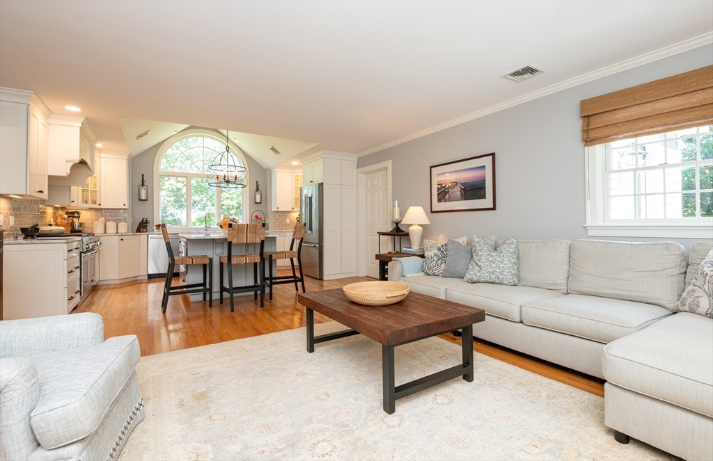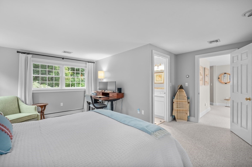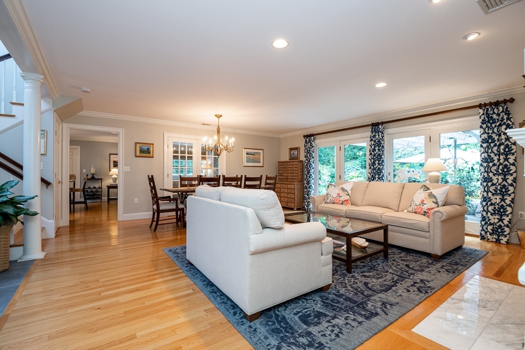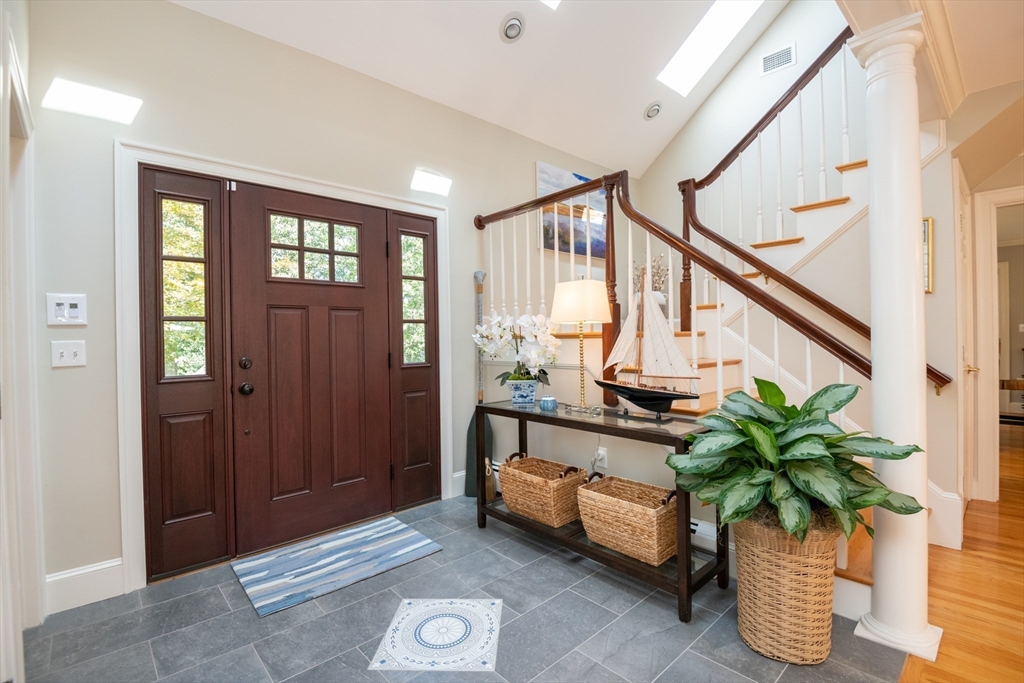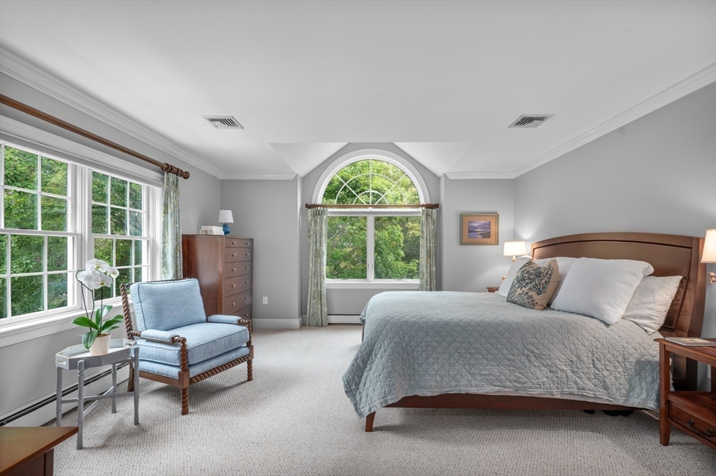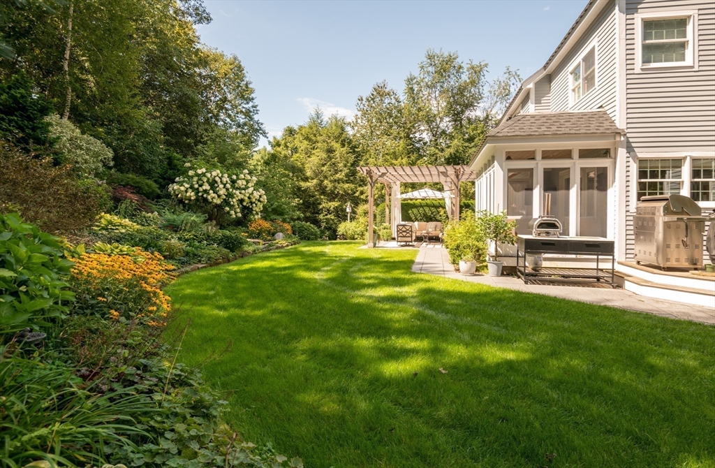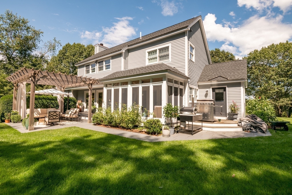 This custom-built Cape showcases meticulously landscaped gardens, dual primary suites, and extensive updates throughout. A beautifully tiled foyer opens to a sunny living room featuring hardwood flooring, built-in bookcases, and a marble-surround gas fireplace. The chef’s kitchen is outfitted with marble countertops, a large island, custom cabinets, double ovens, 6-burner Thermador stove. Even the laundry room is beautifully updated with large granite sink and a substantial pantry for additional storage. The 3-season sunroom provides panoramic views of the grounds sprinkled with night lighting, complemented by a pergola-covered patio. The 1st-floor primary suite includes dual walk-in closets and elegant bathroom with a soaking tub. Upstairs, discover another primary suite plus 2 additional bedrooms. Additional amenities include a finished basement with 1/2-bath, a heated 3-car garage, sprinkler system, EV charging outlet. Move right in and enjoy everything Ipswich has to offer.