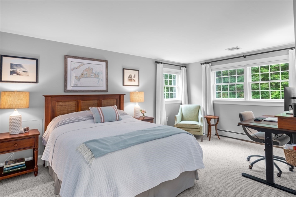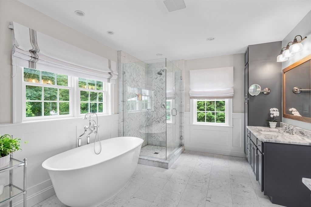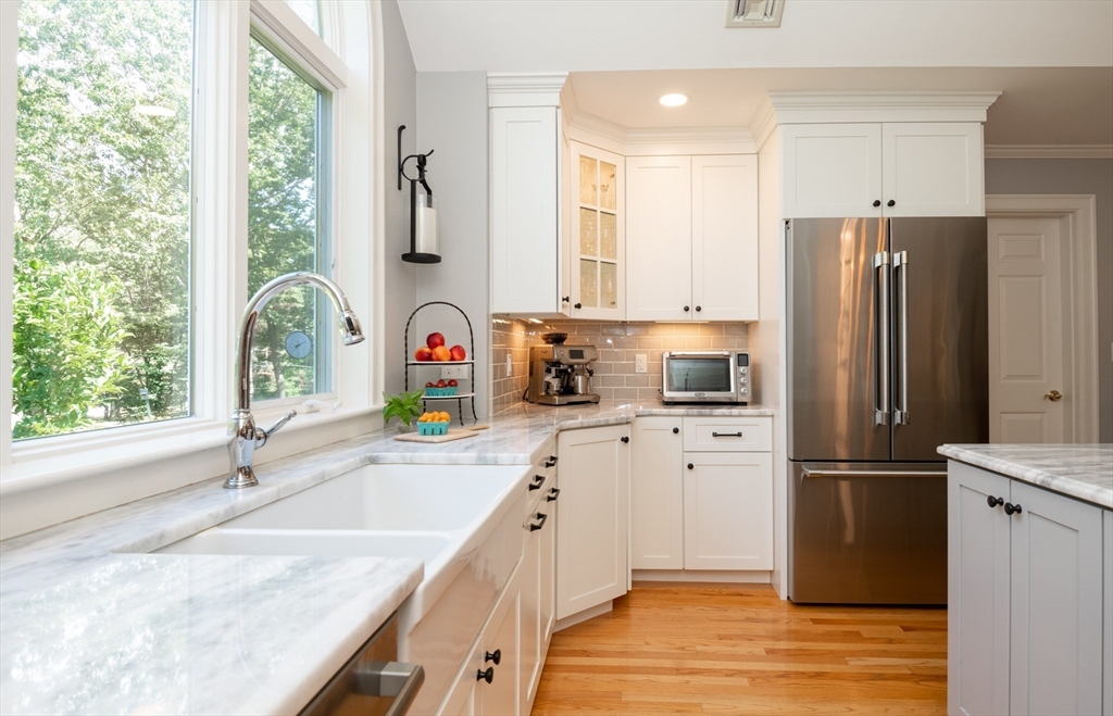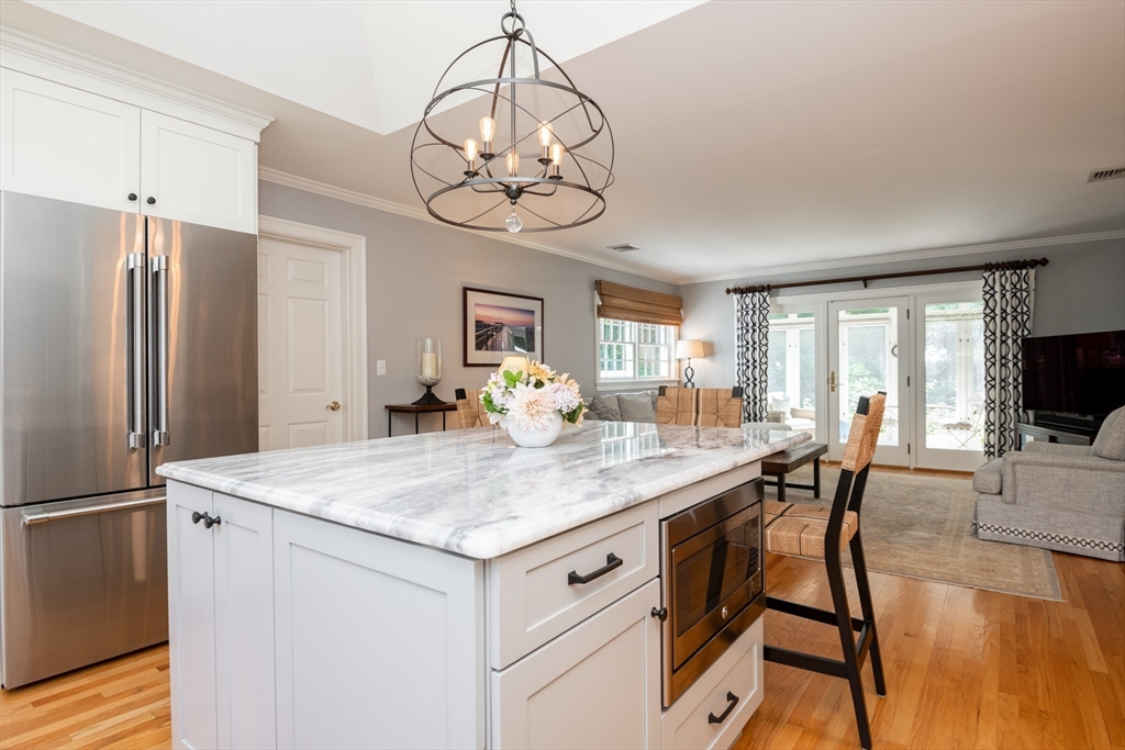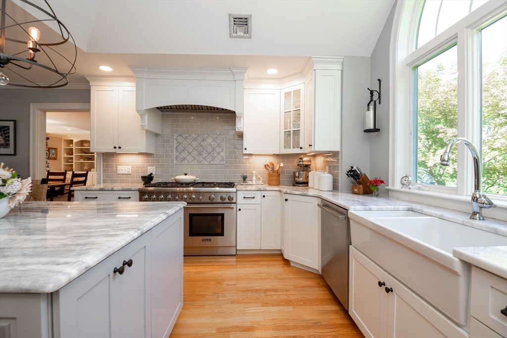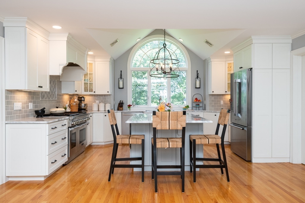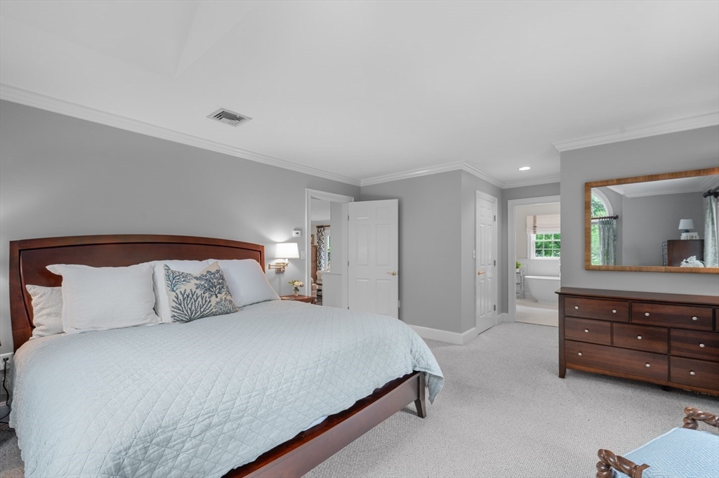 This custom-built Cape showcases meticulously landscaped gardens, dual primary suites, and extensive updates throughout. A beautifully tiled foyer opens to a sunny living room featuring hardwood flooring, built-in bookcases, and a marble-surround gas fireplace. The chef’s kitchen is outfitted with marble countertops, a large island, custom cabinets, double ovens, 6-burner Thermador stove. Even the laundry room is beautifully updated with large granite sink and a substantial pantry for additional storage. The 3-season sunroom provides panoramic views of the grounds sprinkled with night lighting, complemented by a pergola-covered patio. The 1st-floor primary suite includes dual walk-in closets and elegant bathroom with a soaking tub. Upstairs, discover another primary suite plus 2 additional bedrooms. Additional amenities include a finished basement with 1/2-bath, a heated 3-car garage, sprinkler system, EV charging outlet. Move right in and enjoy everything Ipswich has to offer.