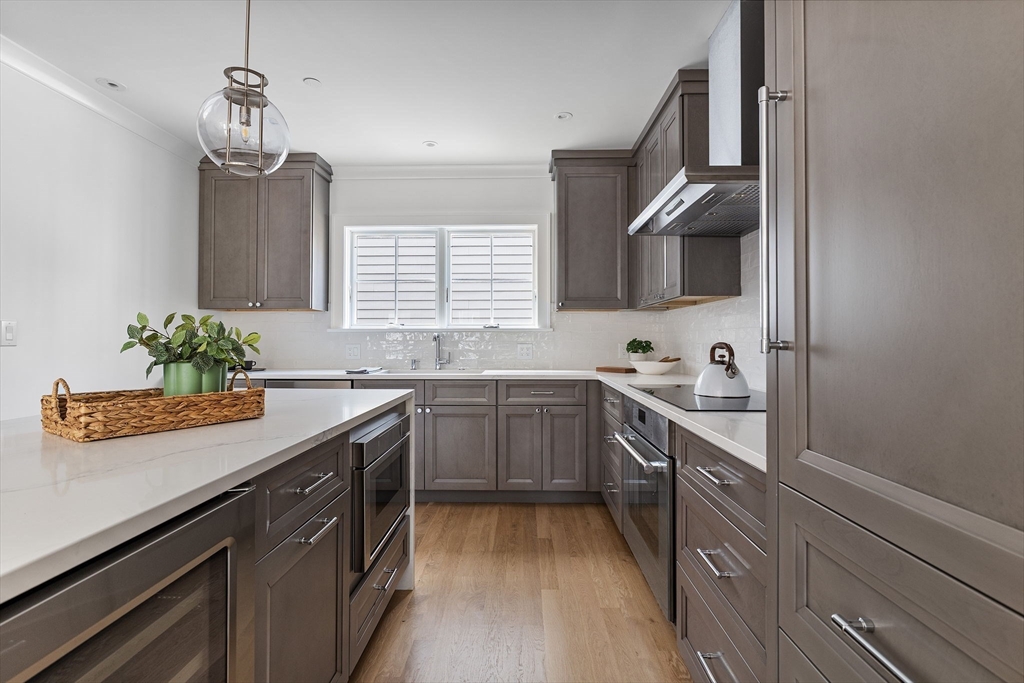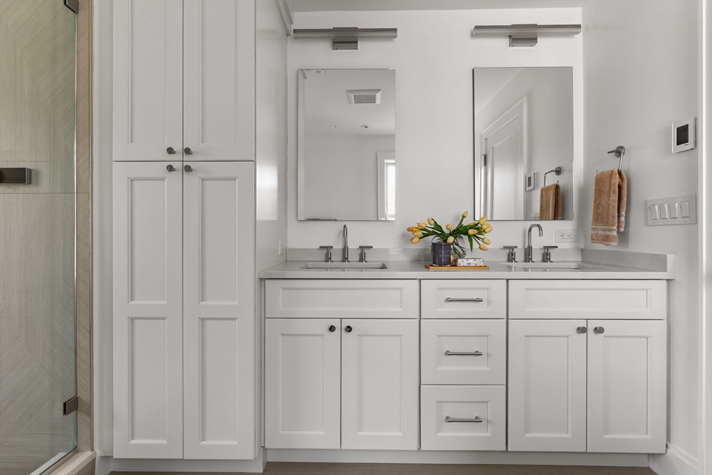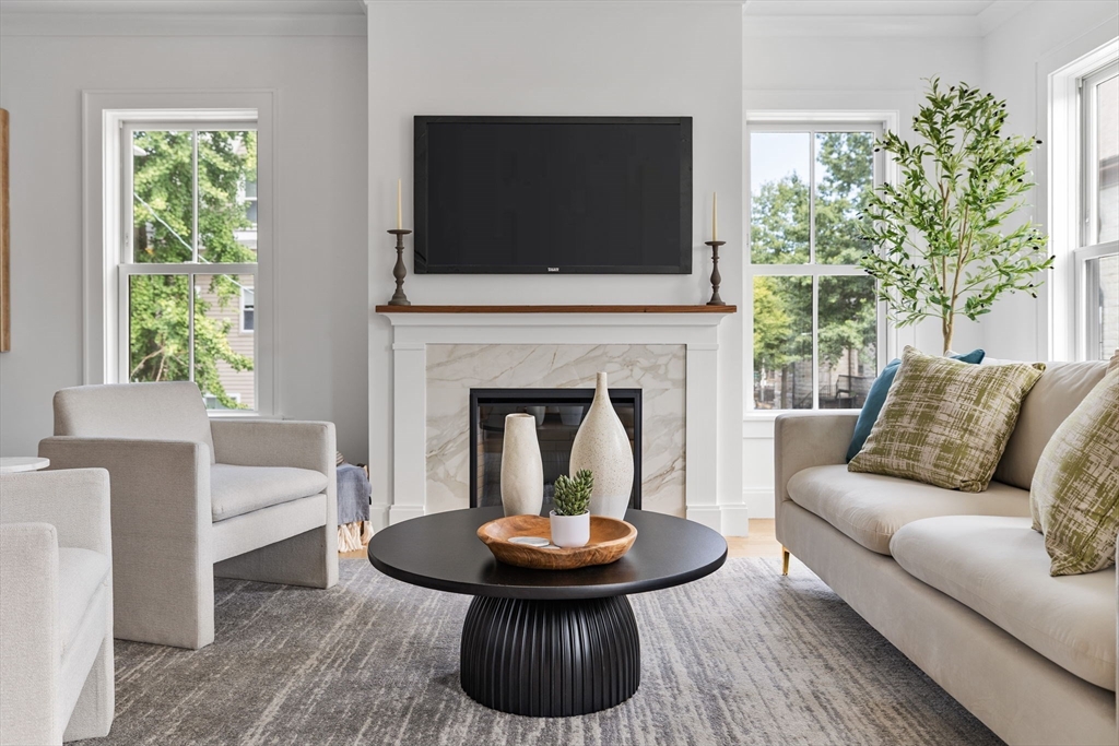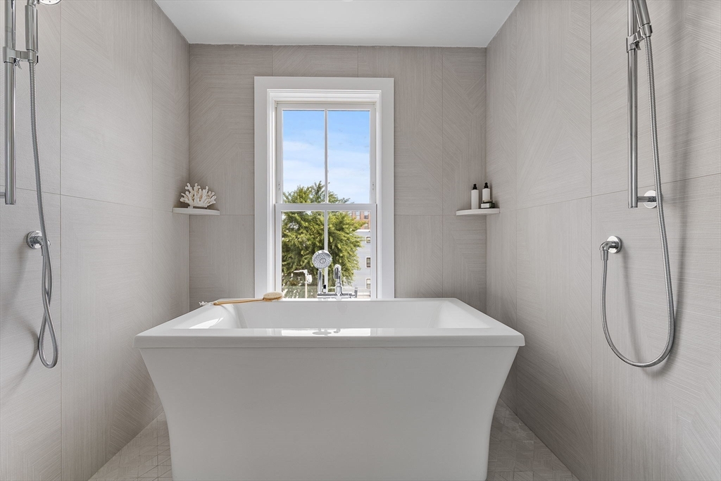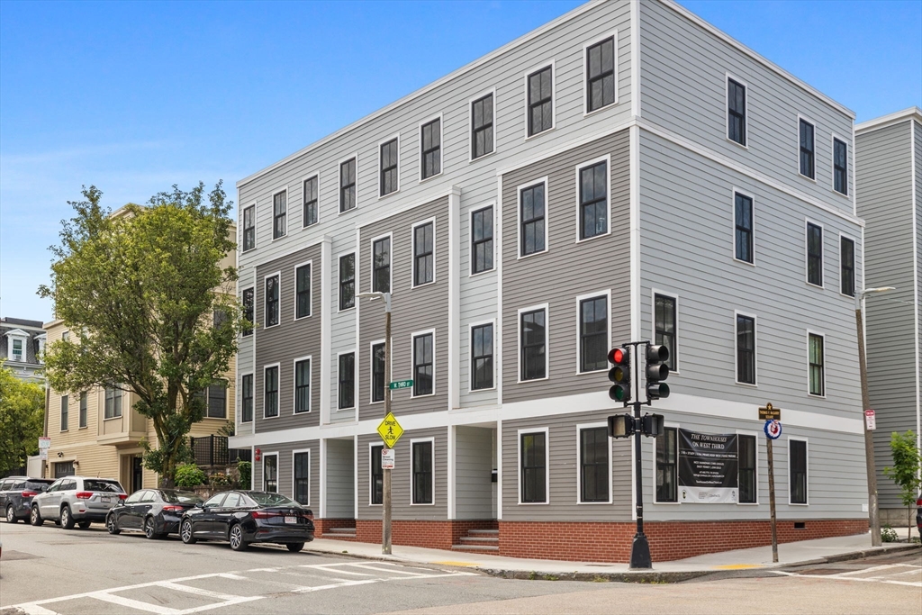 Welcome to 251 W Third St, a newly built corner townhouse on South Boston’s coveted West Side, moments from the Seaport, South End, dining, and parks. With over 2,000 sq ft, this corner end-unit is bathed in natural light from 30 windows and lives like a single-family home, offering 3 bed + a study/4th bed, 3.5 baths, and a private garage with additional exterior tandem parking. Built by a renowned Back Bay/South End builder, the residence offers timeless design with a functional plan. A spacious living/dining area is equipped with a fireplace and opens to a sleek kitchen with grey wood grain cabinetry, Thermador appliances, a large pantry, and a center island. A full-floor primary suite impresses with a spa-like bath including a dual-shower wet room and soaking tub, plus an adjacent study/nursery. Upstairs, find two additional bedrooms with en-suite baths, laundry, and stairs leading to an expansive corner roof deck with panoramic city and Seaport views. Complete and ready to move in!