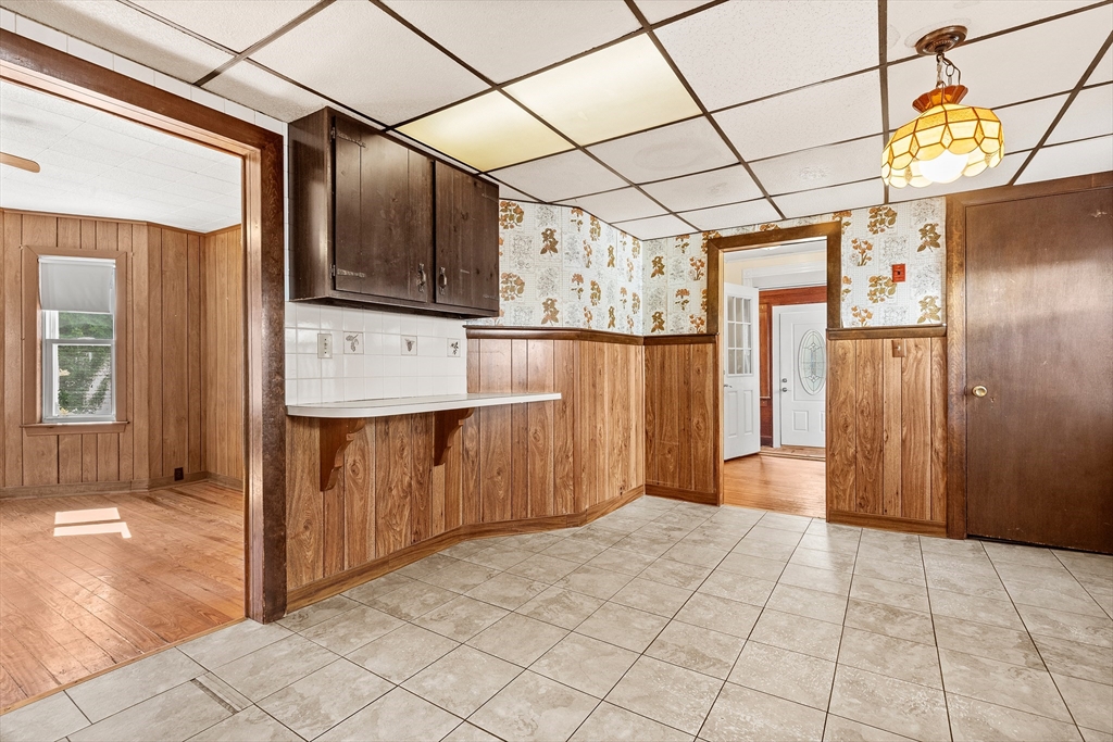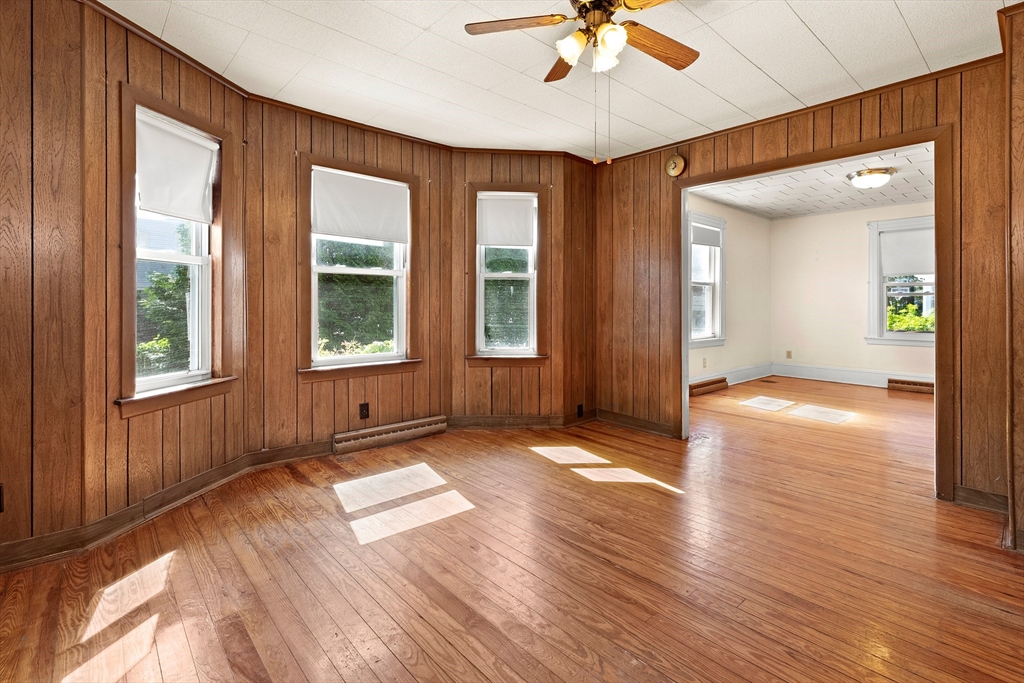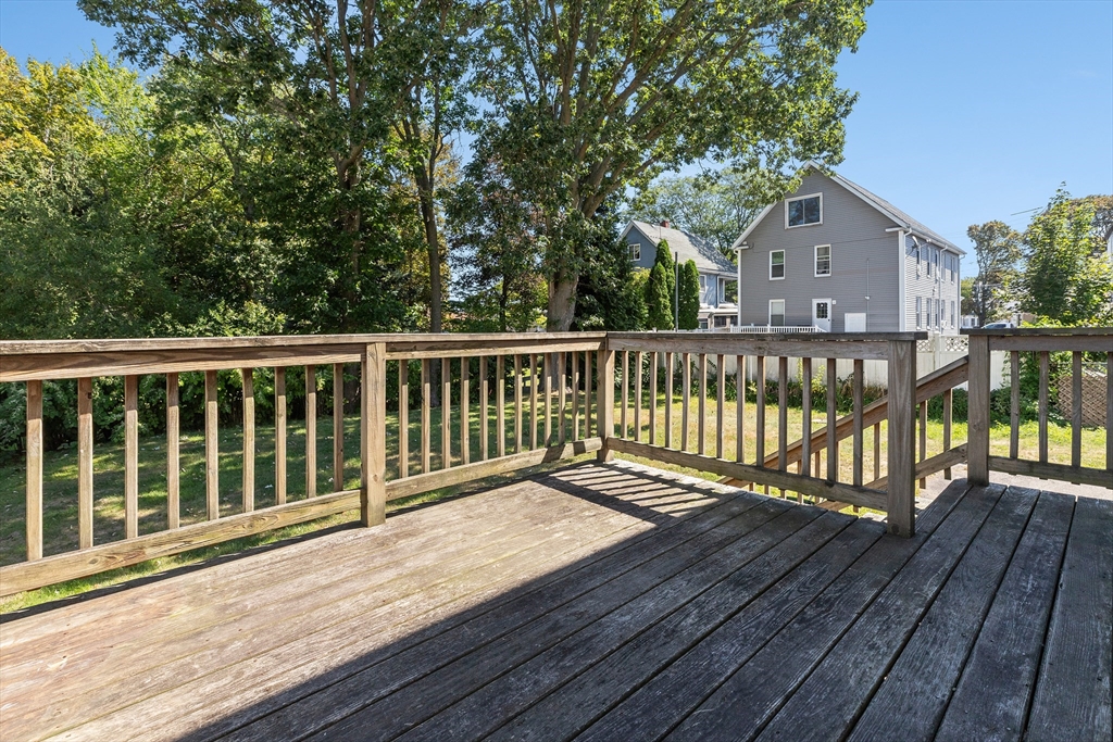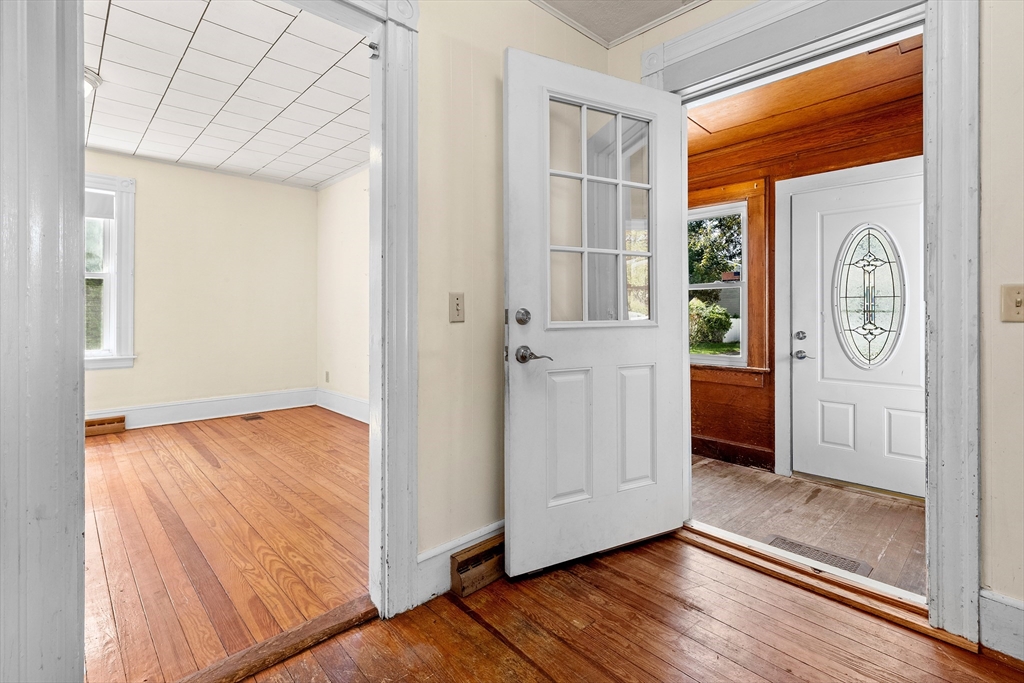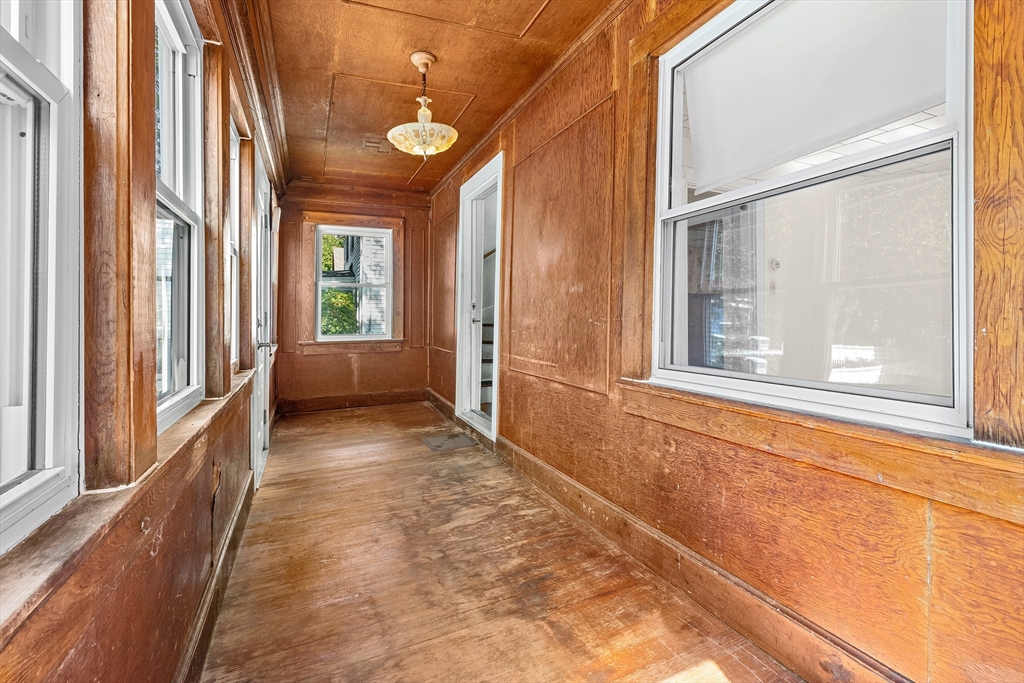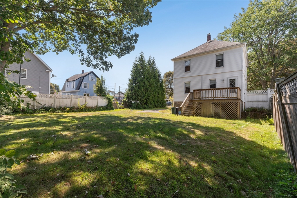 Here is your opportunity to create your dream home! Conveniently located South Peabody colonial offers vintage charm with high ceilings, hardwood floors and spacious rooms. Classic enclosed front porch leads to the welcoming foyer. The large living and dining spaces are open layout while the eat-in kitchen offers plenty of space for your renovations. Upstairs you'll find three good sized bedrooms and the full bath. Updates include replacement windows and vinyl siding. Natural gas cooking, hot water and dryer, and oil heat. The mostly fenced yard gives great potential for a patio or expanded deck. Just off Lynn St with easy accessibility to route 128/95. Bring your ideas or contractor and make it yours!!