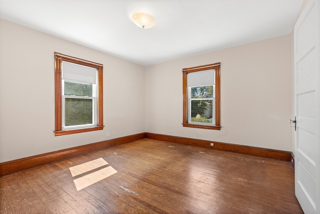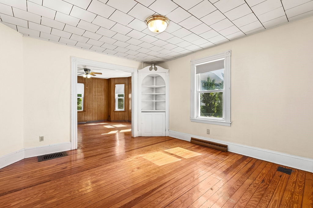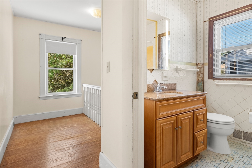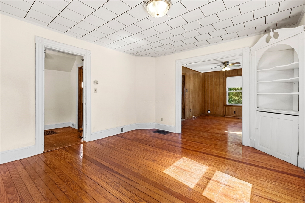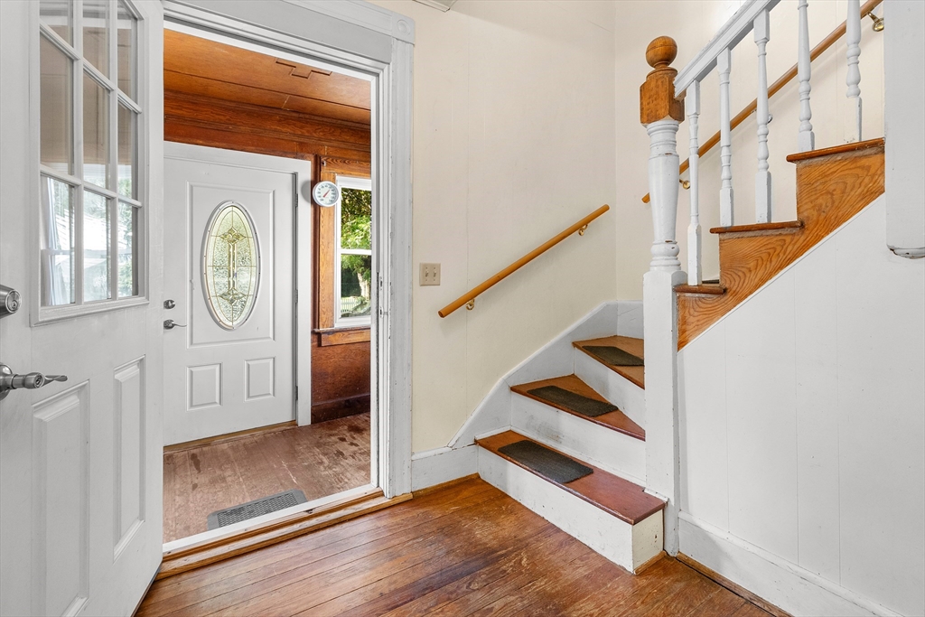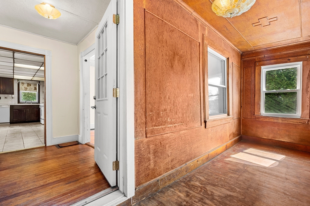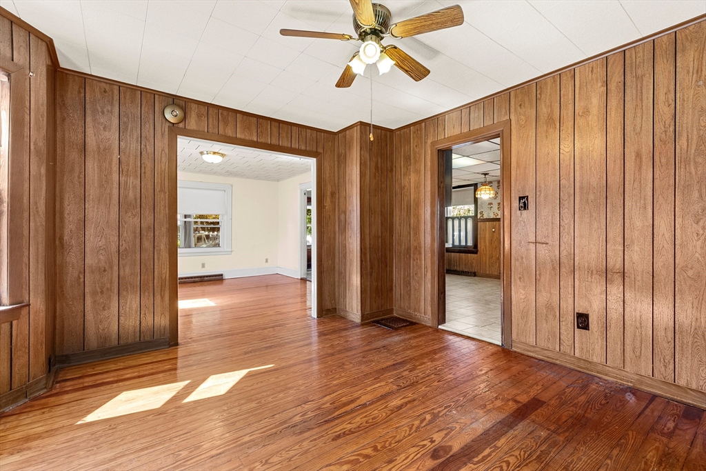 Here is your opportunity to create your dream home! Conveniently located South Peabody colonial offers vintage charm with high ceilings, hardwood floors and spacious rooms. Classic enclosed front porch leads to the welcoming foyer. The large living and dining spaces are open layout while the eat-in kitchen offers plenty of space for your renovations. Upstairs you'll find three good sized bedrooms and the full bath. Updates include replacement windows and vinyl siding. Natural gas cooking, hot water and dryer, and oil heat. The mostly fenced yard gives great potential for a patio or expanded deck. Just off Lynn St with easy accessibility to route 128/95. Bring your ideas or contractor and make it yours!!