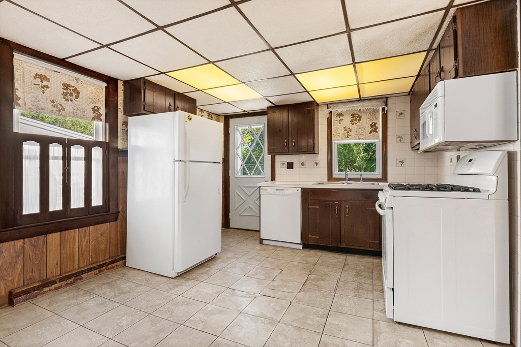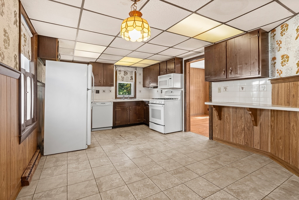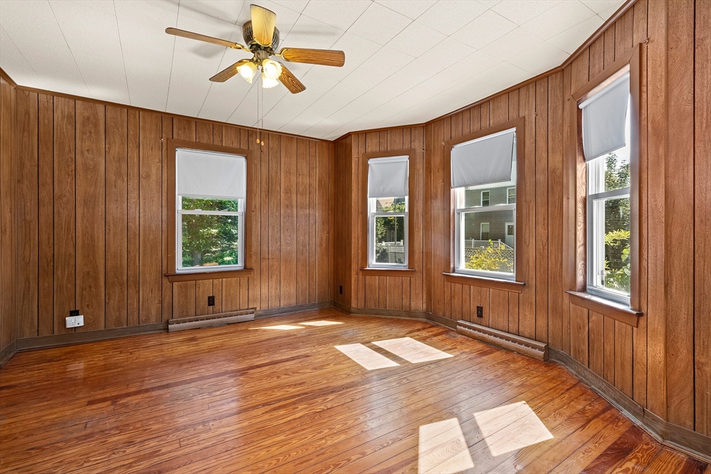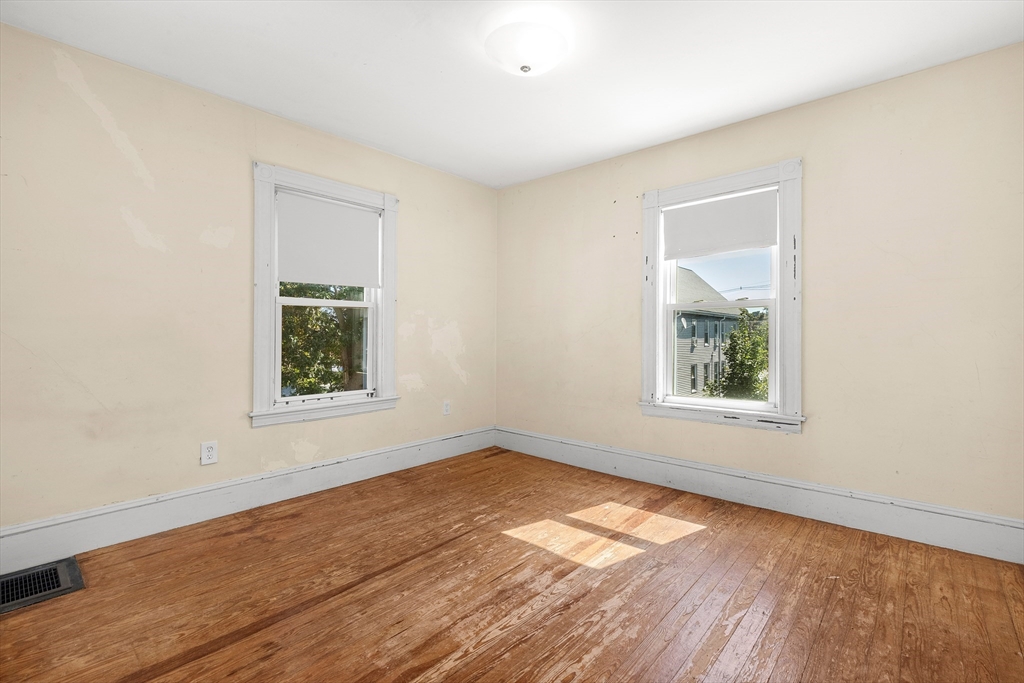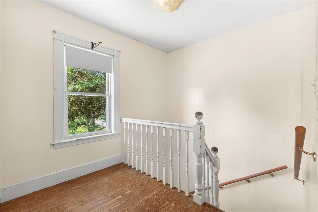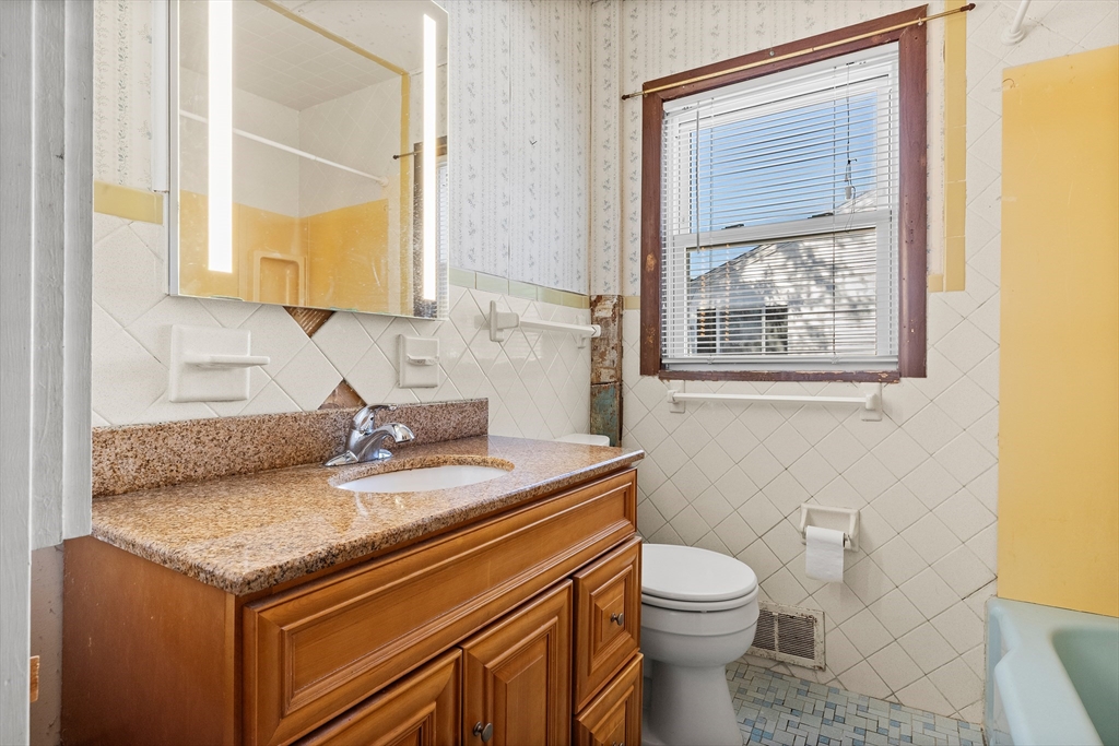 Here is your opportunity to create your dream home! Conveniently located South Peabody colonial offers vintage charm with high ceilings, hardwood floors and spacious rooms. Classic enclosed front porch leads to the welcoming foyer. The large living and dining spaces are open layout while the eat-in kitchen offers plenty of space for your renovations. Upstairs you'll find three good sized bedrooms and the full bath. Updates include replacement windows and vinyl siding. Natural gas cooking, hot water and dryer, and oil heat. The mostly fenced yard gives great potential for a patio or expanded deck. Just off Lynn St with easy accessibility to route 128/95. Bring your ideas or contractor and make it yours!!