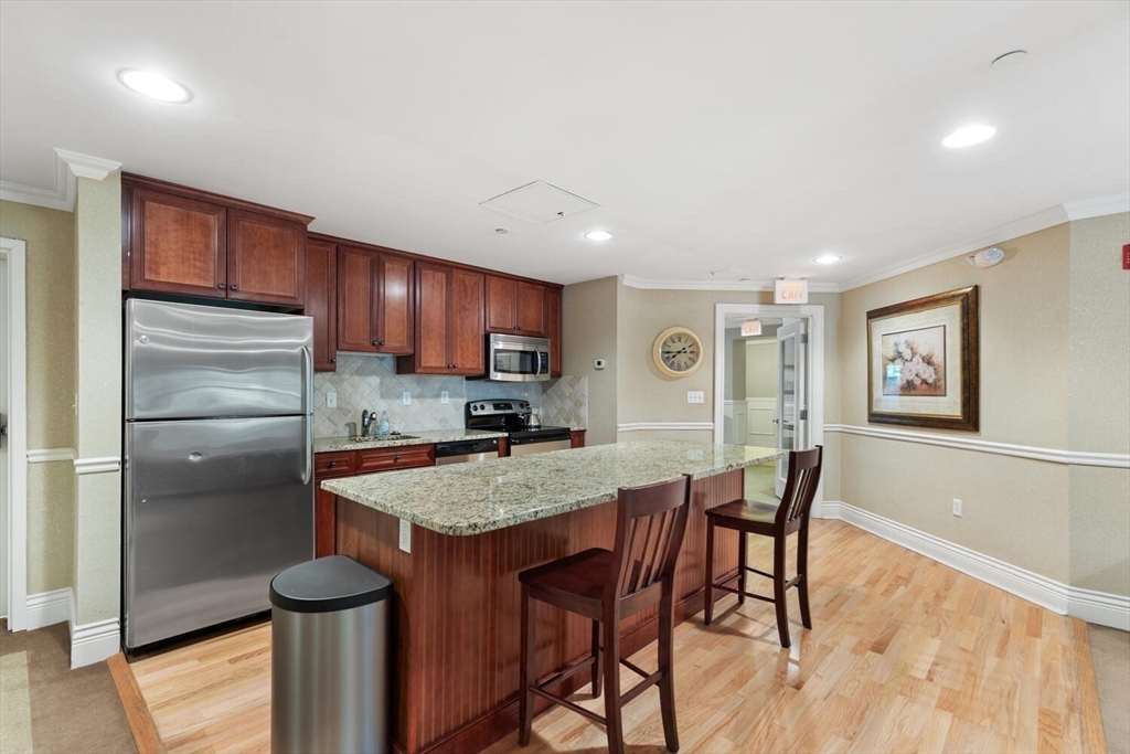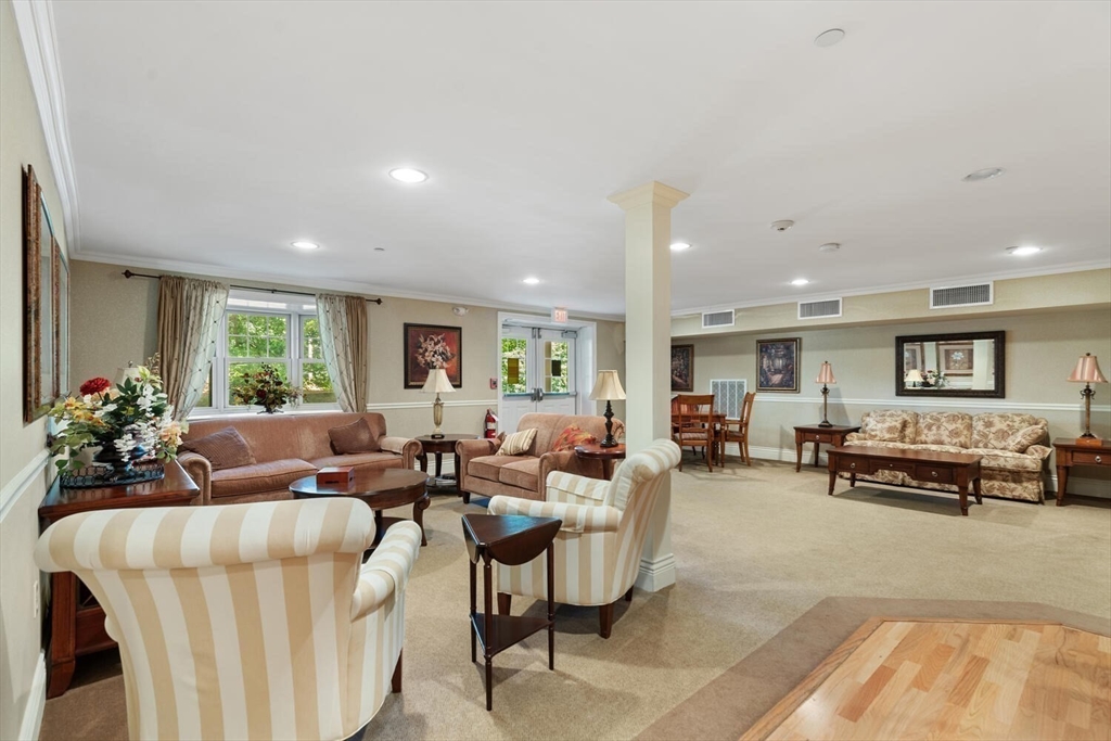 Luxury living in a premier 55+ community! This bright, 3rd floor, end unit, offers the comfort of single floor living in a secure elevator building. The oversized family & dining areas feature hardwood floors, crown molding, and access to a private covered balcony – perfect to catch fresh air without leaving home. The open-concept kitchen has a double pantry and great storage. The primary bedroom includes a walk-in closet and spacious walk-in shower. 2nd bedroom is ideal for guests or a home office. Second full bath has a tub – offering the best of both worlds with grab bars for safety. Condo features in-unit laundry. The residents of this community enjoy access to a fitness center, an elegant function room, and beautifully maintained outdoor patios. Conveniently located near shops, restaurants and medical centers including Newton-Wellesley Hospital. This condo combines comfort, security, and convenience in one of the most desirable towns. Come visit today!