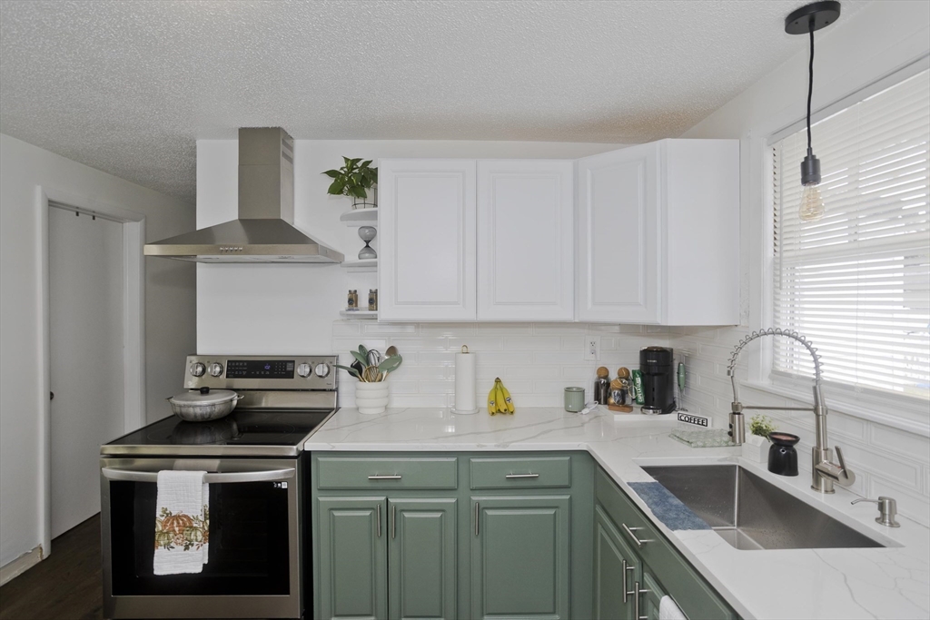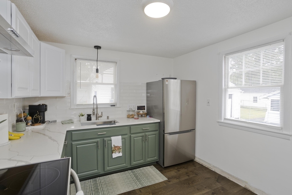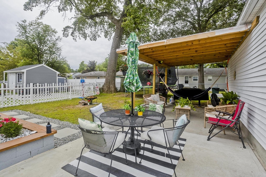 Single-family residence presents an inviting home, ready for its next chapter. The property, located in a desirable area, offers a blend of comfort and convenience. The heart of the home is undoubtedly the kitchen, featuring stone countertops that provide an elegant and durable workspace for culinary creations, while the backsplash adds a touch of sophistication and ease of maintenance, and the wall chimney range hood makes a statement. The outdoor living space, complete with a patio and fenced backyard, extends the living area beyond the walls of the home, perfect for entertaining or quiet relaxation; imagine enjoying al fresco meals in the dedicated outdoor dining area, creating lasting memories with every gathering. The basement features a bar, adding a touch of entertainment and relaxation to this inviting home. This 828 square foot residence with extra bedroom in basement with 1/2 bath ready for full bathroom.