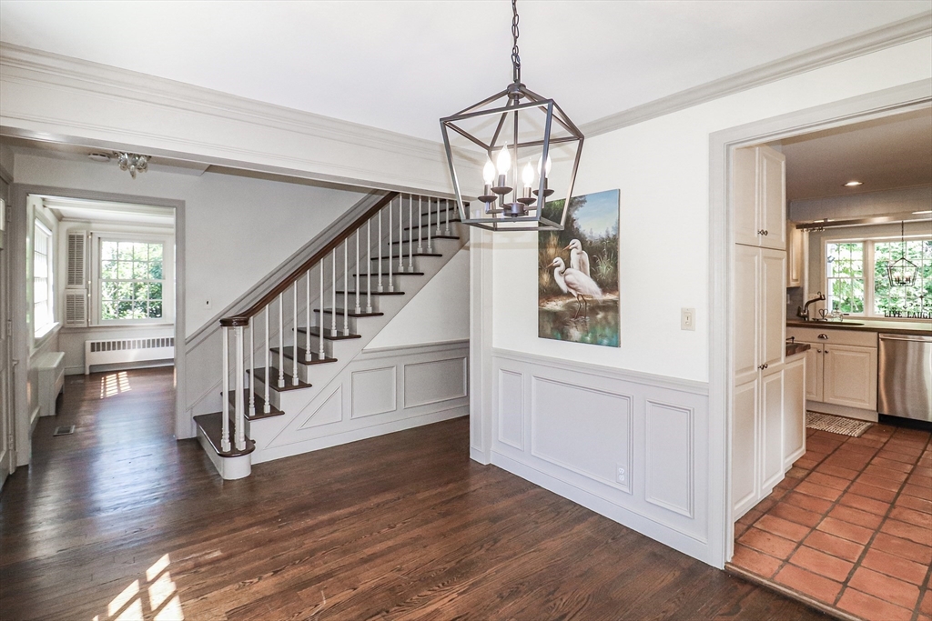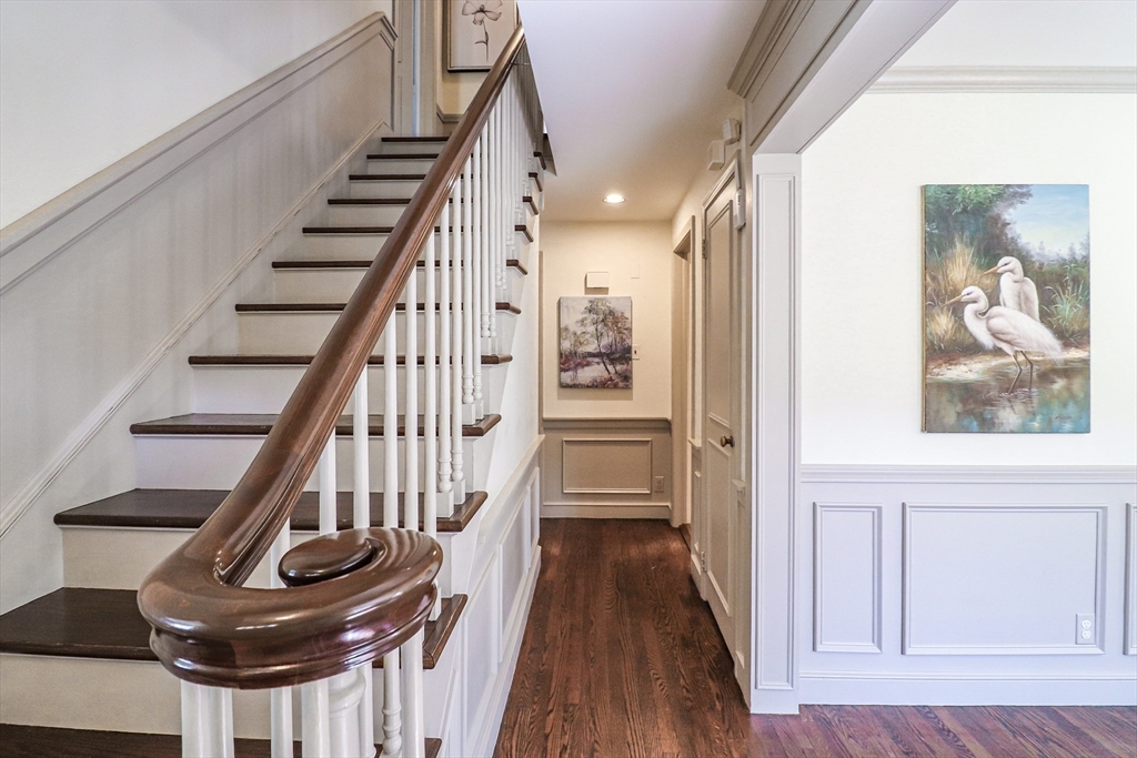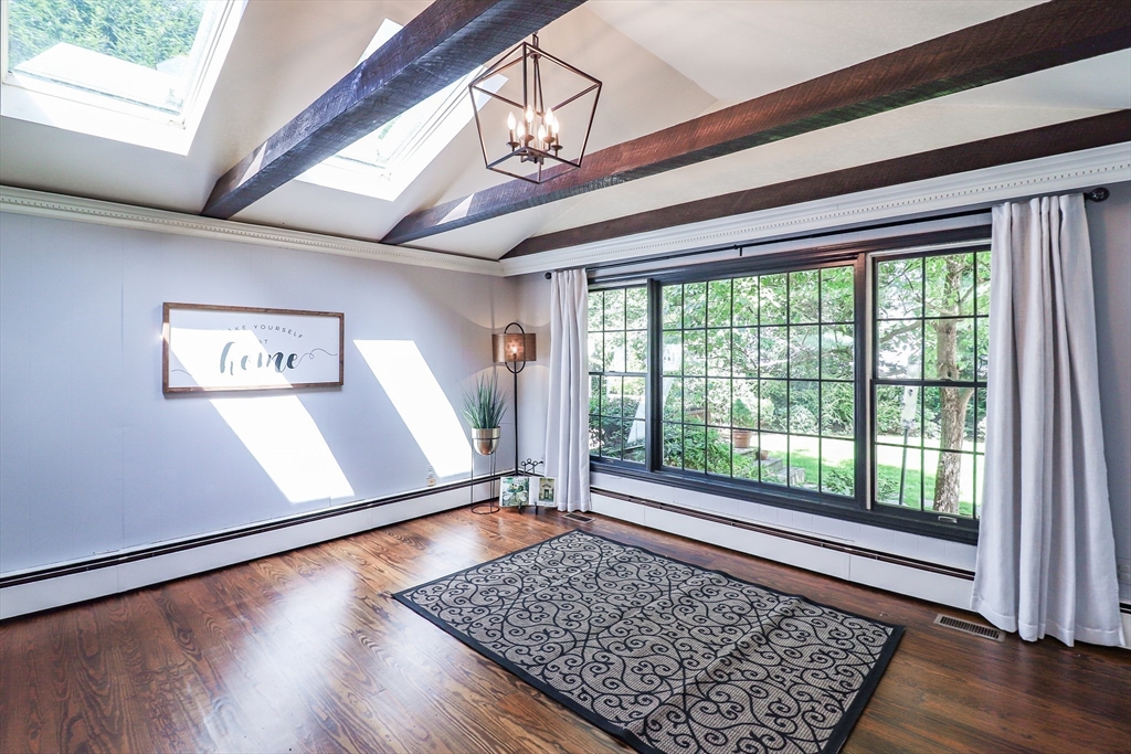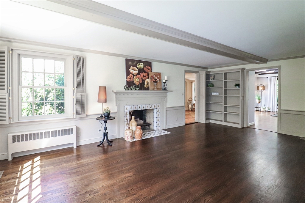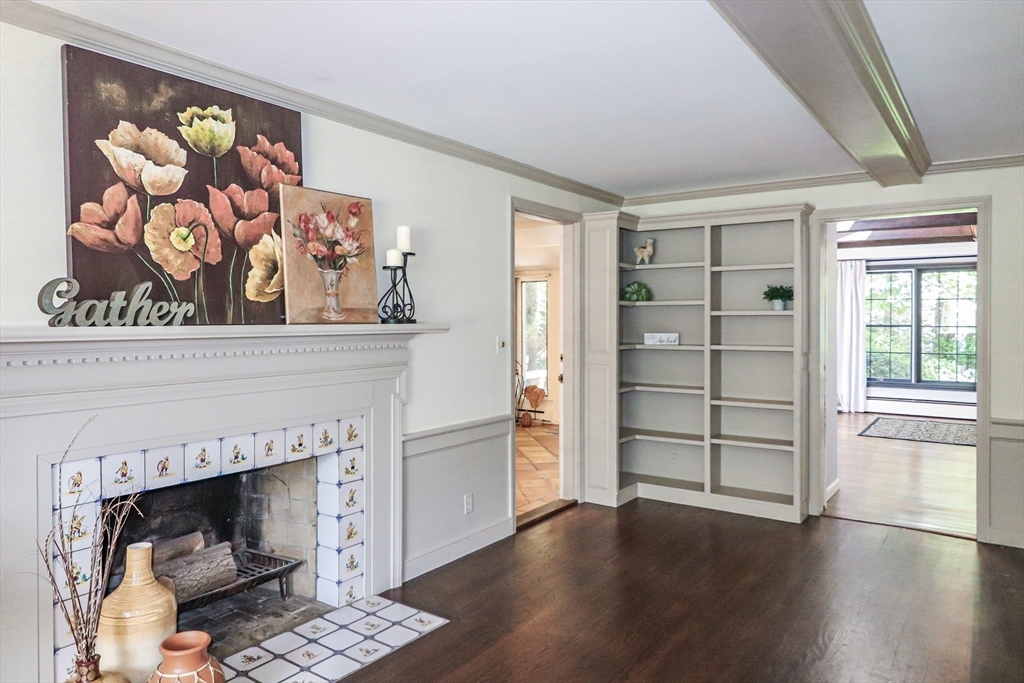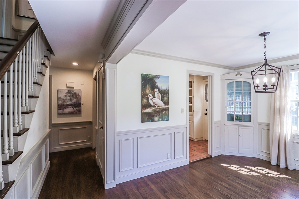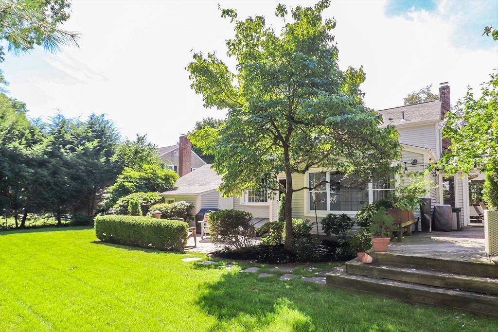 Privacy abounds w/this Center Hall Colonial blending timeless craftsmanship w/thoughtful modern updates. Throughout the home, wood floors & sun-filled rooms create a welcoming atmosphere. Kitchen features incl built in glass front cabinet, SS appl, spacious dining area & laundry closet plus mudroom access to the patio. LR showcases a beamed ceiling, built-in shelving & tiled fplc, while the vaulted FR also w/beamed ceiling, hdwds & custom cabinetry, offers hidden wet bar closet & striking picture window—truly the “Heart of the Home.” French door leads to Sunroom, deck & our office tucks privately behind double French doors. Upstairs, the primary suite boasts his/her closets, hdwd floors & sparkling bath. Two addtl bdrms, incl one w/ tandem play/sitting area that could easily serve as a fourth bdrm. Tiled full bath finish 2nd fl well. Finished play/exercise room in lower level add to amenities. Deck, patio, CAIR, updated roof & windows (appx 2013) + minutes to all amenities! Won't last