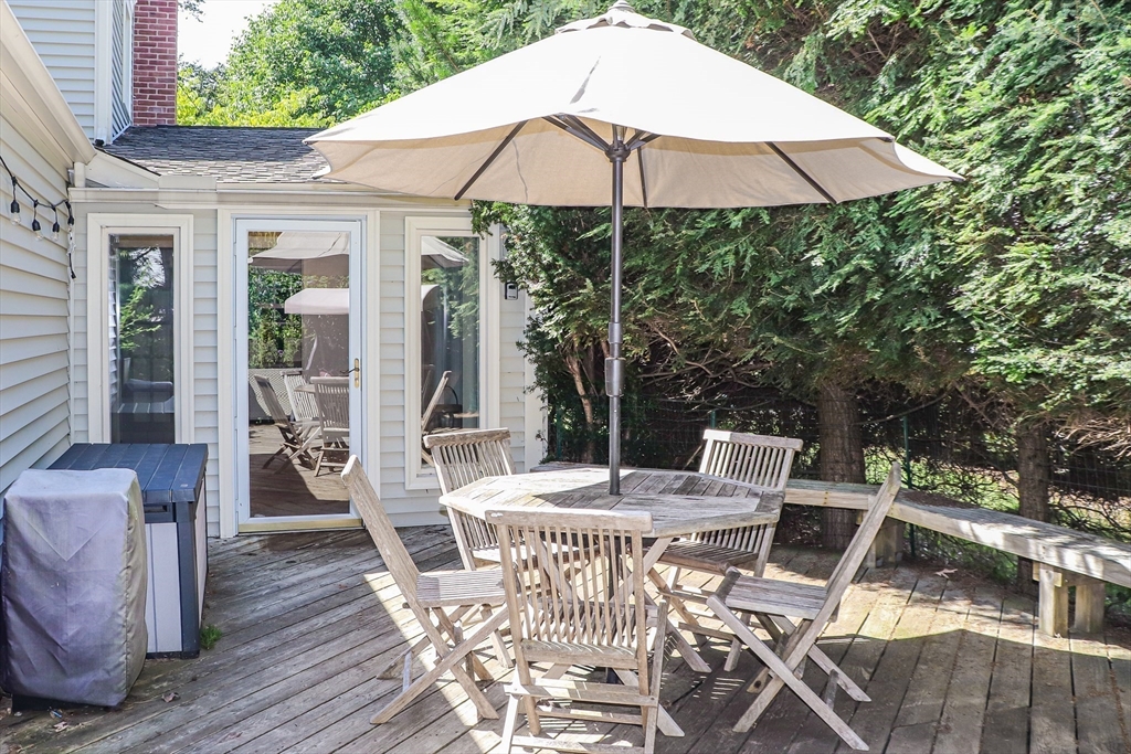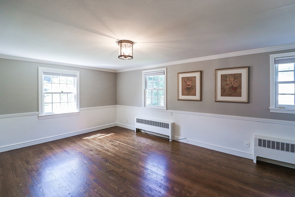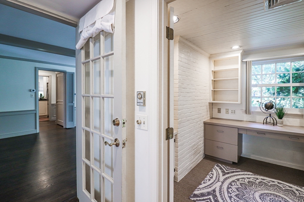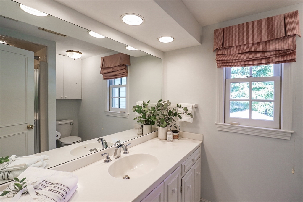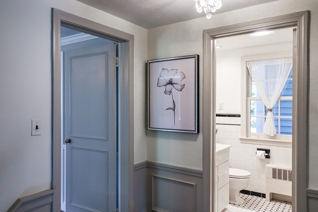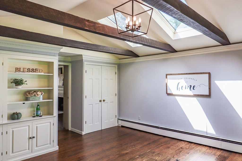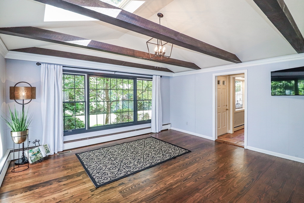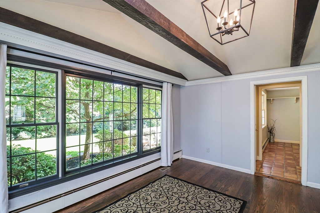 Privacy abounds w/this Center Hall Colonial blending timeless craftsmanship w/thoughtful modern updates. Throughout the home, wood floors & sun-filled rooms create a welcoming atmosphere. Kitchen features incl built in glass front cabinet, SS appl, spacious dining area & laundry closet plus mudroom access to the patio. LR showcases a beamed ceiling, built-in shelving & tiled fplc, while the vaulted FR also w/beamed ceiling, hdwds & custom cabinetry, offers hidden wet bar closet & striking picture window—truly the “Heart of the Home.” French door leads to Sunroom, deck & our office tucks privately behind double French doors. Upstairs, the primary suite boasts his/her closets, hdwd floors & sparkling bath. Two addtl bdrms, incl one w/ tandem play/sitting area that could easily serve as a fourth bdrm. Tiled full bath finish 2nd fl well. Finished play/exercise room in lower level add to amenities. Deck, patio, CAIR, updated roof & windows (appx 2013) + minutes to all amenities! Won't last