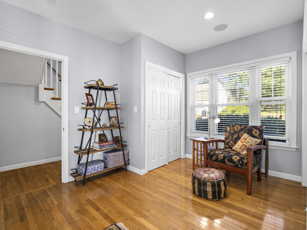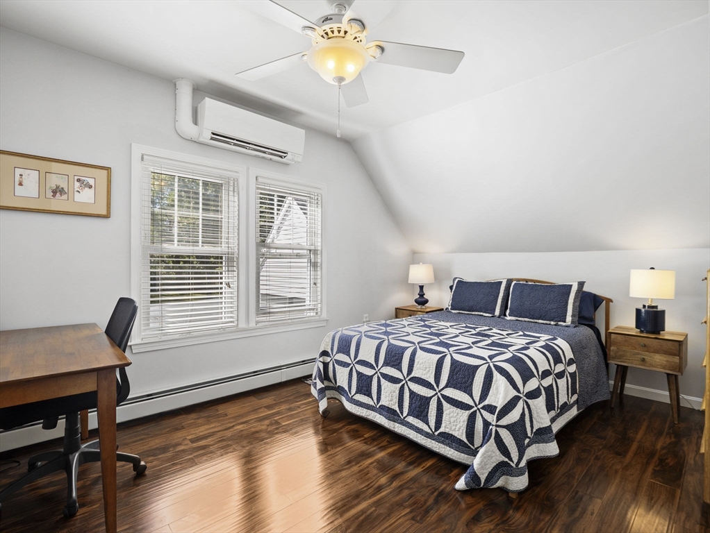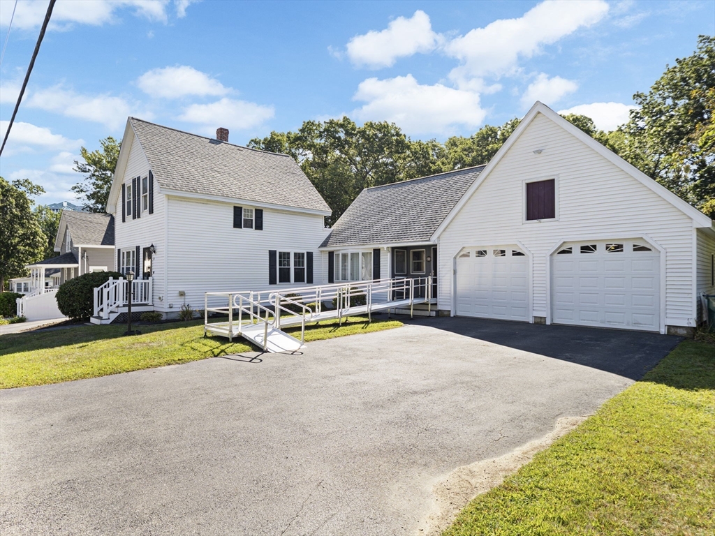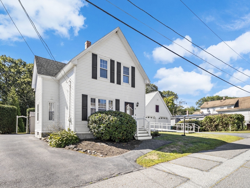 This bright three-bedroom, two-bath home welcomes you. Beyond the custom Craftsman-style stairway, all essentials for main floor living: large bedroom, laundry, bath with tub and walk-in shower, spacious kitchen. Outside the sunny living room, a new 16 x 24 Trex deck and the yard of your dreams. You can dream of entertaining because all basics are covered: New main roof 2020, kitchen roof 2023. Foundation repointed in 2022. Concrete basement floor and sump pump 2023. New HVAC system with central air in 2022.Flexible space inside and out. The primary bedroom can be upstairs or down. The loft above the garage offers storage or finishing potential. The second driveway leads to the backyard, with room for an ADU for multi-generational living. Comfortable home with modern systems and room to grow. Conveniently located near shopping, highways, and beautiful parks and recreation—including the historic Lowell Cemetery & Shedd Park—this move-in ready property combines comfort, style & potential