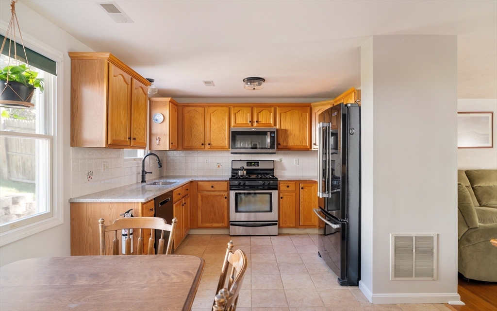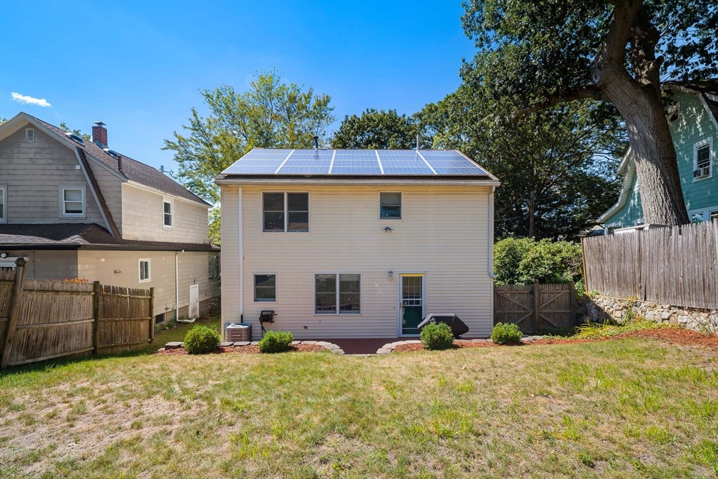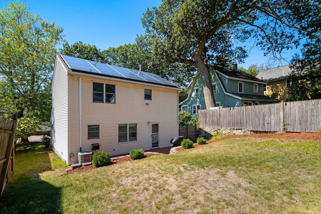 Welcome to this charming North Medford single-family home, move-in ready and ideal for first-time buyers or downsizers. Built in 1998, this lovely 2-level home offers a well-designed layout with 3 bedrooms, 1.5 baths, and an attached 1-car garage plus additional driveway parking. Enjoy central air, main-level laundry, a gas fireplace, cost-saving solar panels, and ample storage. The sun-filled eat-in kitchen features black and stainless steel appliances, granite countertops, a tile backsplash, and a pantry. A half bath with laundry completes the first floor. The generous backyard is an outdoor oasis, featuring a patio for entertaining, a lush lawn for relaxing, a garden shed, and a workshop shed. Set on a quiet street just minutes from local favorites: the swimming beach at Wright’s Pond (.5m), hiking and biking trails in the Fells (1 m), restaurants, bus lines and shops in Medford Square (1.5 m), and the orange line MBTA stop in Malden Center (1.8m).