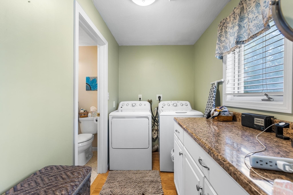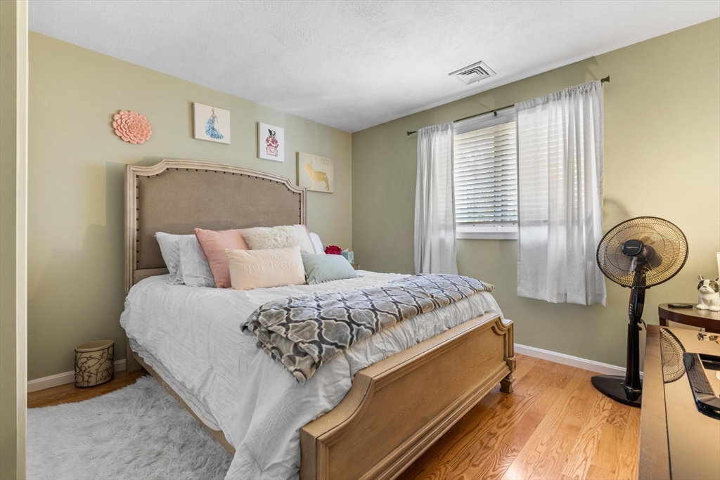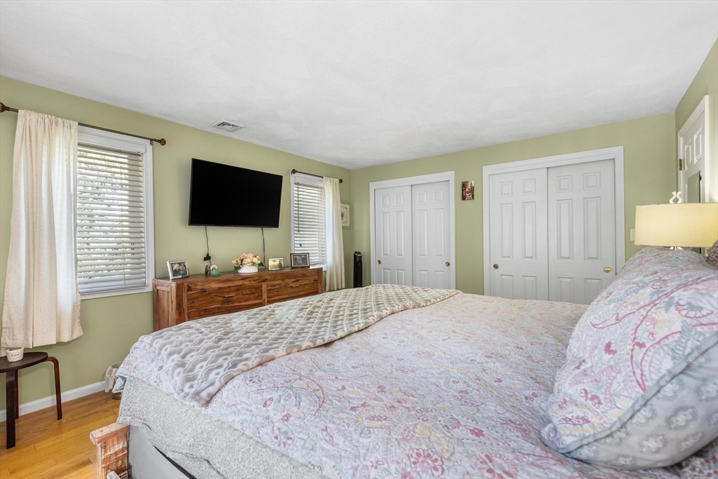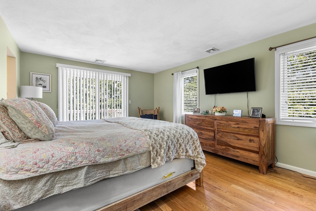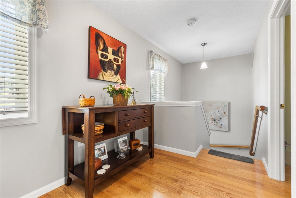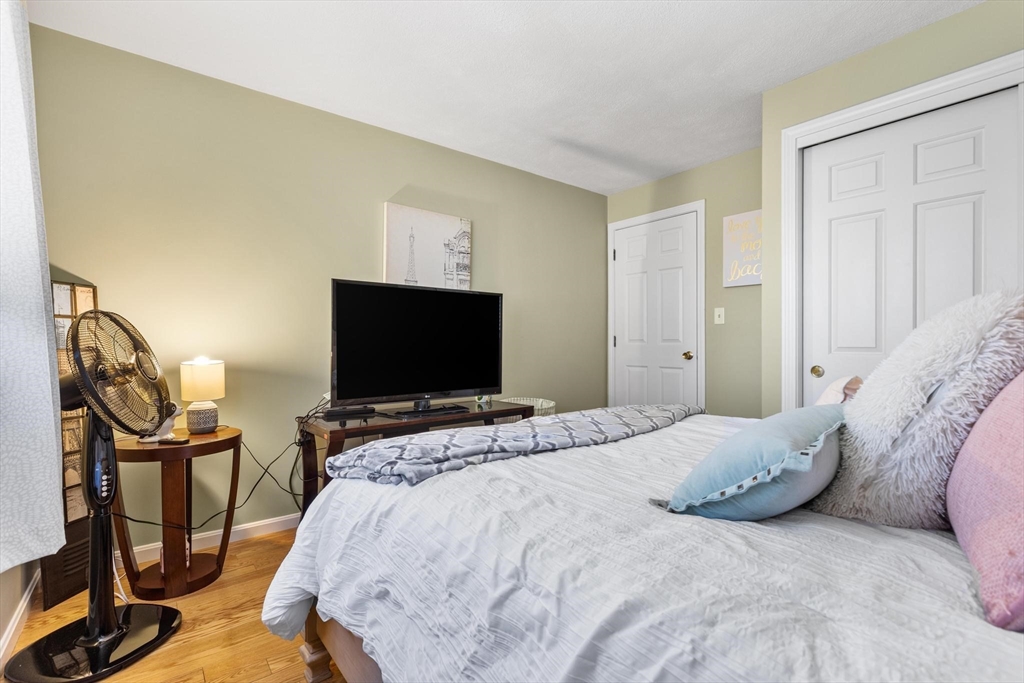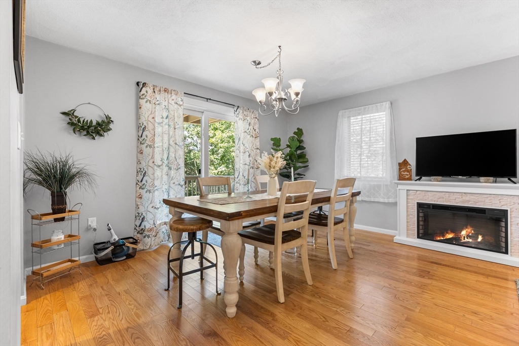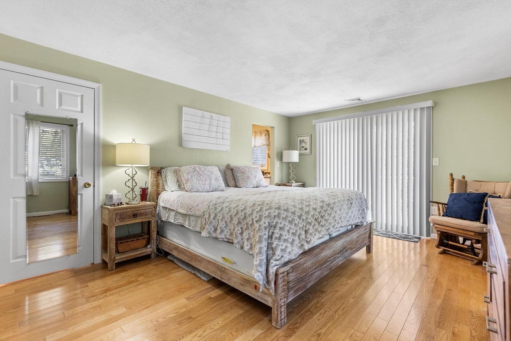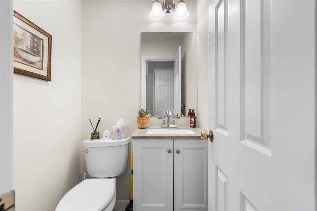 Welcome to this beautiful townhouse! Enjoy maintenance free living in this well-kept townhouse with three finished levels. The main floor features an open-concept living/dining room with sliders leading to a deck that overlooks the landscaped grounds. The updated kitchen offers granite countertops, stainless steel appliances, a cozy breakfast nook, pantry, and a half bath. Upstairs you'll find the primary bedroom with double closets and access to its own private deck. A full tiled bath (accessible from both the bedroom and the hallway), a laundry room and a second bedroom with attic access complete this level. The spacious finished basement works perfectly as a playroom, gym, or extra living space with added storage and walk-out access to a private covered patio. Community amenities include central A/C, in-ground pool, tennis courts, a clubhouse, and two assigned parking spots. Conveniently located near major highways with easy access to Boston.