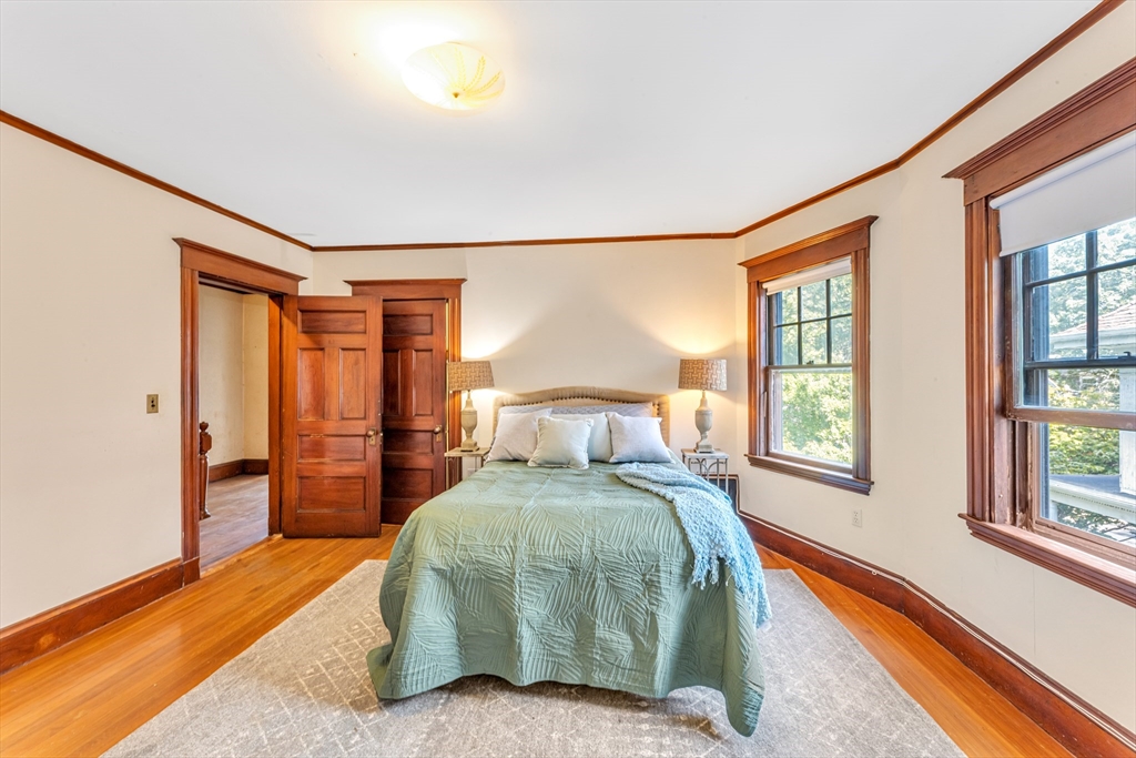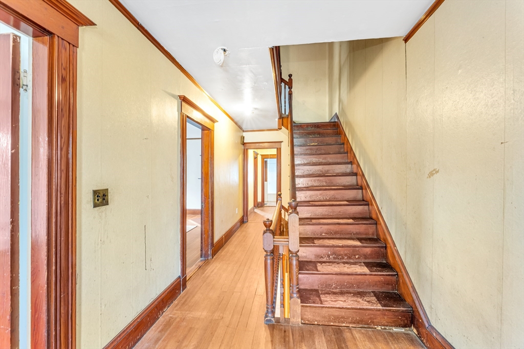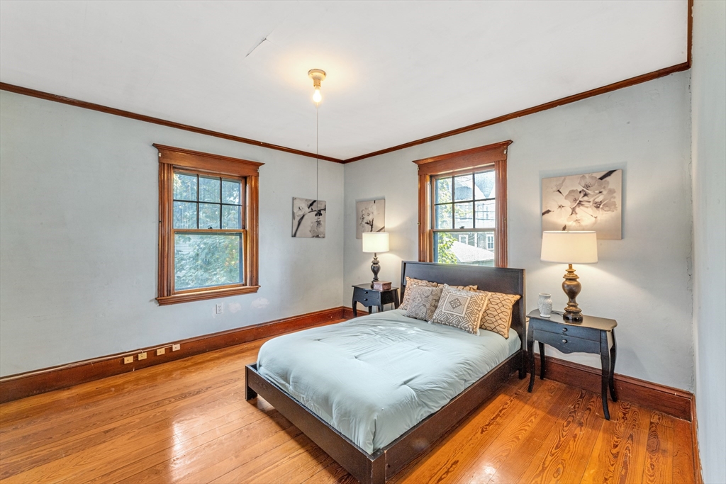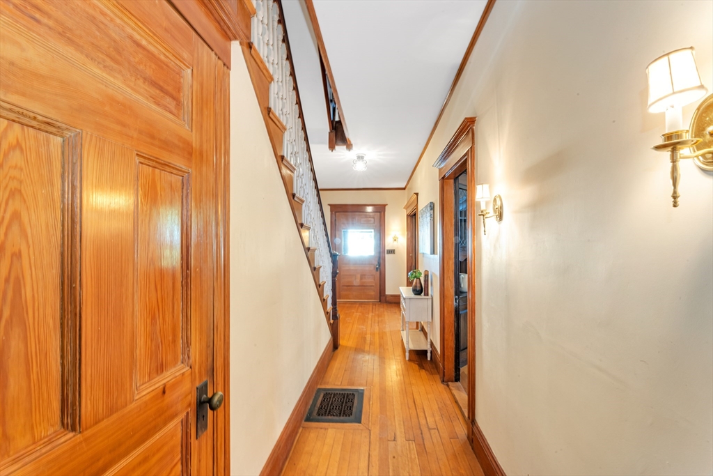 LOCATION! LOCATION! LOCATION! Nestled at 48 Hastings Street in a highly desirable West Roxbury neighborhood, this rarely available attached single-family blends charm, character, and space across three levels. A welcoming front porch sets the tone, while inside you’ll find 6 bedrooms, high ceilings, oversized windows, and pocket doors. The foyer opens to a large living room, formal dining room with fireplace, and an eat-in kitchen with pantry, half bath, mudroom, and back staircase. The second floor features 3 bedrooms—including a primary with fireplace—full bath, ample closets, and a sunlit foyer overlooking the tree-lined street. The third floor offers 3 additional rooms with a flexible layout ideal for a home office or gym. Additional highlights include a two-car driveway, updated roof, gutters, and exterior paint (2023). Just minutes to Centre Street’s shops, dining, commuter rail, and public transit. Make this your dream home!