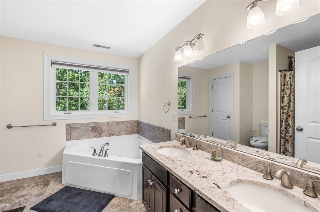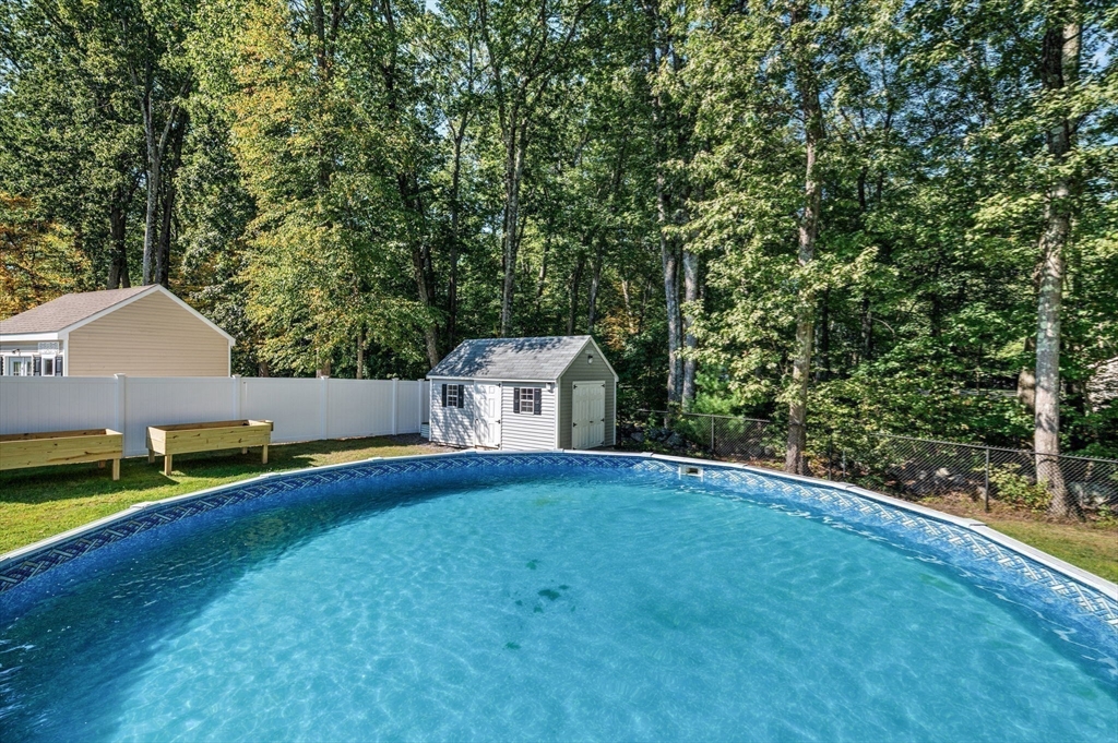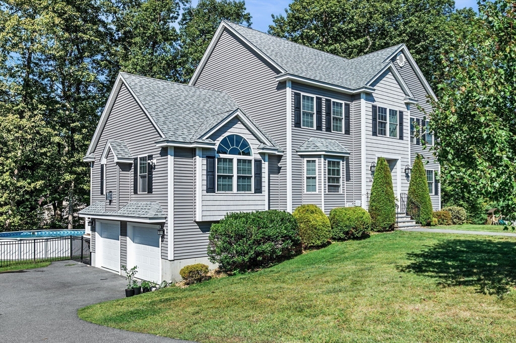 Your dream home awaits in Dracut’s sought-after Great Woods Estates. Built in 2016, this spacious home blends comfort and modern style. The kitchen boasts granite counters, a center island with breakfast bar, and sliders to the deck. A separate dining room and stunning cathedral-ceiling family room with fireplace create the perfect setting for gatherings. Upstairs offers four bedrooms, including a primary suite with walk-in closet and ensuite bath. The finished lower level provides a 2-car garage and bonus space for an office or playroom, with rough plumbing, framing, and plans ready for an additional bath. Outdoors, enjoy your private fenced yard with a two-tier deck, above-ground pool, storage shed, and plenty of room to play or entertain.