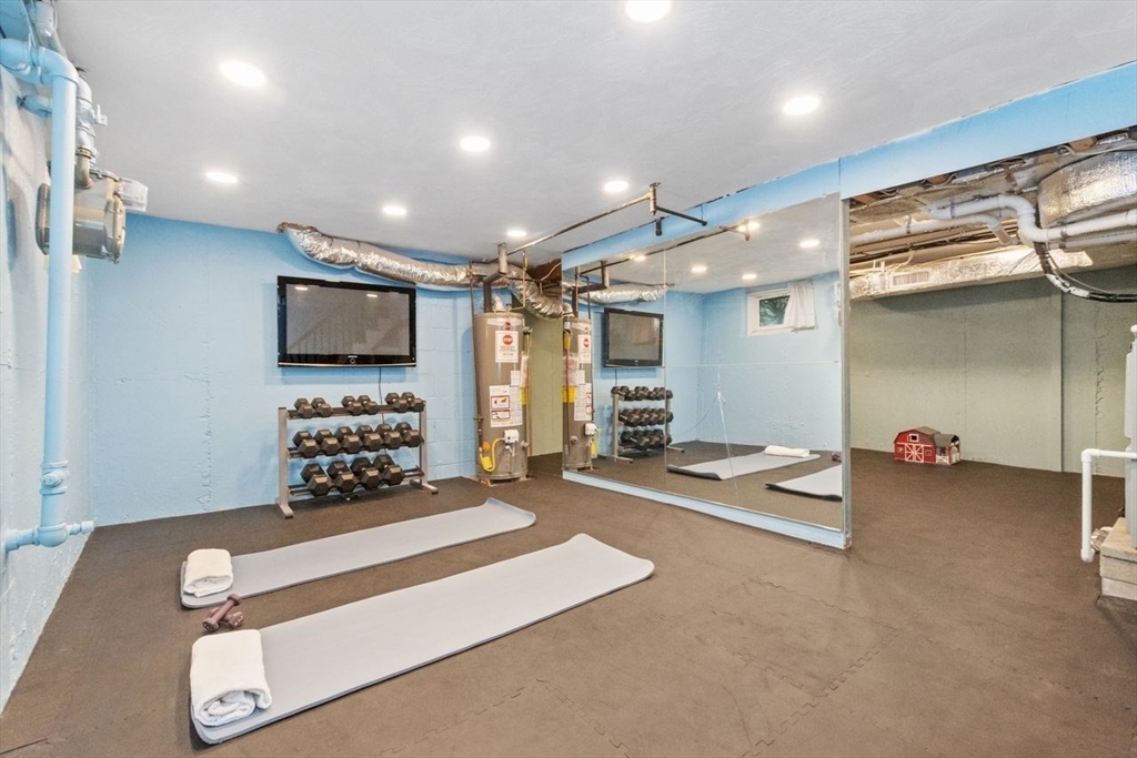 Picture-perfect Cape in Waltham’s desirable Warrendale neighborhood! This charming home offers hardwood floors throughout the first floor, a spacious front-to-back living room, elegant dining room with fireplace, and a bright office space. The kitchen is perfect for cooking enthusiasts, featuring a gas stove and easy access to a cozy side porch and outdoor deck—ideal for entertaining. A beautifully renovated full bath completes the first floor. Upstairs, you’ll find two generously sized bedrooms and a full bath via the front staircase, plus a third bedroom accessed off the living room. The lower level includes a versatile bonus room currently used as a gym, a playroom, laundry, an additional office/flex room, and a convenient half bath. Central air ensures year-round comfort. Set on a lovely corner lot, this home offers curb appeal, functionality, and a fabulous location near dining, shopping and other amenities.