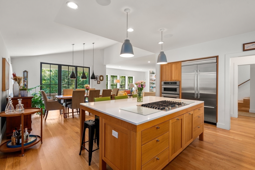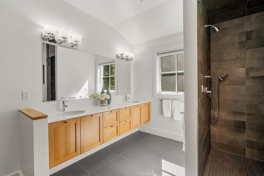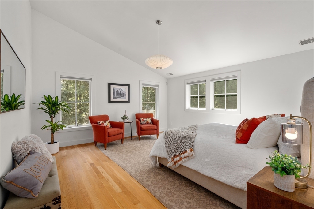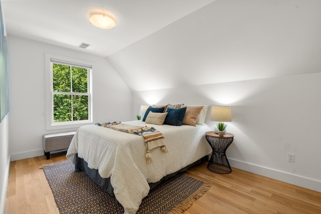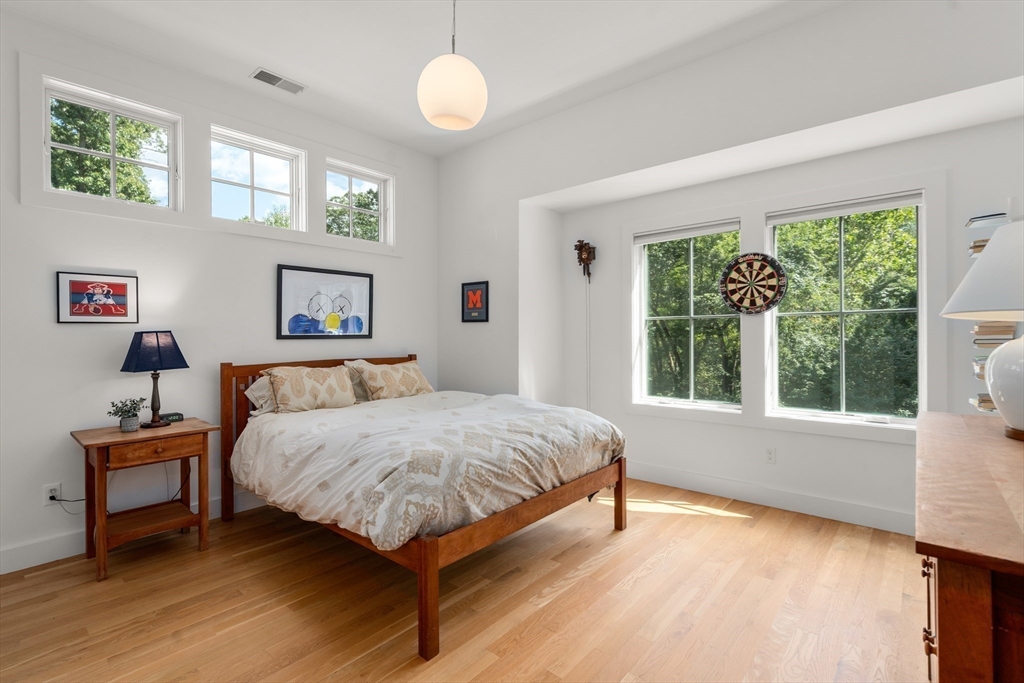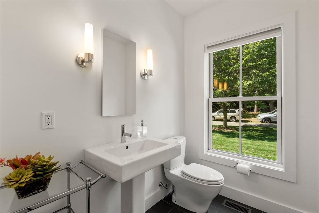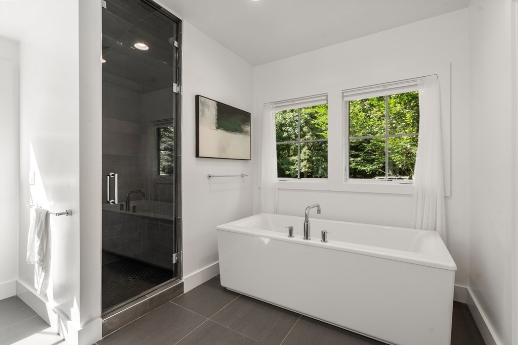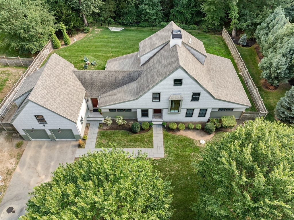 Stunning 2014 shingle-style contemporary filled with light, thoughtful design, and quality amenities. With more than 4,500 sq. ft. of living space, the open-concept first floor features a chef’s kitchen with Jenn-Air appliances, quartz countertops, a generous island with gas range, and pantry. The dining room opens to a sleek IPE deck, while the living room with fireplace offers a warm gathering space. There is a home study/office, first floor laundry, a half bath, and a luxurious first-floor suite with dual walk-ins, steam shower, and soaking tub that completes the first level. Upstairs are three spacious bedrooms with a shared double-sink bath. A private suite above the garage with walk-in and full bath offers flexible use—au pair, in-law, or guest retreat. Quality shines through with Marvin Integrity windows, Rinnai hot water, three HVAC systems (five zones), white oak floors and Emtek hardware. Very close to Milton Academy, this home blends modern convenience with timeless style.