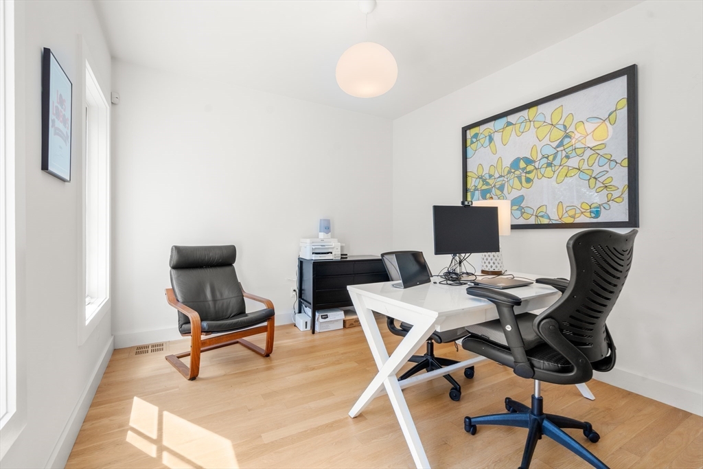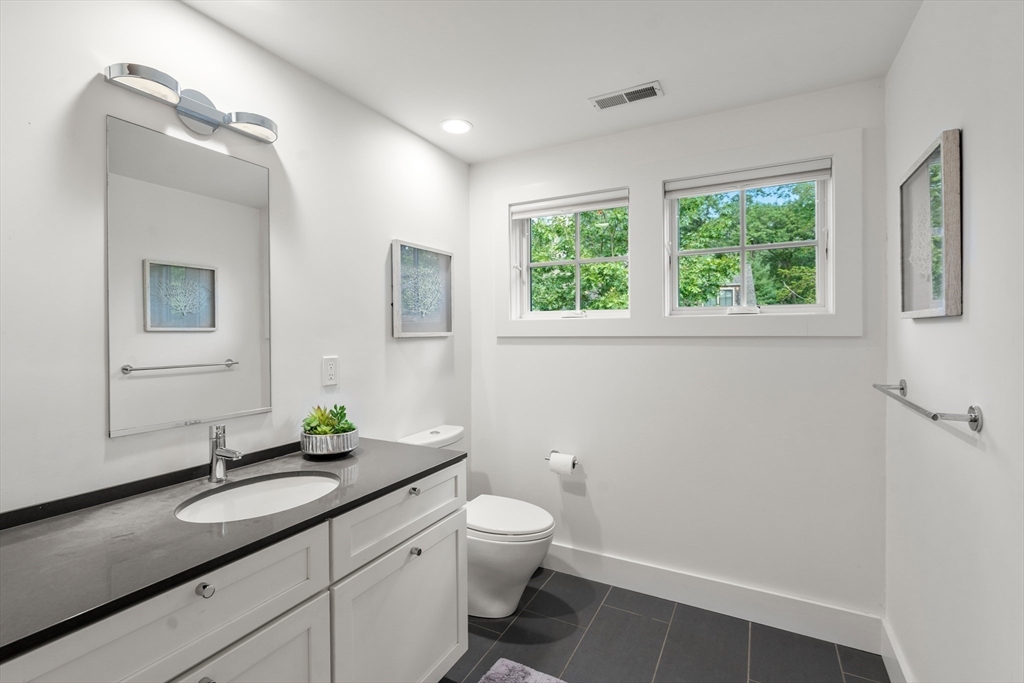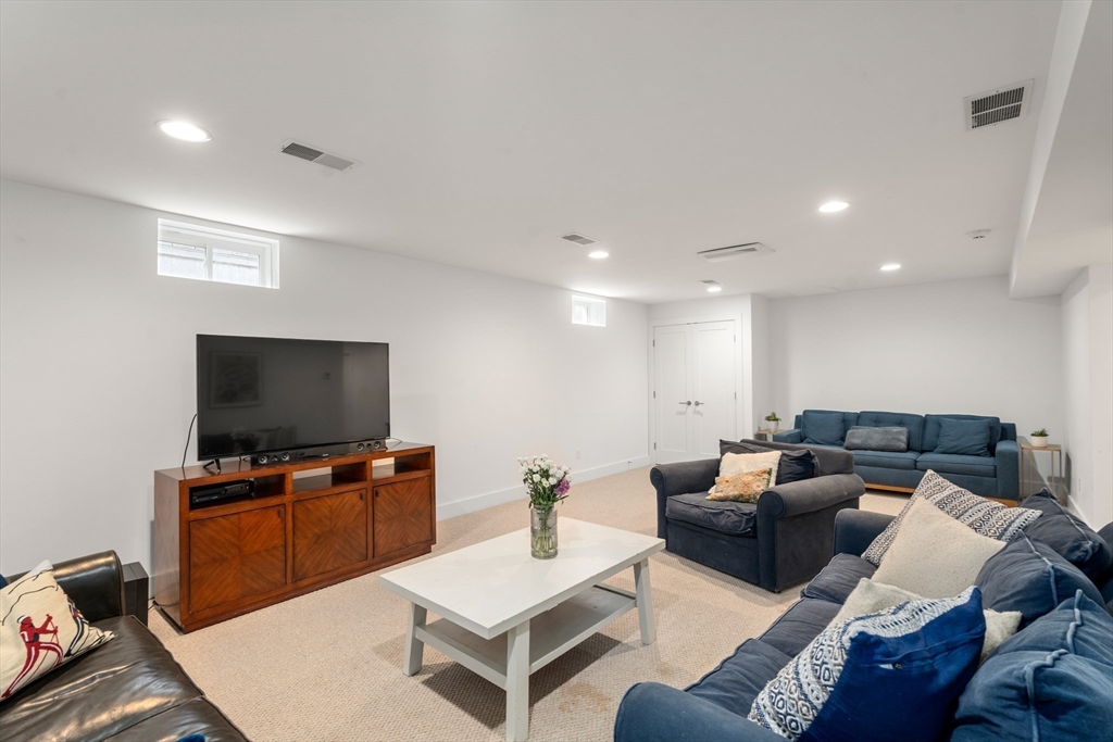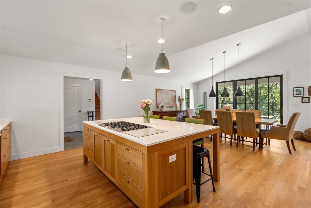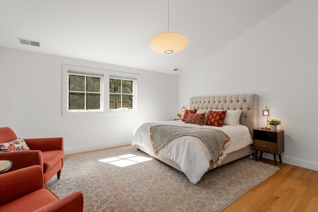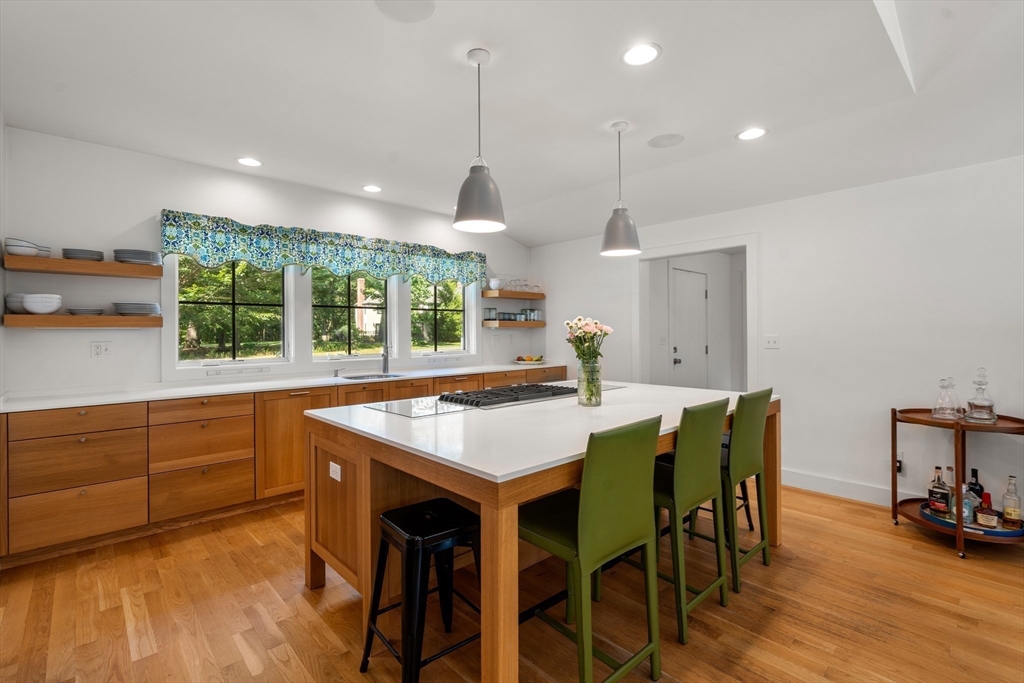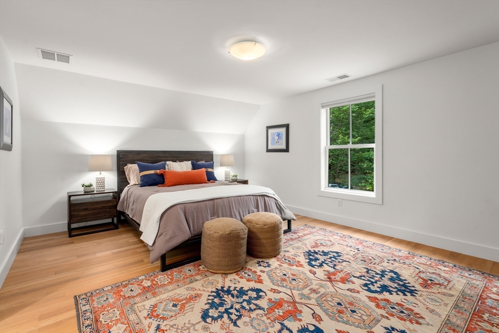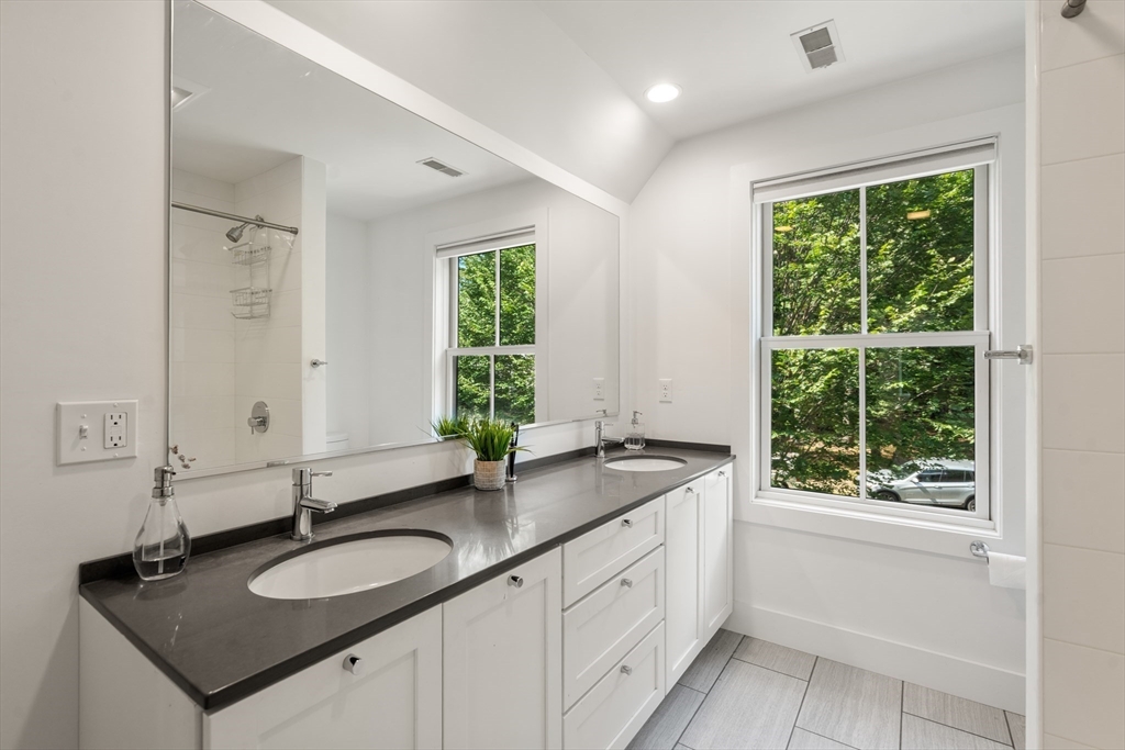 Stunning 2014 shingle-style contemporary filled with light, thoughtful design, and quality amenities. With more than 4,500 sq. ft. of living space, the open-concept first floor features a chef’s kitchen with Jenn-Air appliances, quartz countertops, a generous island with gas range, and pantry. The dining room opens to a sleek IPE deck, while the living room with fireplace offers a warm gathering space. There is a home study/office, first floor laundry, a half bath, and a luxurious first-floor suite with dual walk-ins, steam shower, and soaking tub that completes the first level. Upstairs are three spacious bedrooms with a shared double-sink bath. A private suite above the garage with walk-in and full bath offers flexible use—au pair, in-law, or guest retreat. Quality shines through with Marvin Integrity windows, Rinnai hot water, three HVAC systems (five zones), white oak floors and Emtek hardware. Very close to Milton Academy, this home blends modern convenience with timeless style.